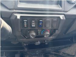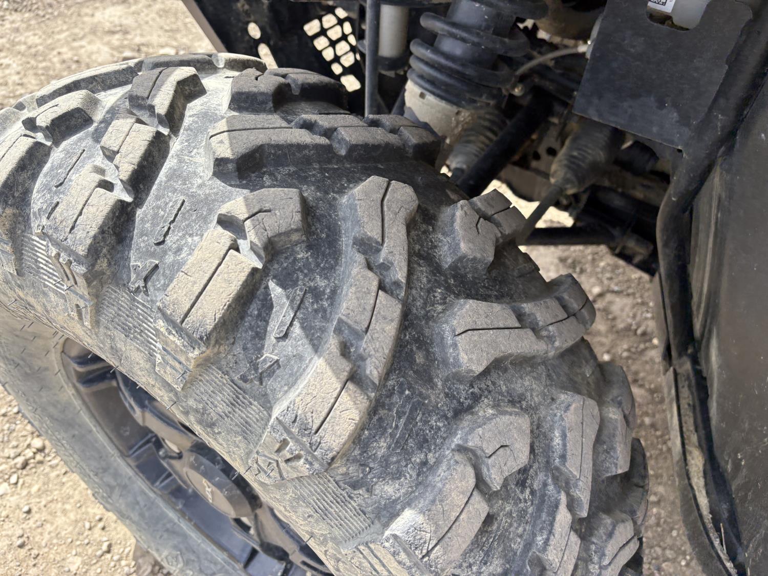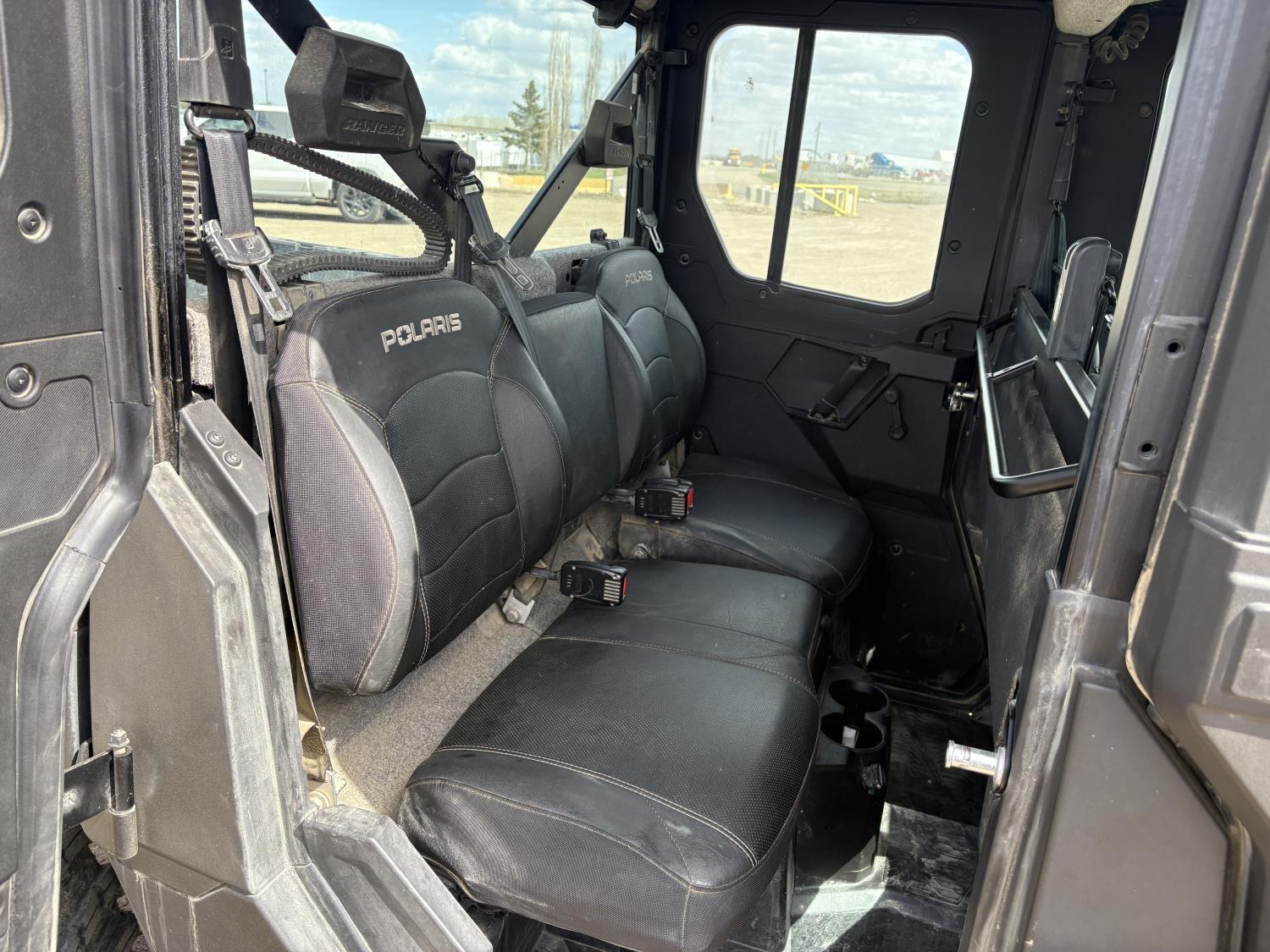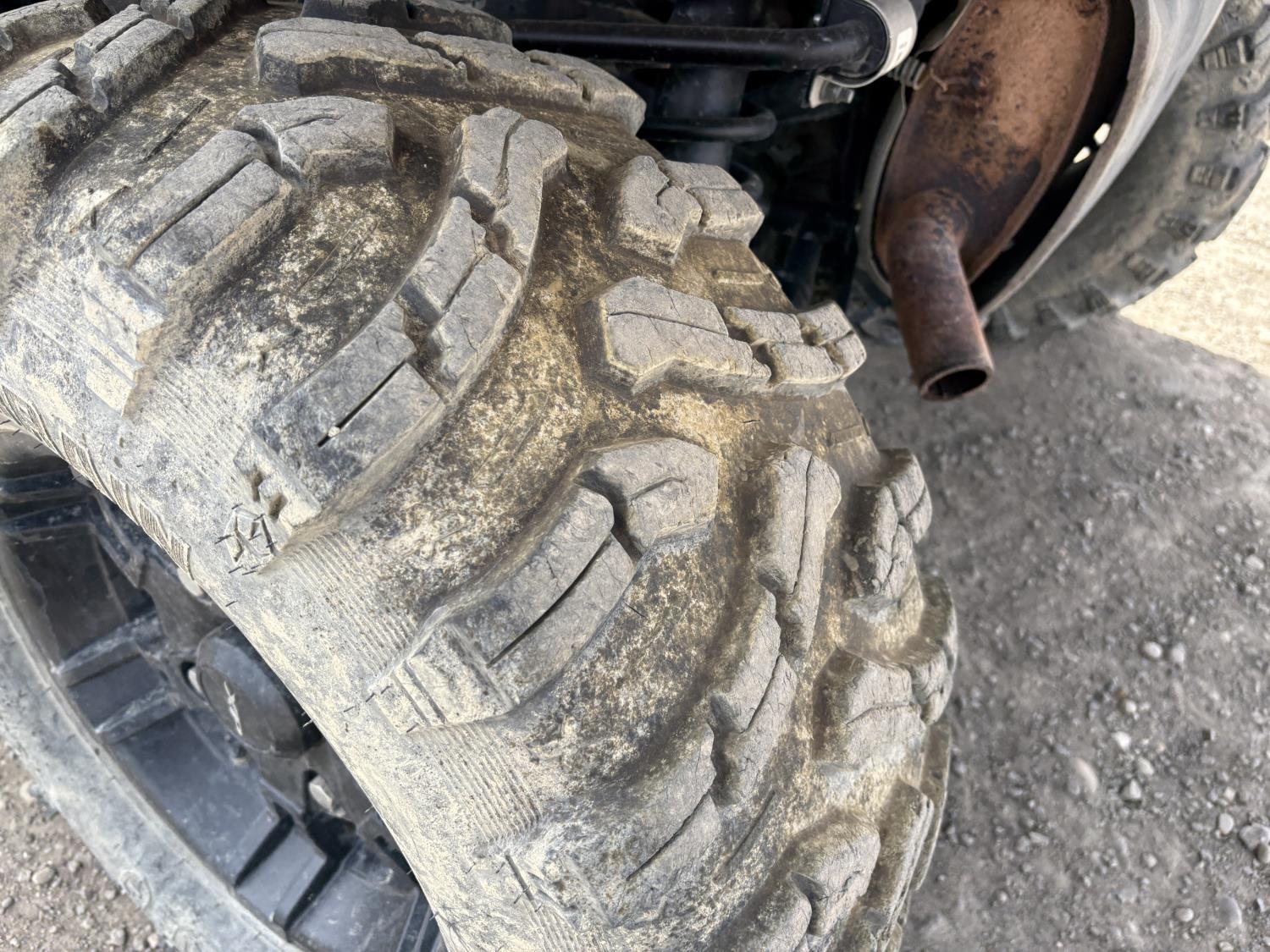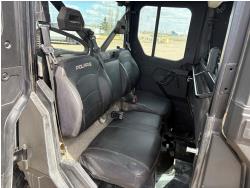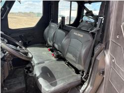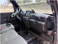 1000 cc fuel injected water cooled engine, CVT transmission, Hi/Lo range, reverse, 4 door enclosed cab, 6 passengers, A/C, heater, windshield, P/W, power steering, front winch, front brush guard, manual dump box, receiver hitch, independent suspension, aluminum wheels, 29X9R14 front tires, 29X11R14 rear tires