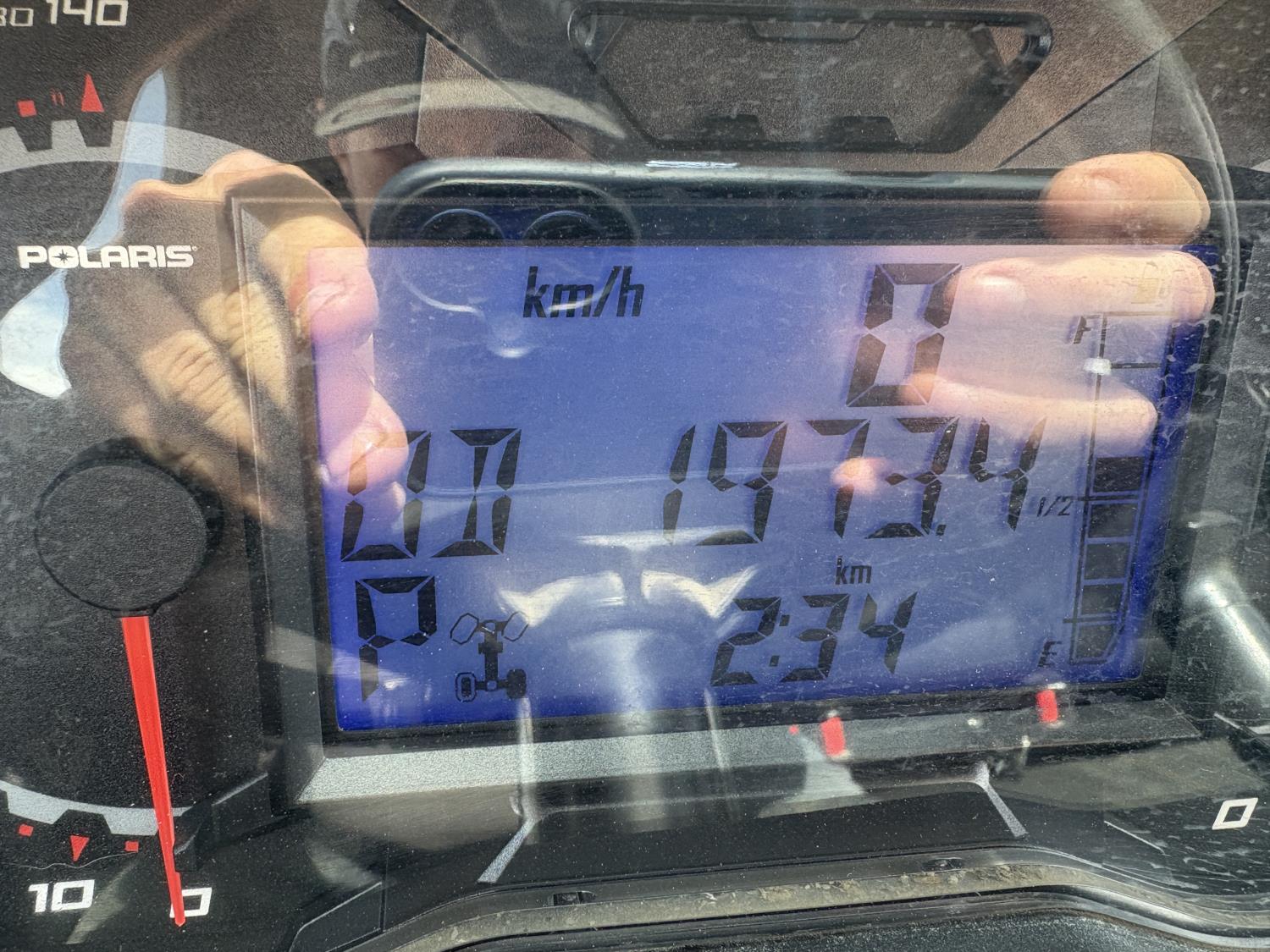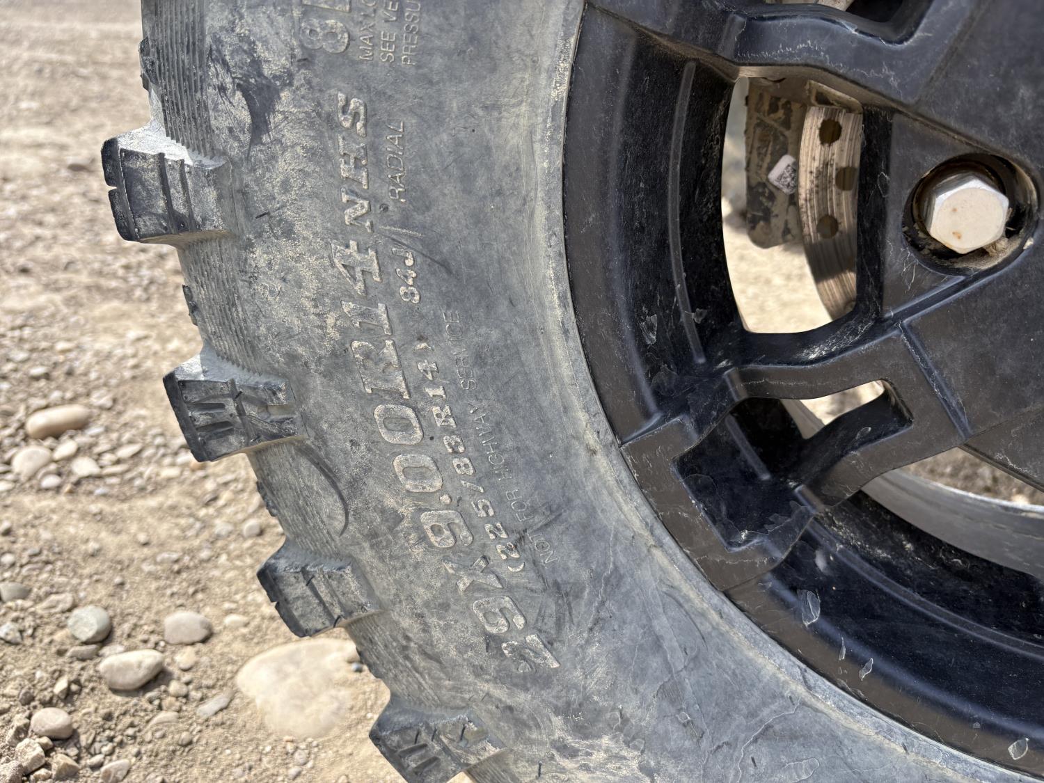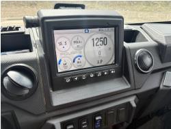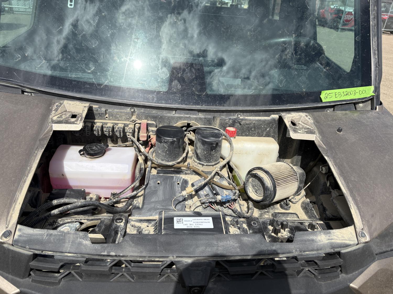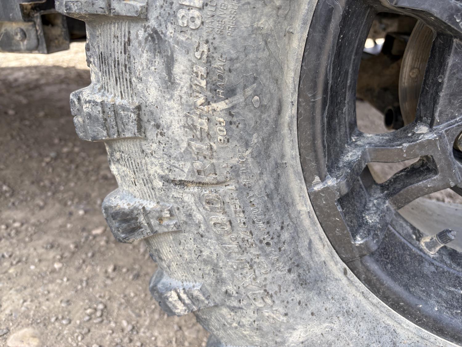 1000 cc fuel injected water cooled engine, CVT transmission, Hi/Lo range, reverse, 4 door enclosed cab, 6 passengers, A/C, heater, windshield, P/W, power steering, front winch, front brush guard, manual dump box, receiver hitch, independent suspension, aluminum wheels, 29X9R14 front tires, 29X11R14 rear tires