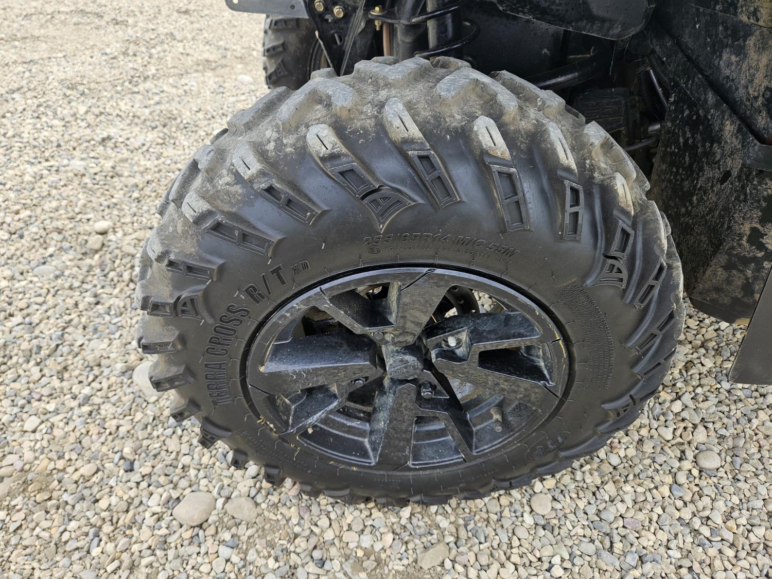 850 cc fuel injected water cooled engine, automatic transmission, Hi/Lo range, reverse, receiver hitch, front and rear racks, front winch, 255/65R14 tires