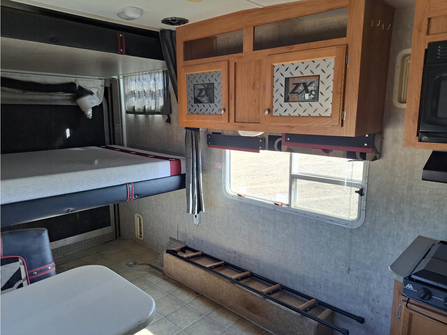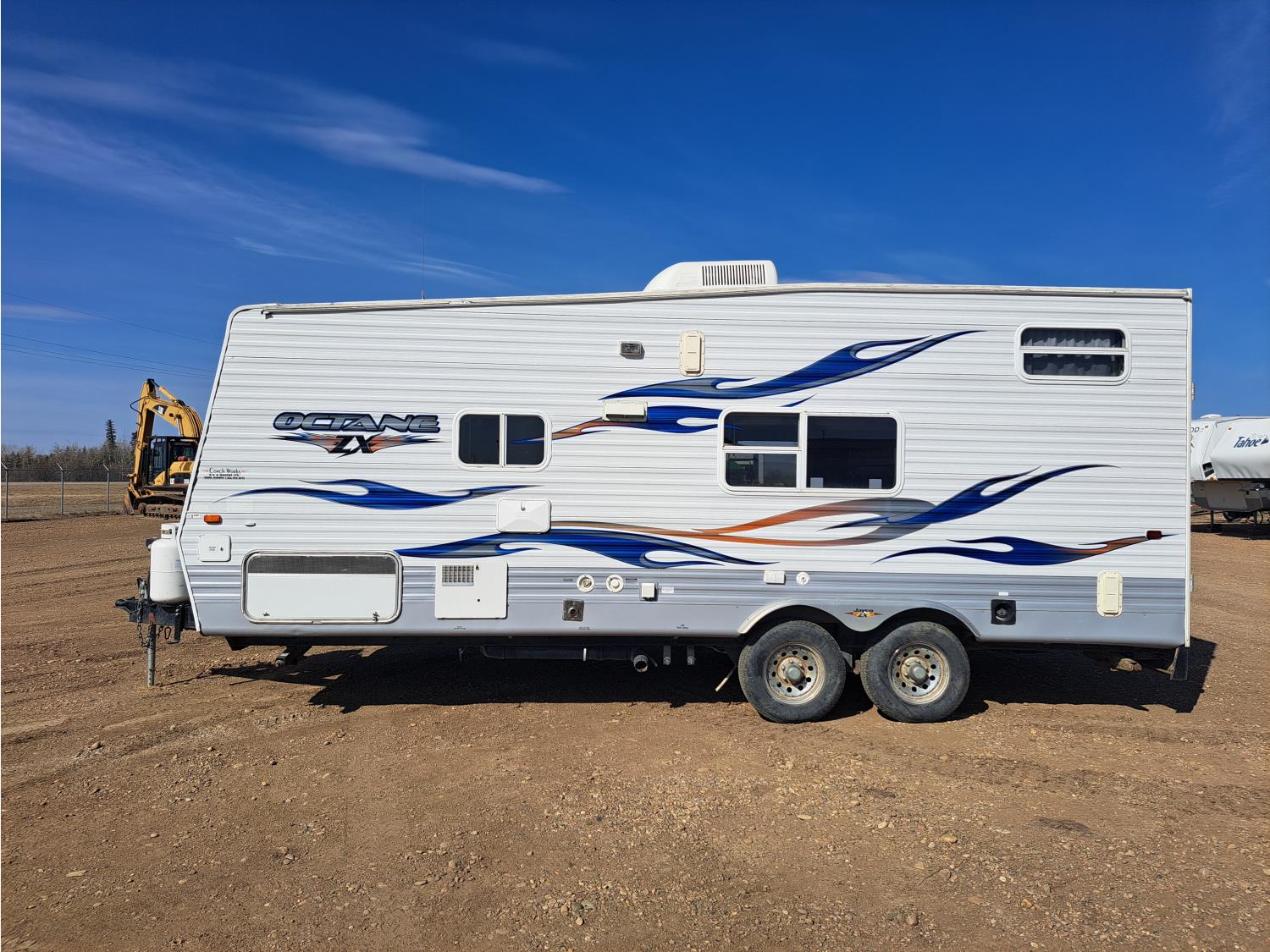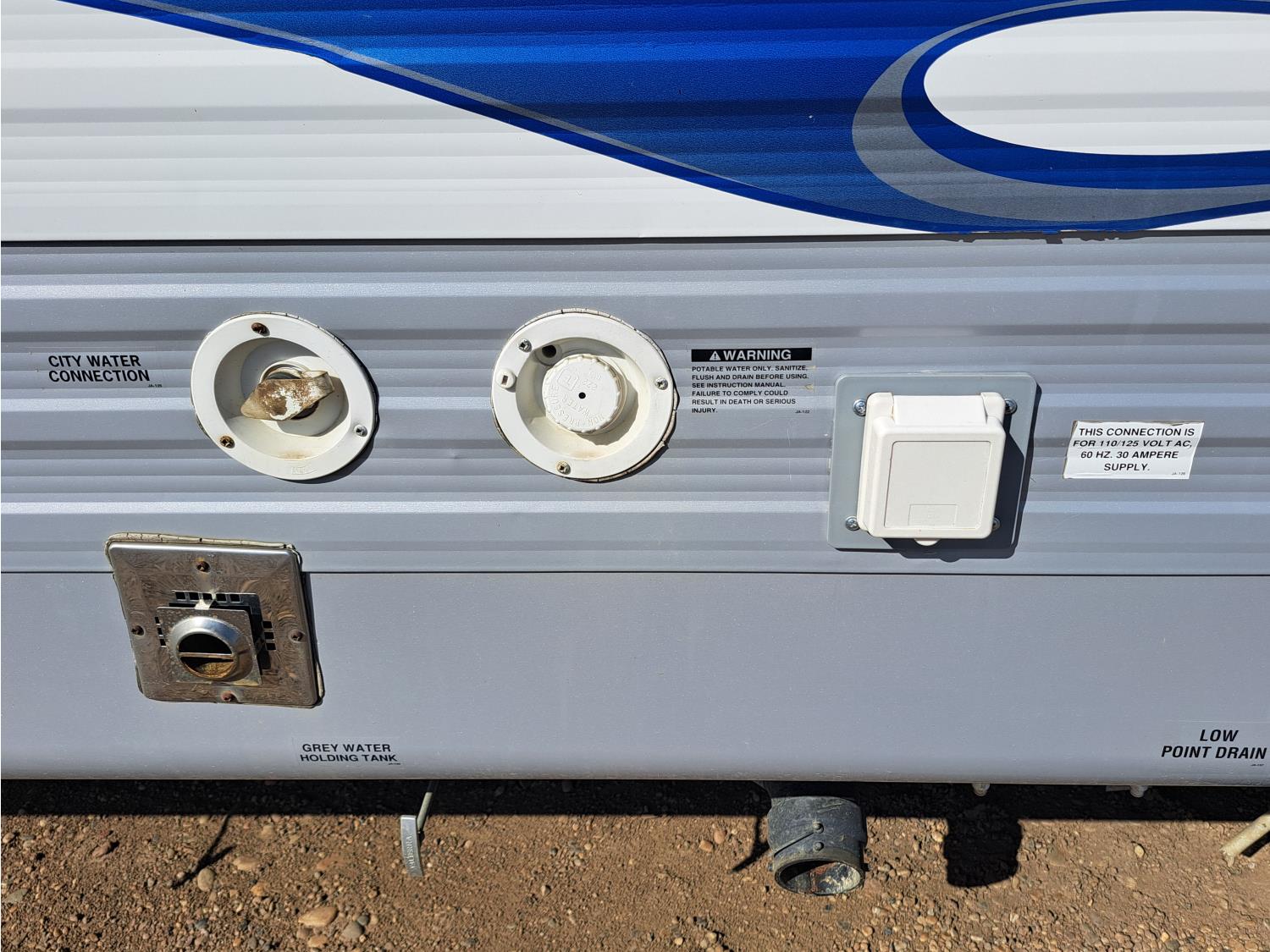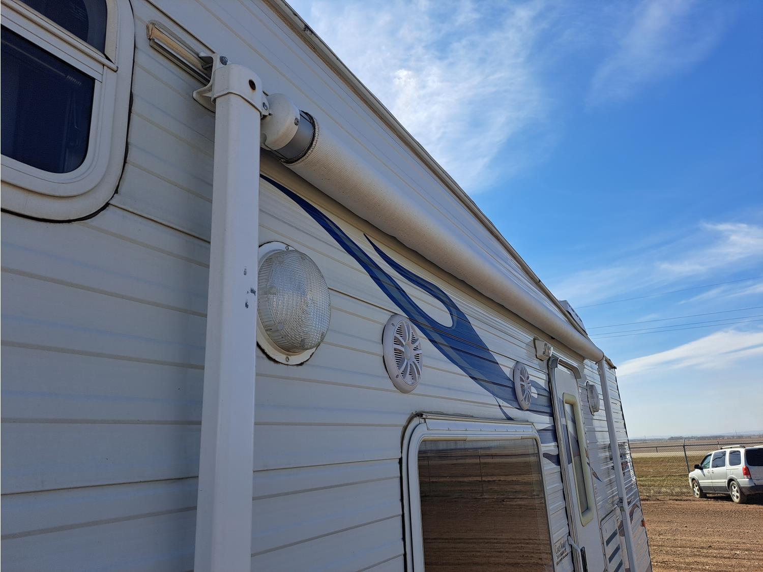 Sleeps 6, stove, fridge, microwave, full bath, bunk beds, outdoor shower, manual awning, spring suspension, 225/75R15 tires
