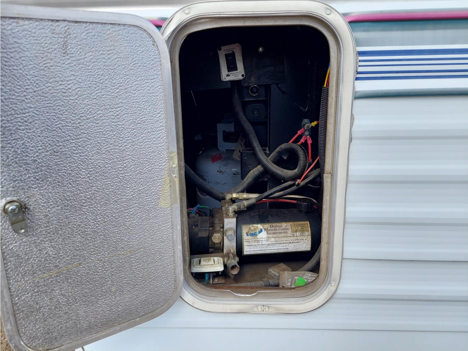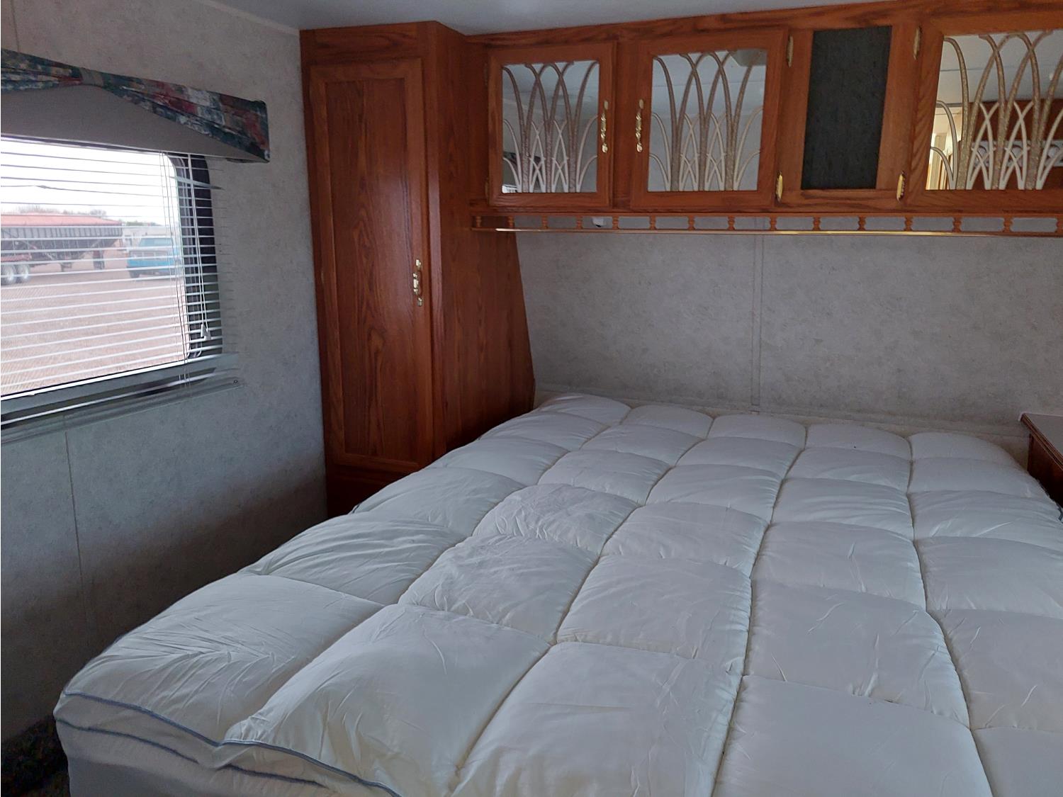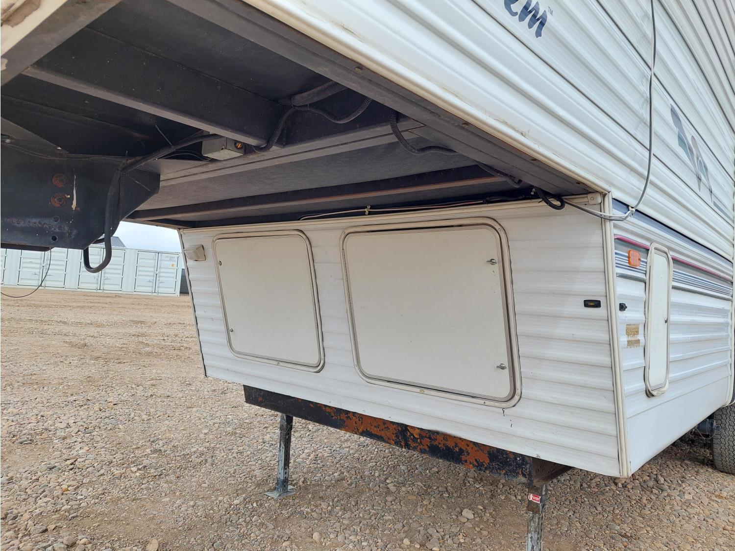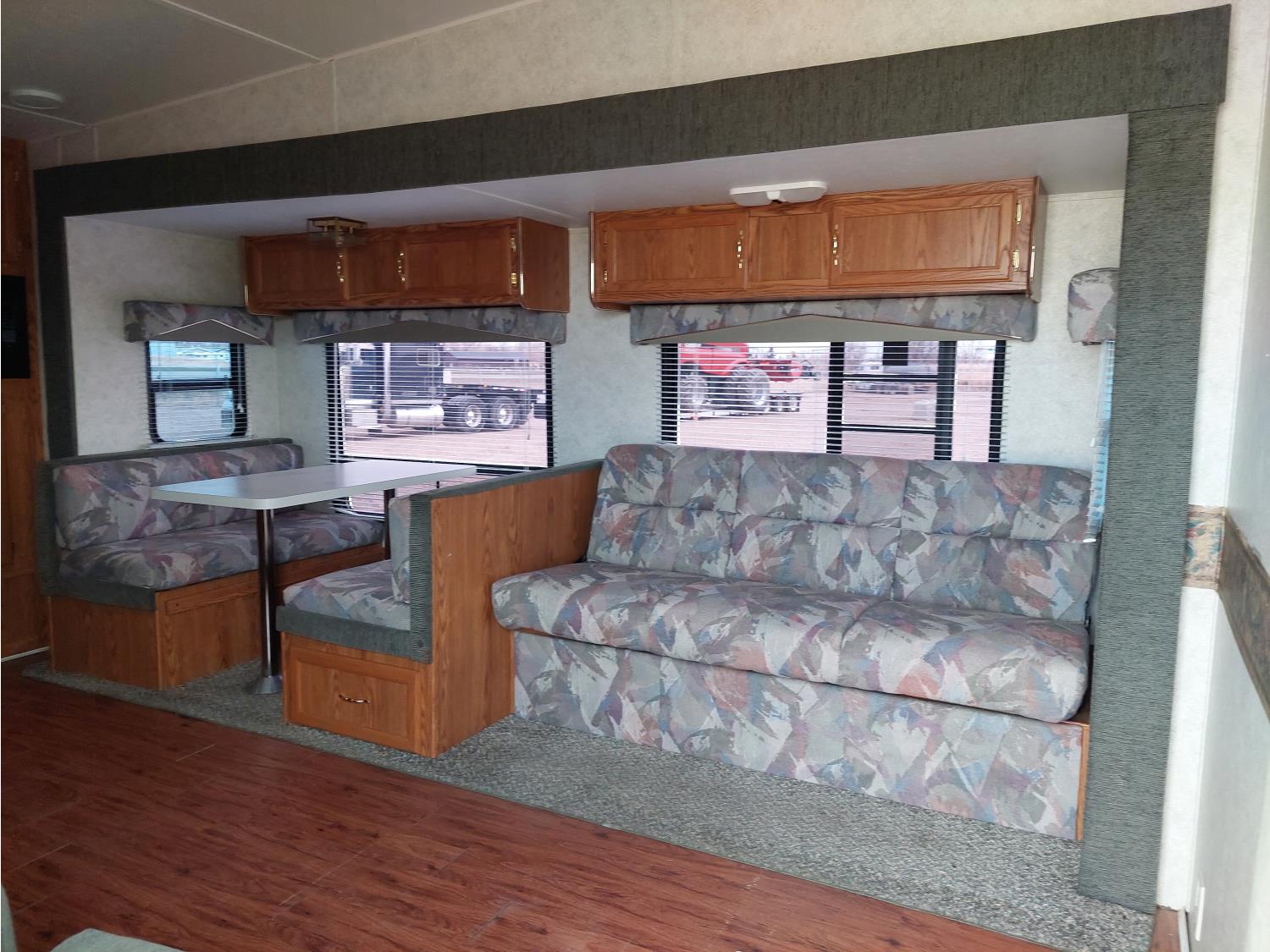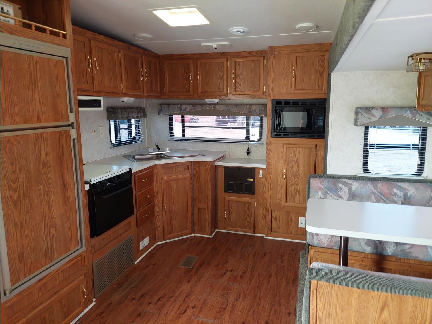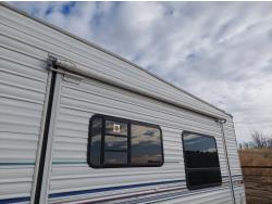 Sleeps 6, stove, fridge, microwave, full bath, master bedroom, A/C, 1 slide, manual awning, spring suspension, electric brakes, roof top solar panels, manual slide awning, 225/75R15 tires