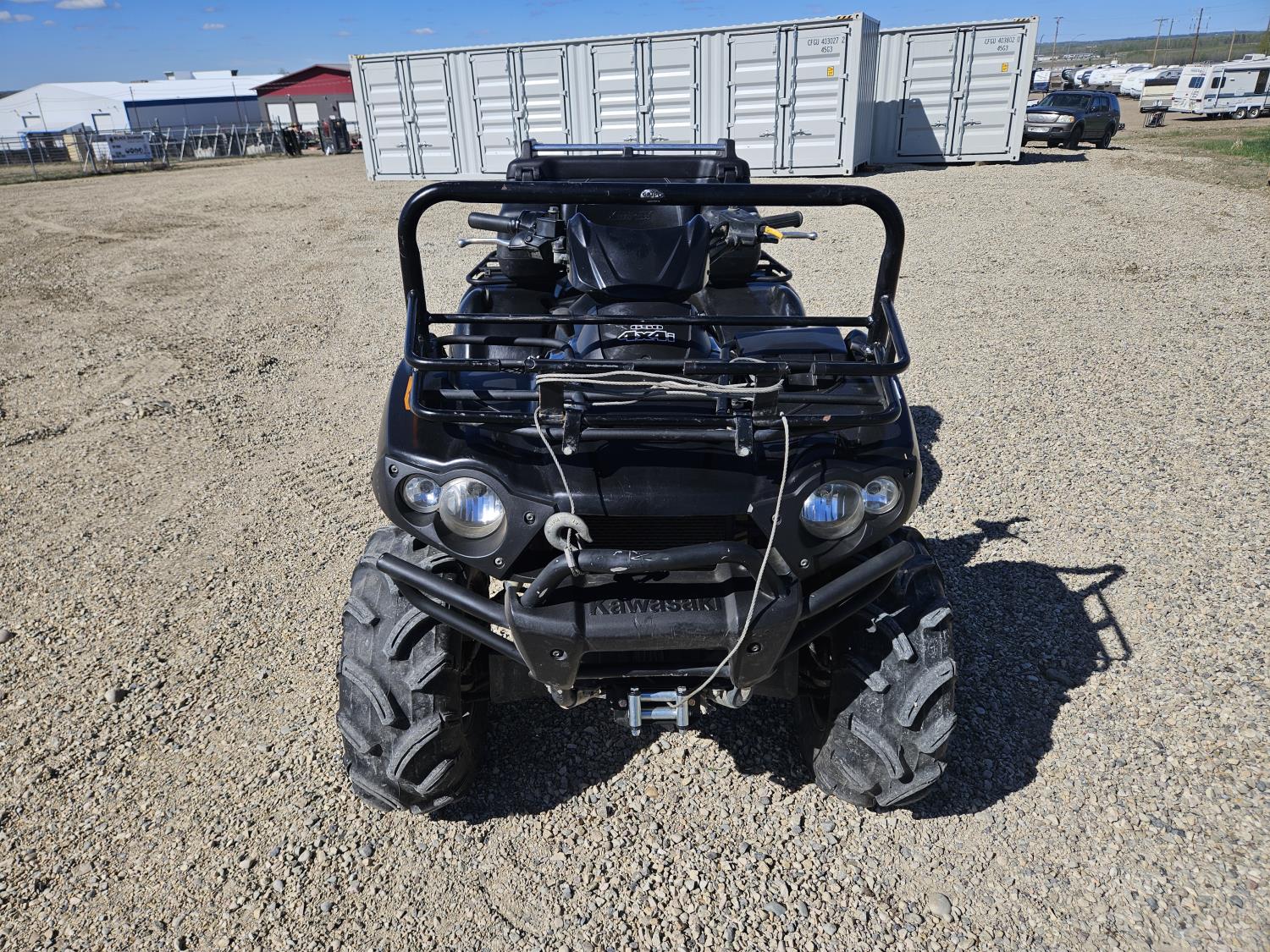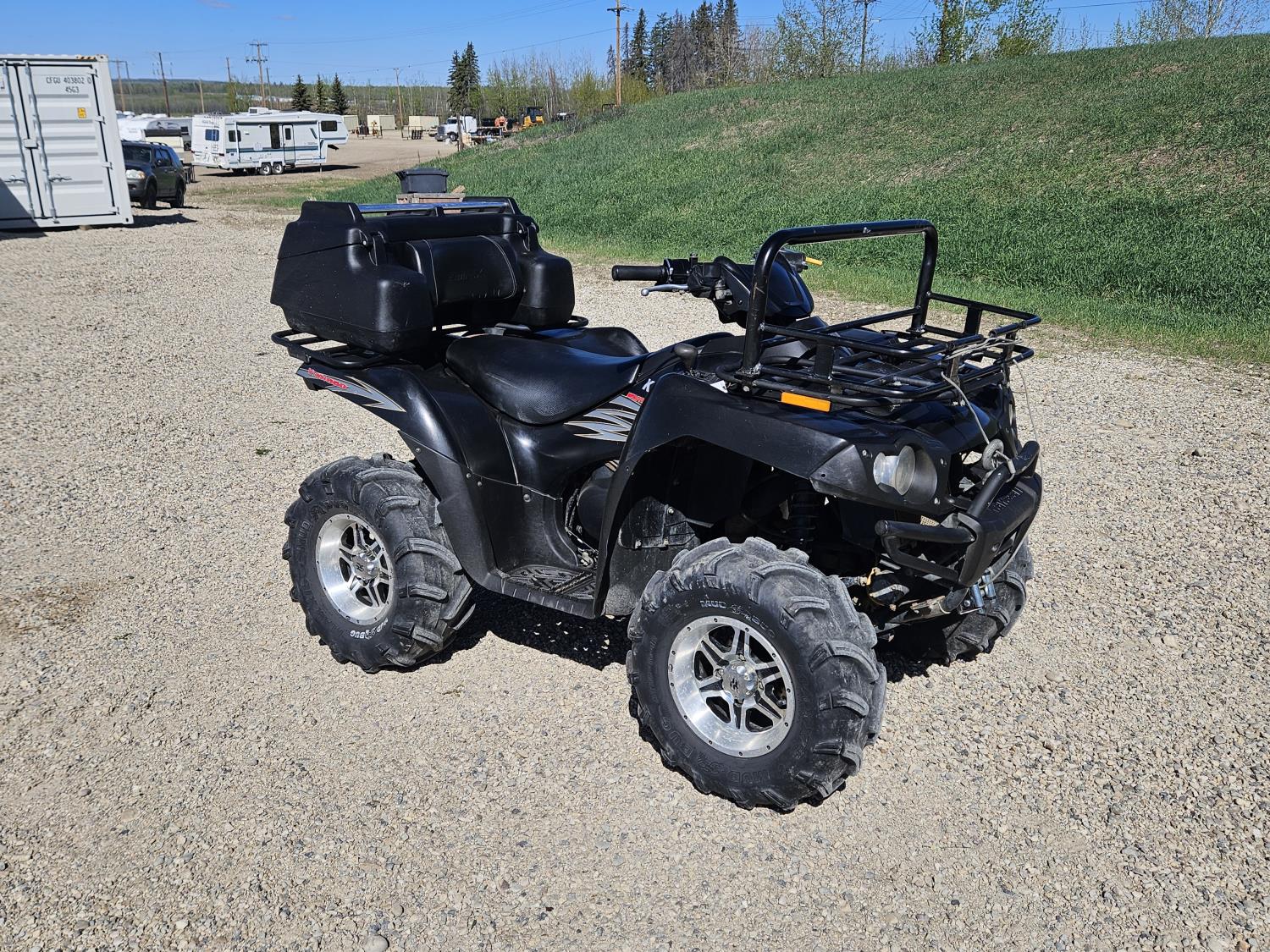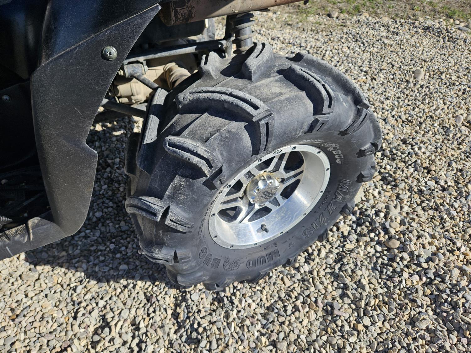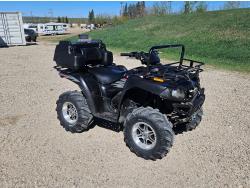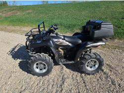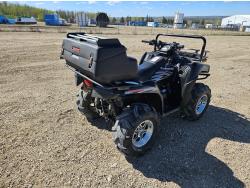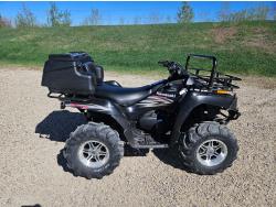 650 cc water cooled engine, automatic transmission, Hi/Lo range, reverse, hitch, front and rear racks, buddy seat, tool box, front winch, 26X10-12 front tires, 26X12-12 rear tires