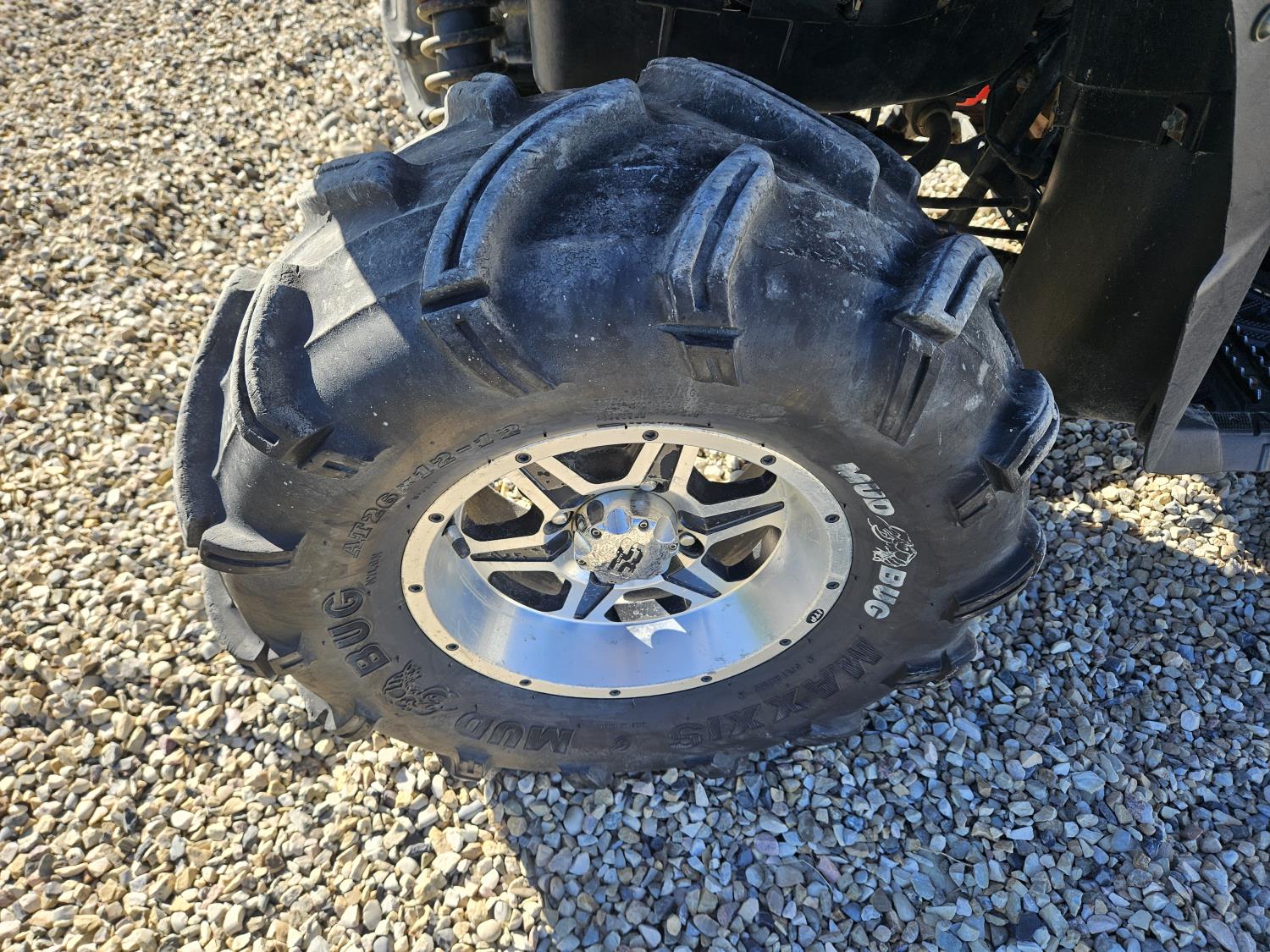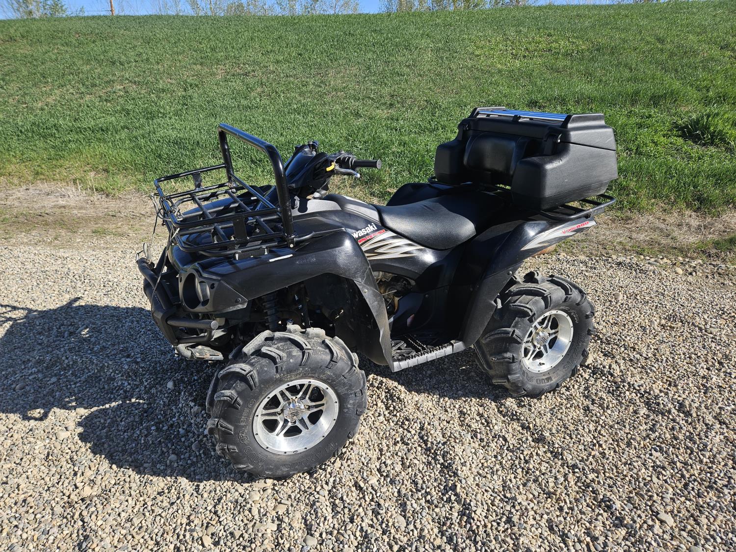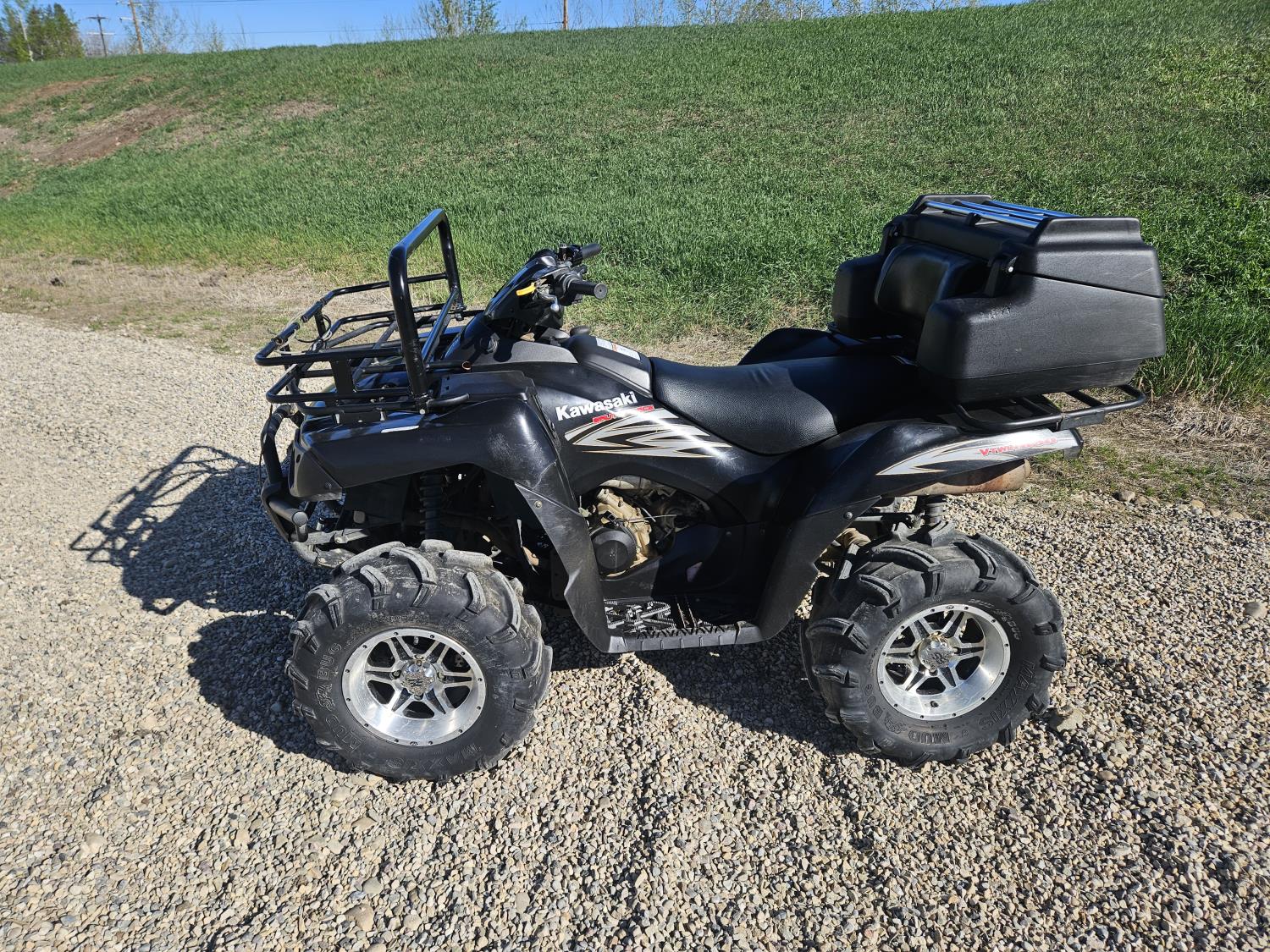 650 cc water cooled engine, automatic transmission, Hi/Lo range, reverse, hitch, front and rear racks, buddy seat, tool box, front winch, 26X10-12 front tires, 26X12-12 rear tires