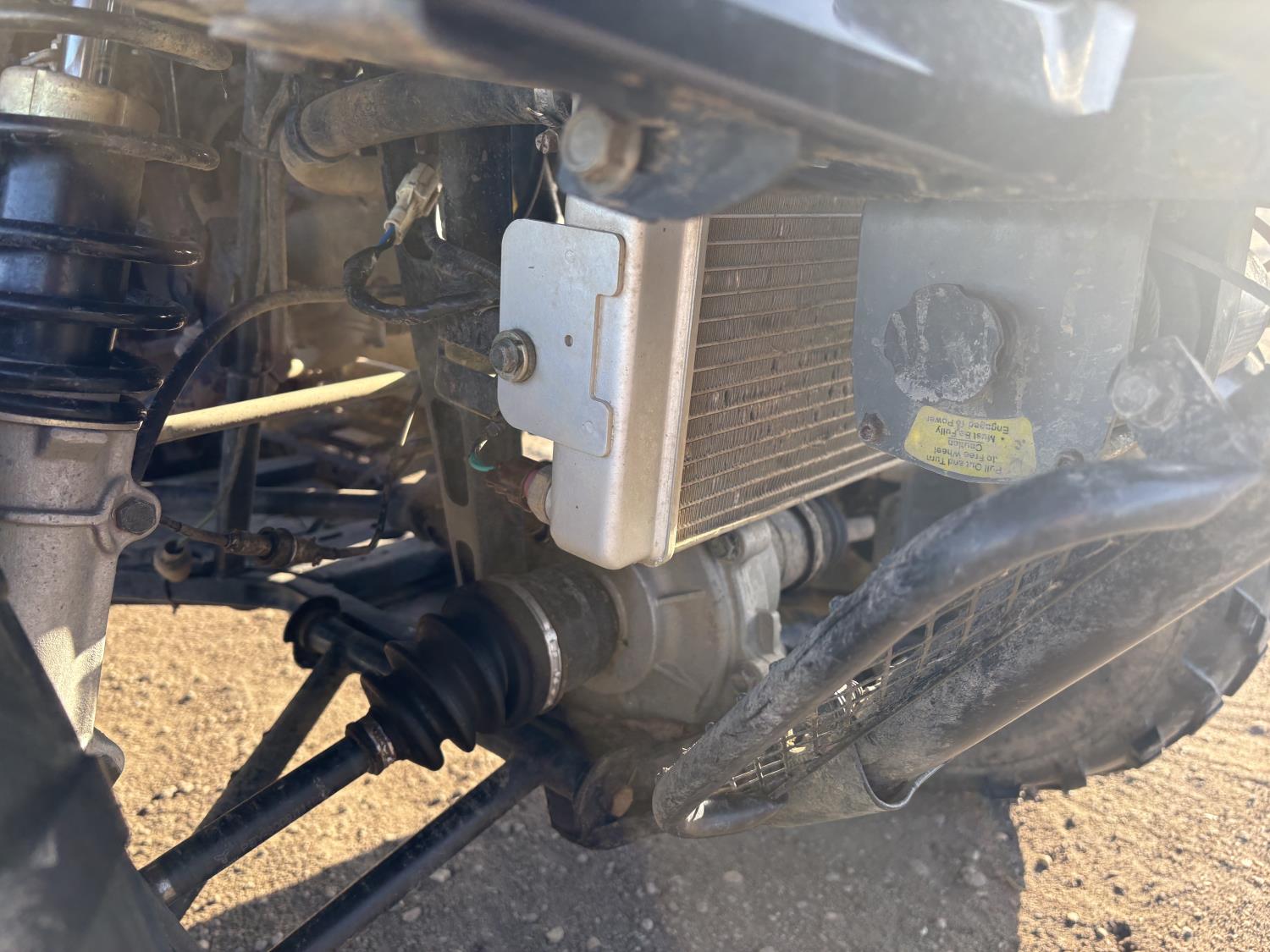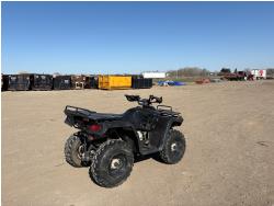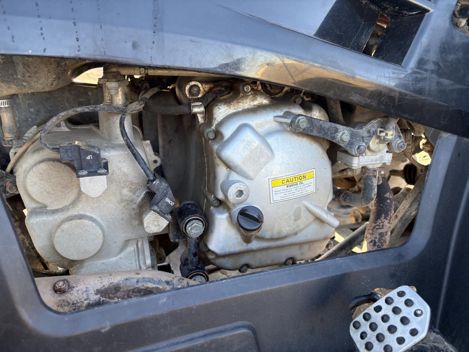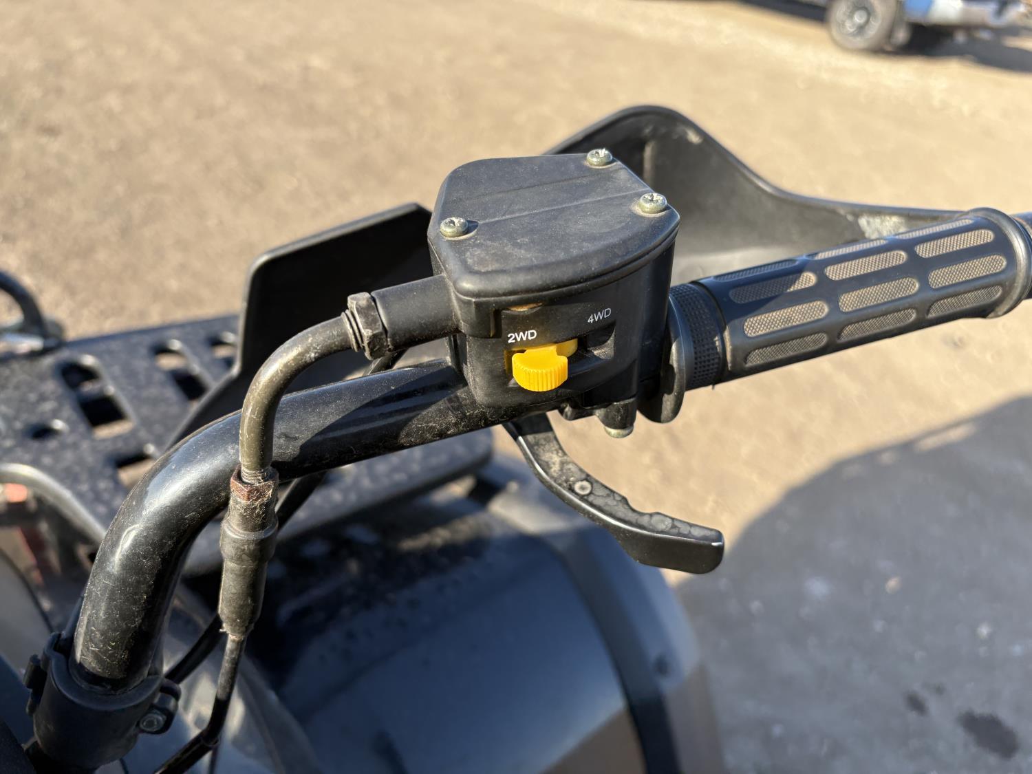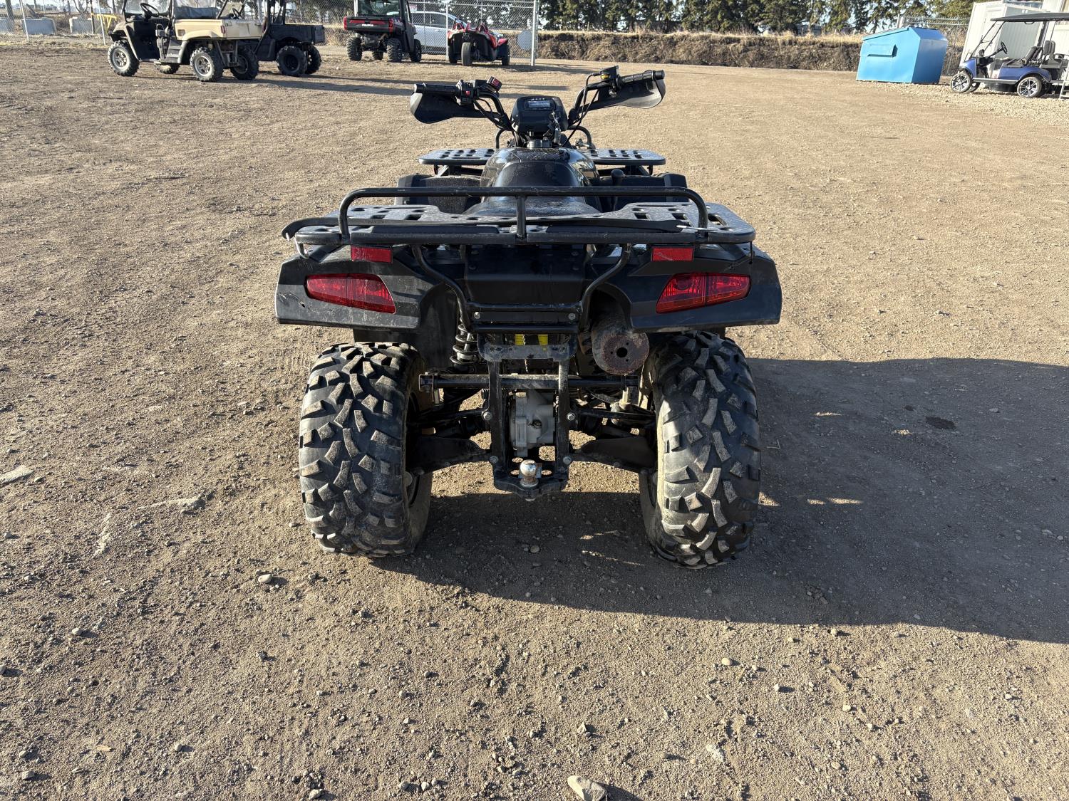 300 cc fuel injected water cooled engine, automatic transmission, Hi/Lo range, reverse, front and rear racks, front winch, alarm theft system, remote start, needs battery, 25X8-12 front tires, 25X10-12 rear tires