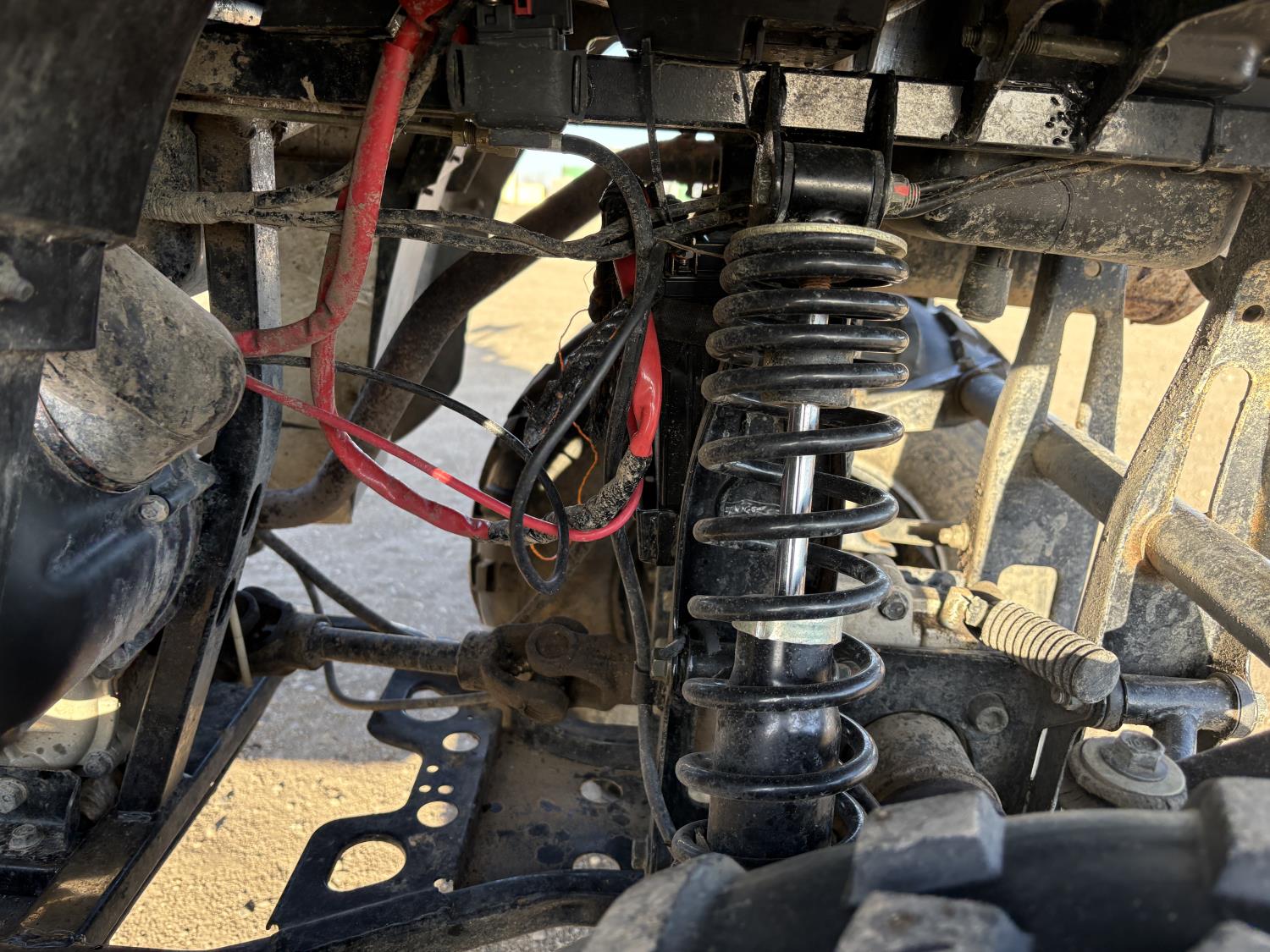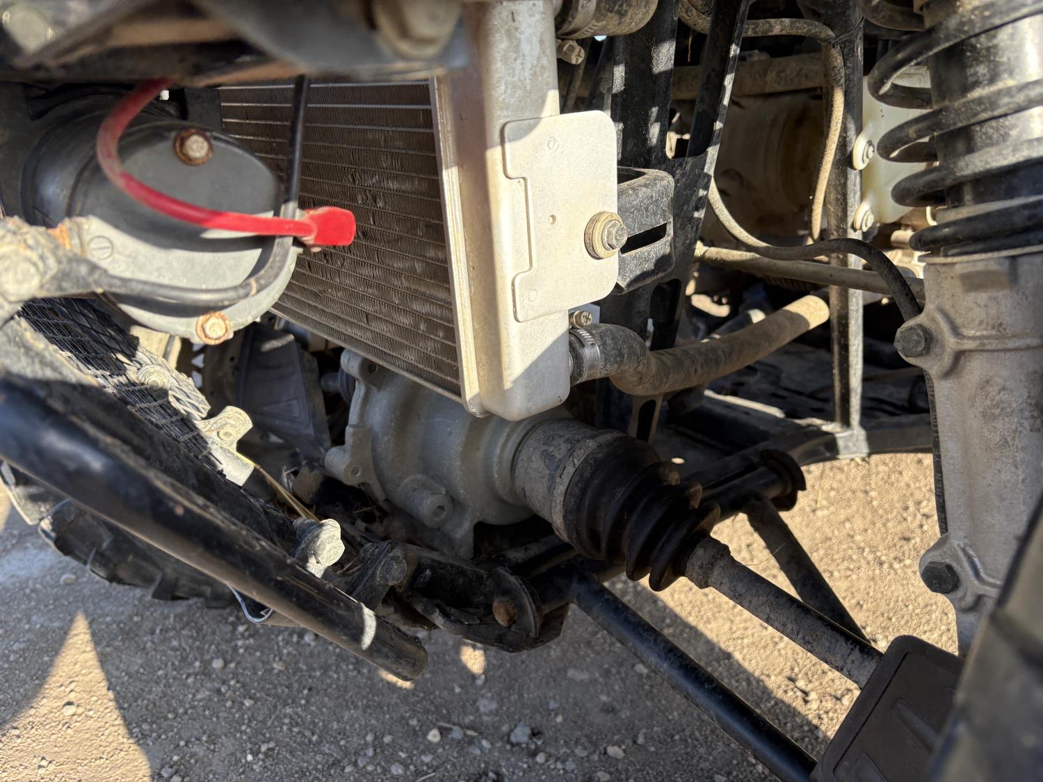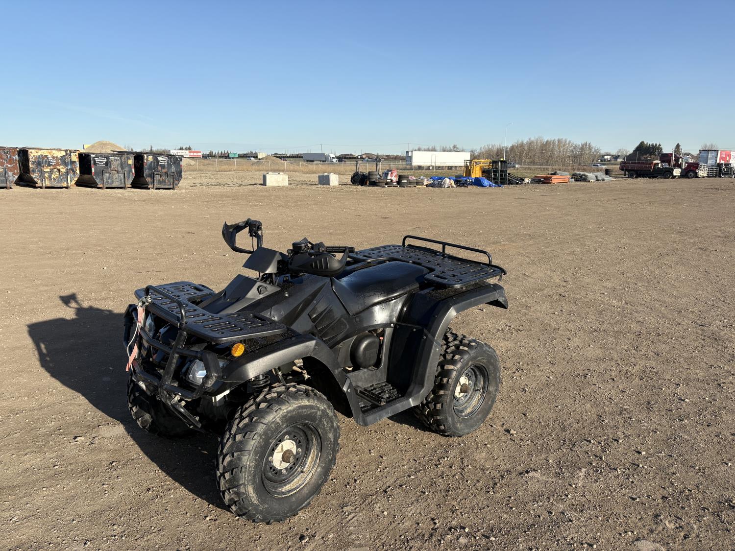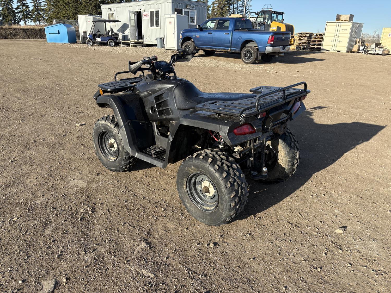 300 cc fuel injected water cooled engine, automatic transmission, Hi/Lo range, reverse, front and rear racks, front winch, alarm theft system, remote start, needs battery, 25X8-12 front tires, 25X10-12 rear tires