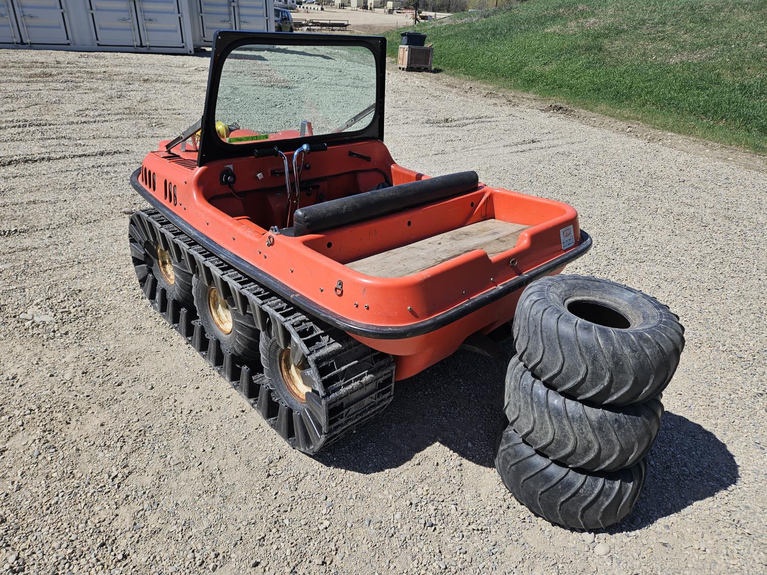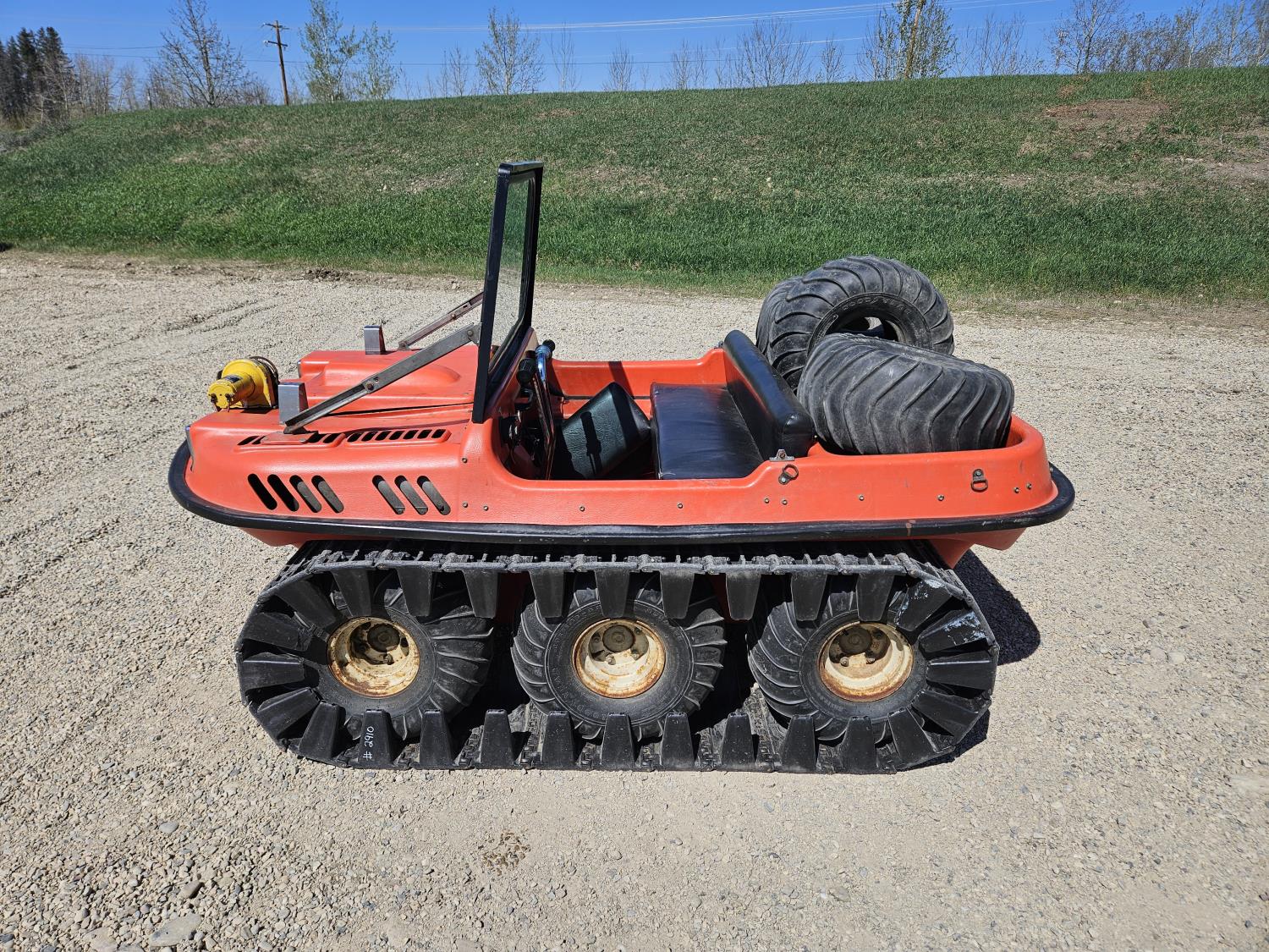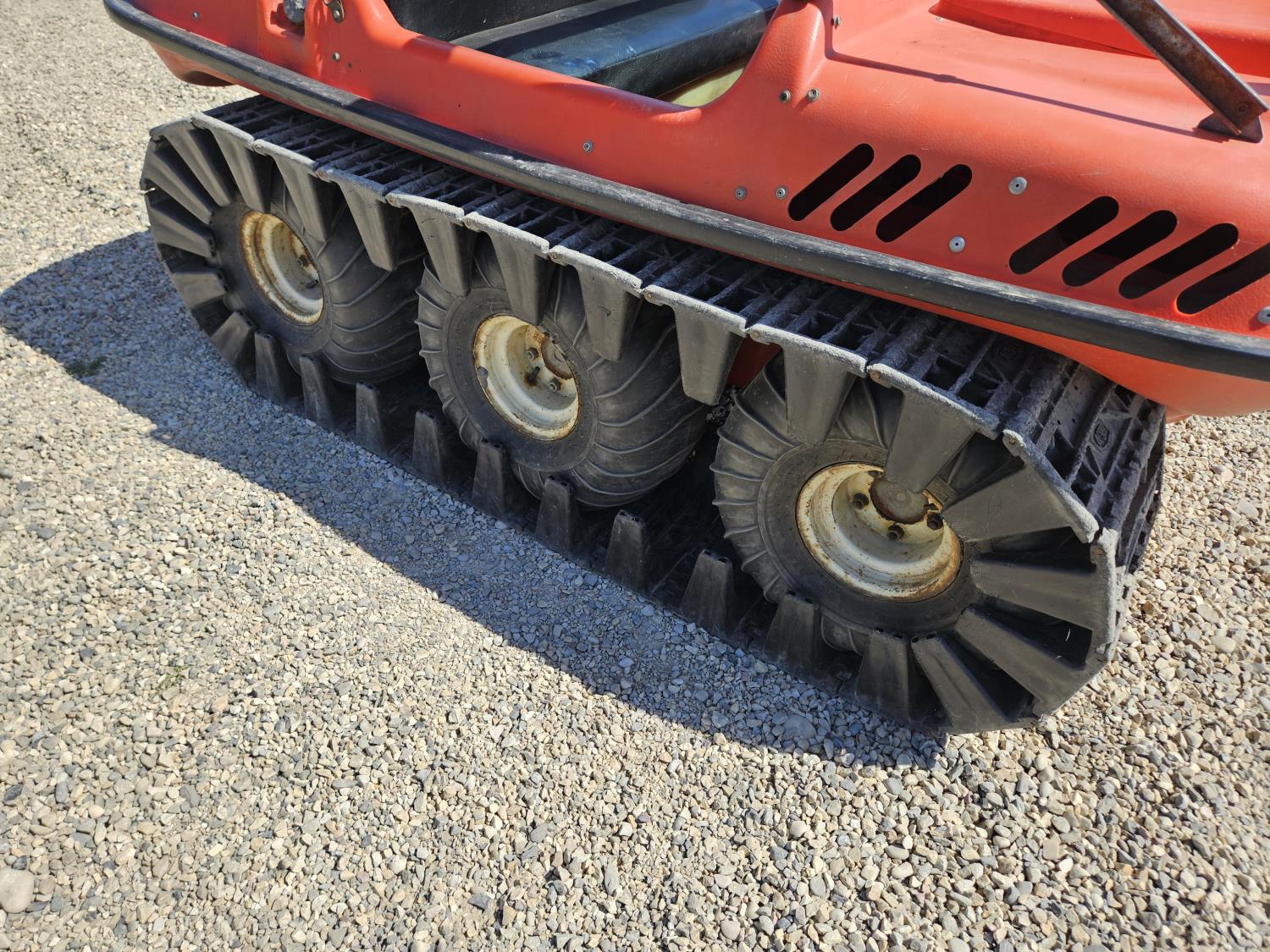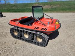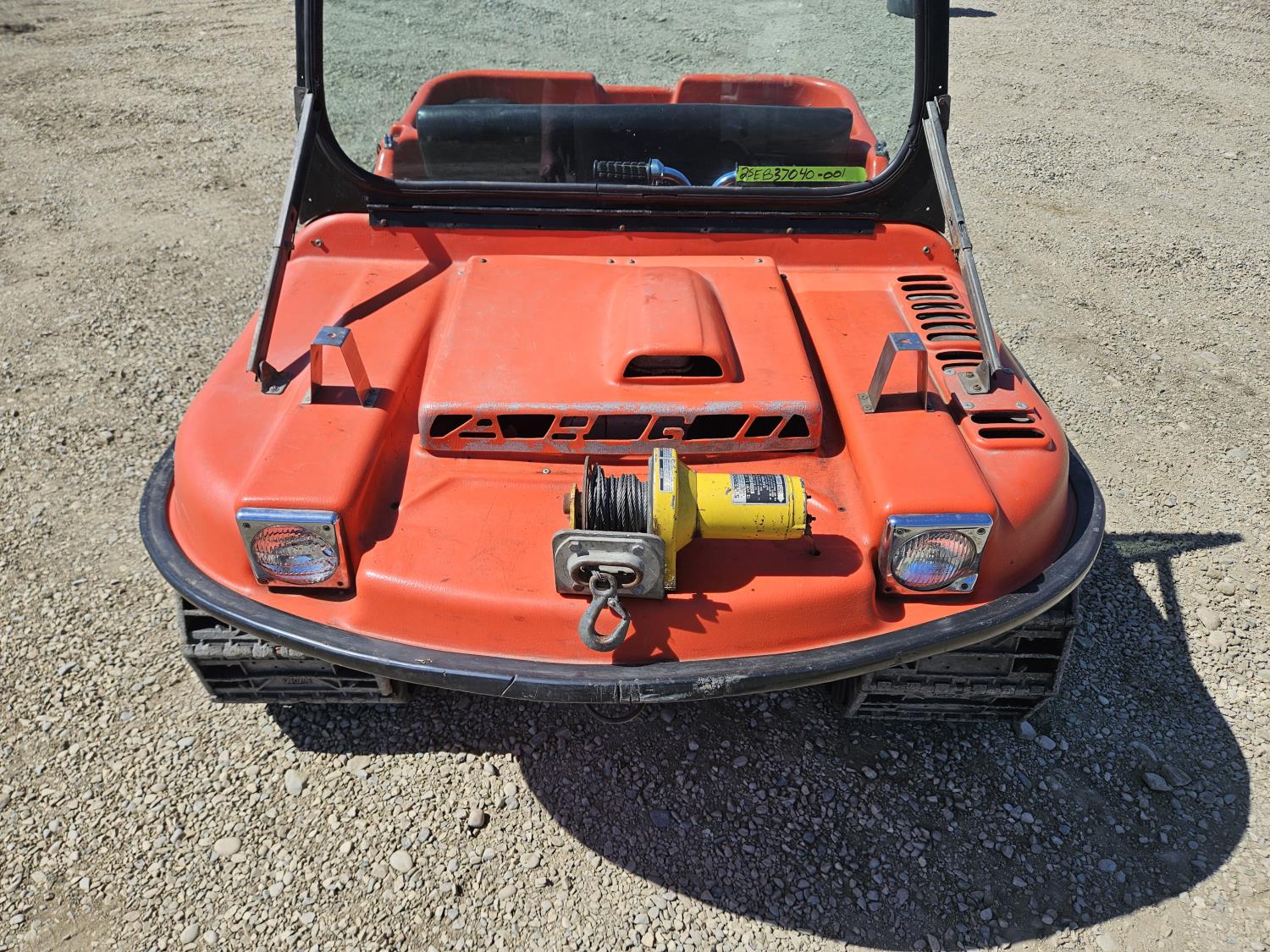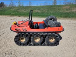 16 HP Tecumseh single cylinder OHV gas engine, hi/low reverse CVT transmission, 6 wheeled w/tracks, 3 spare 20x11.00-8 tires, windshield, electric start 1500 lb front mount winch