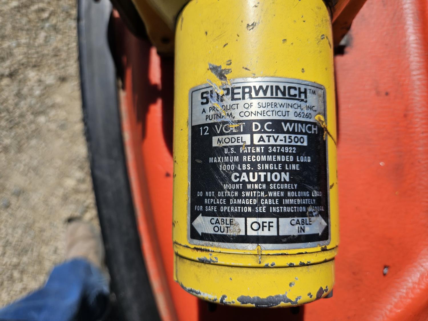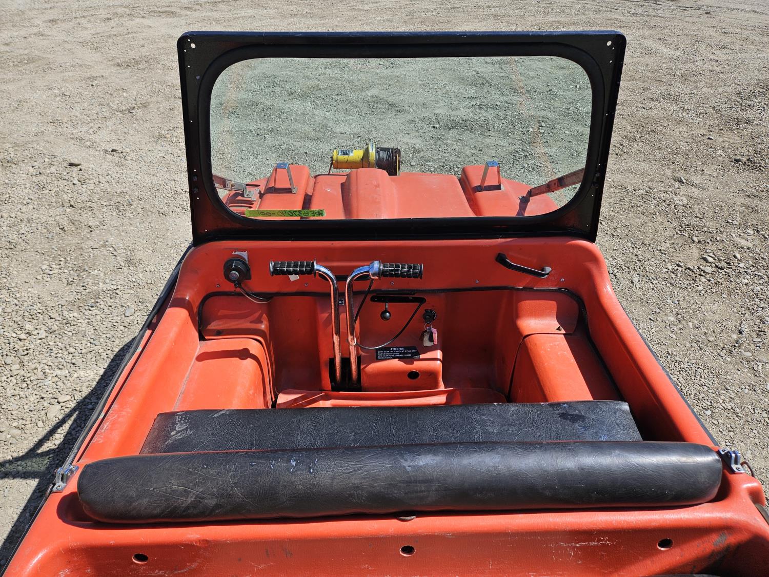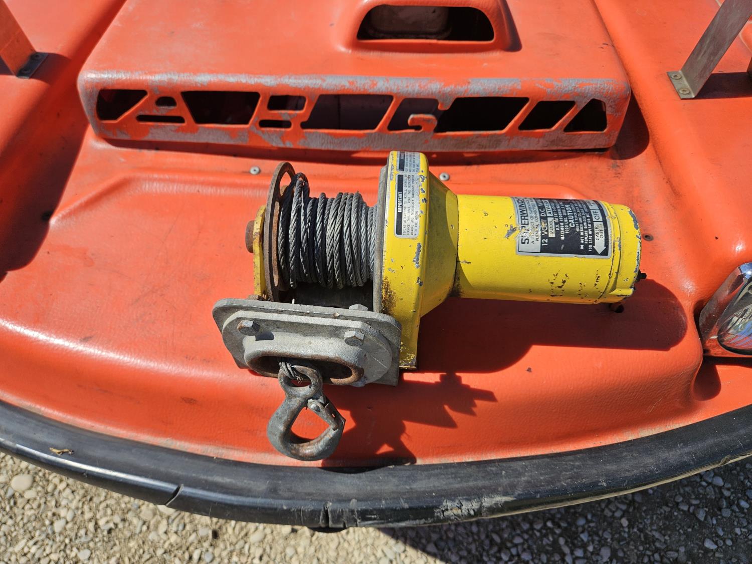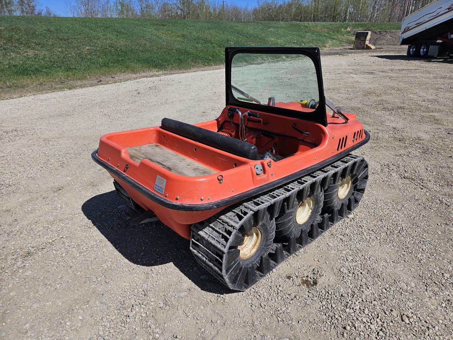 16 HP Tecumseh single cylinder OHV gas engine, hi/low reverse CVT transmission, 6 wheeled w/tracks, 3 spare 20x11.00-8 tires, windshield, electric start 1500 lb front mount winch