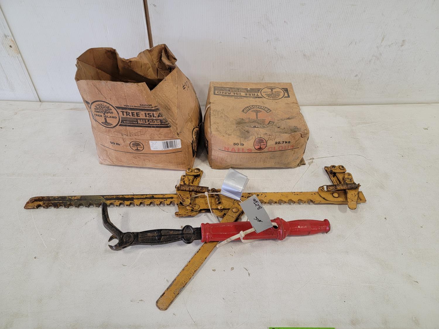 5146 (2) Boxes of Fence Staples, Fence Stretcher and Nail Puller