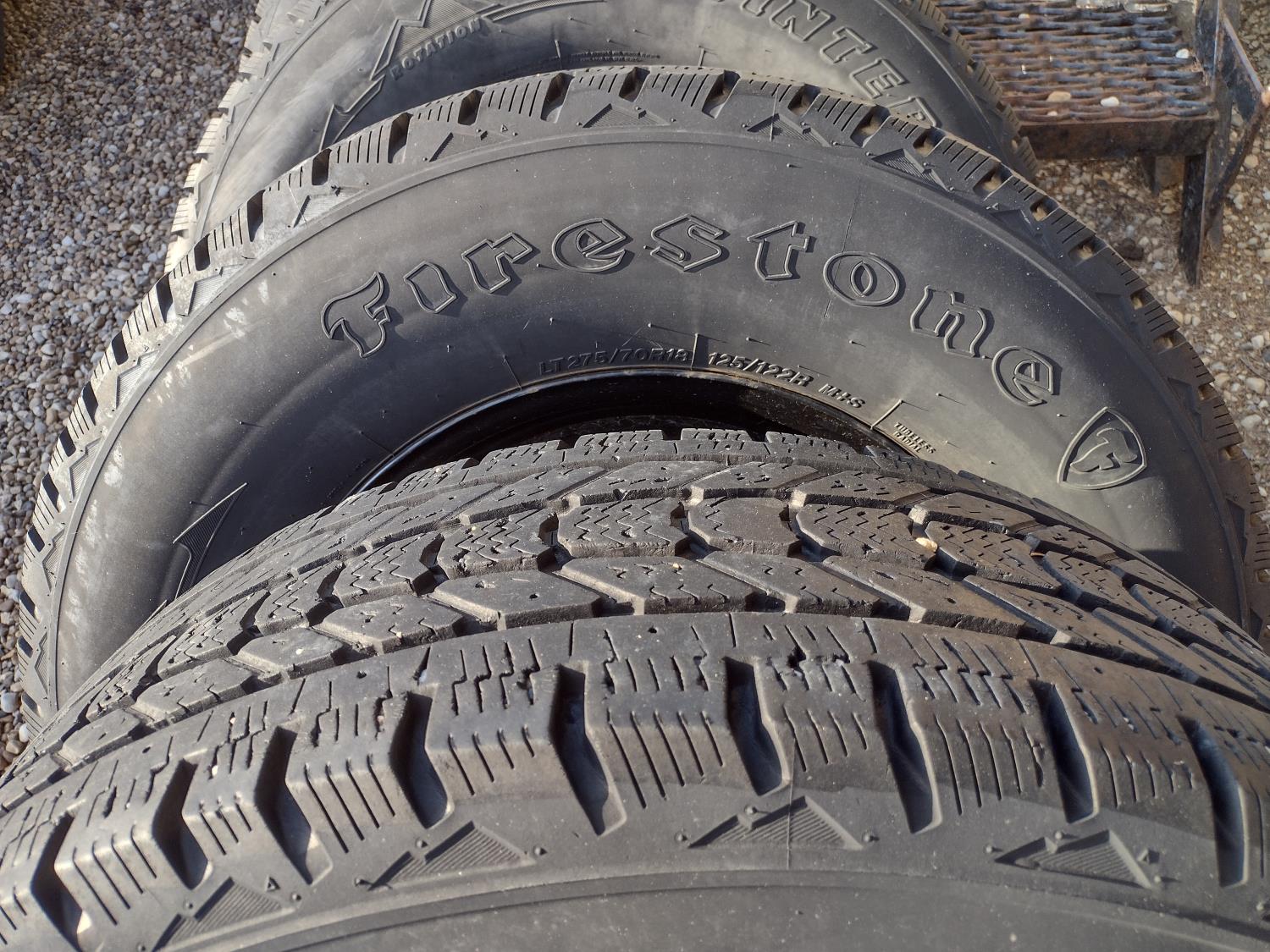 5205 (4) Firestone LT275/70R18 On 8 Bolt Ford Rims