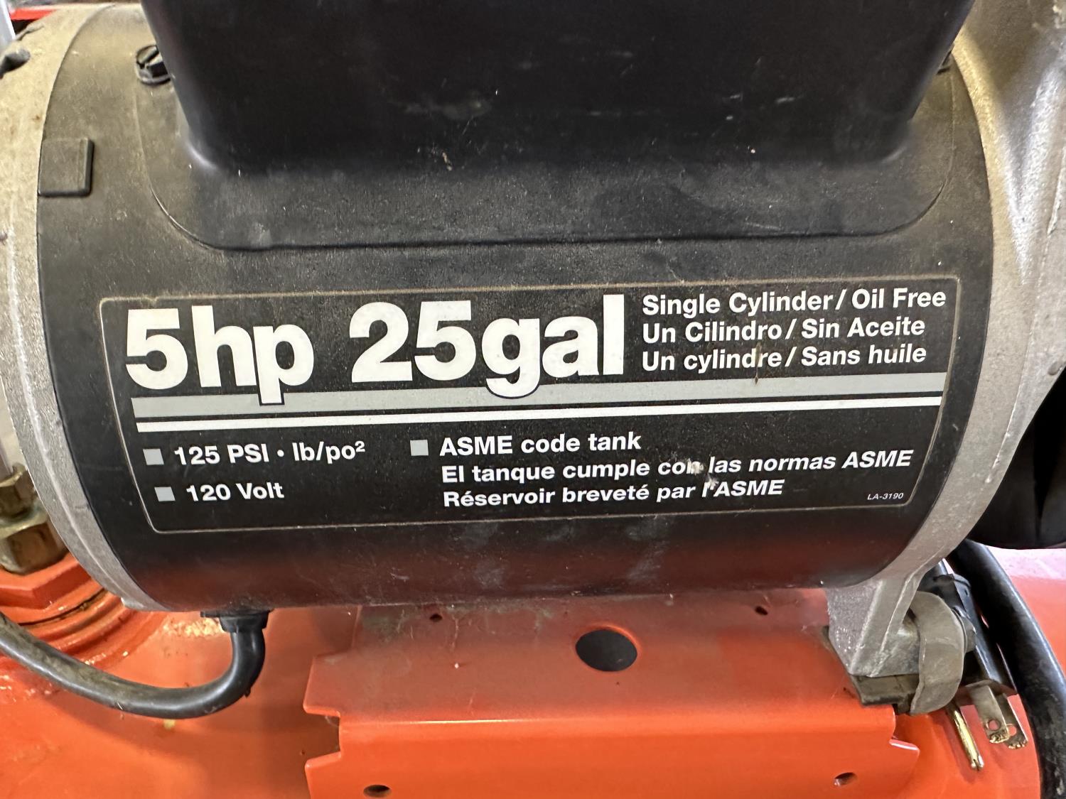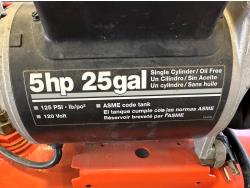 5 HP, single cylinder, oil free, 125 PSI, 120V, single phase