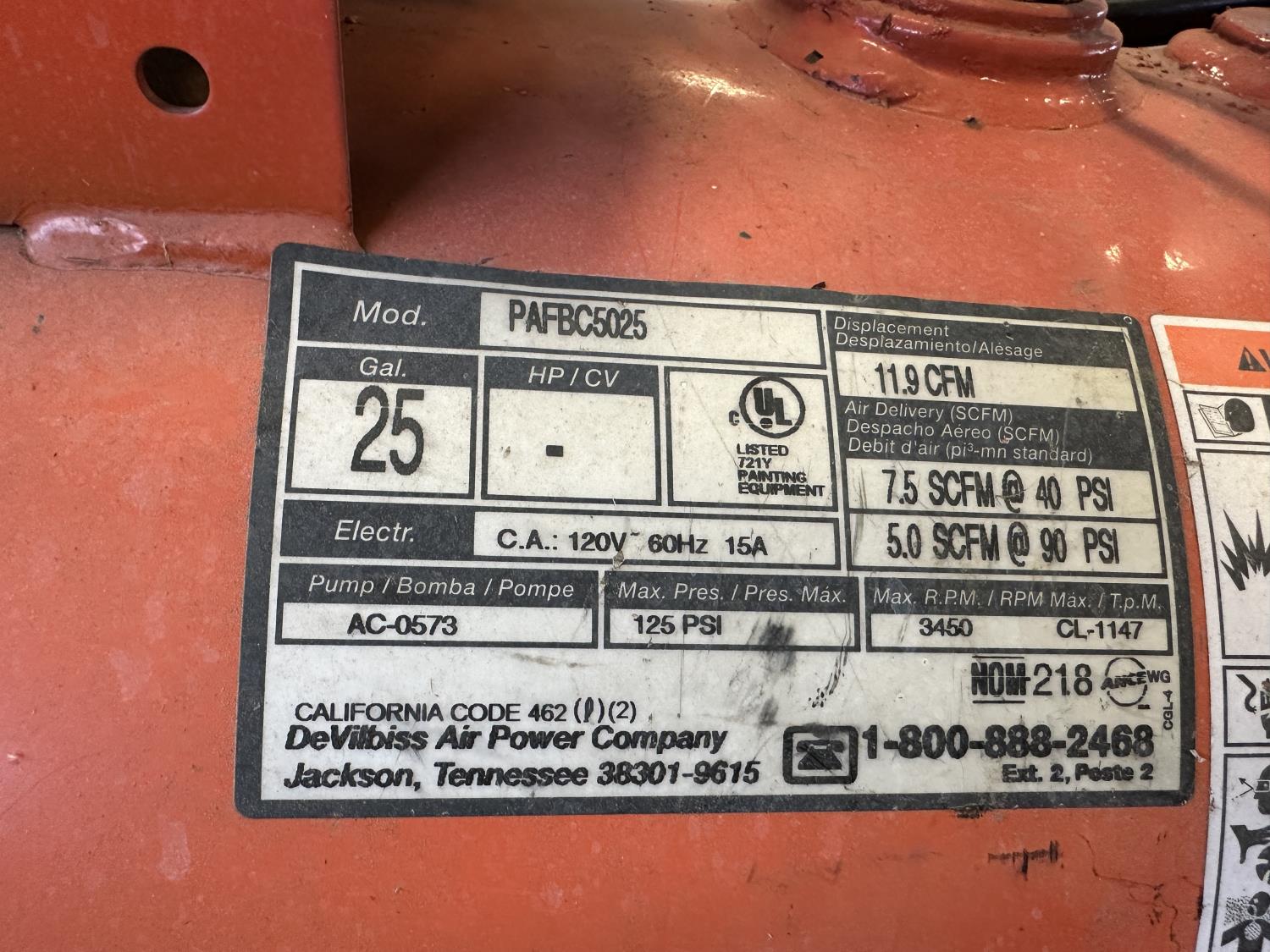 5181 De-Vilbiss Pro Air II 25 Gallon Air Compressor