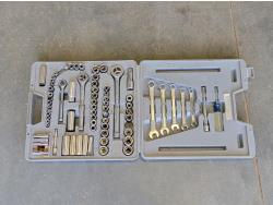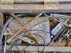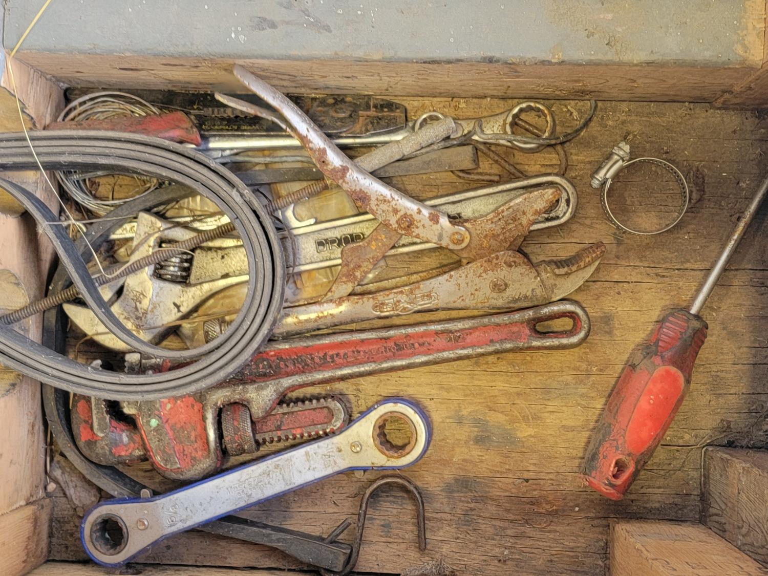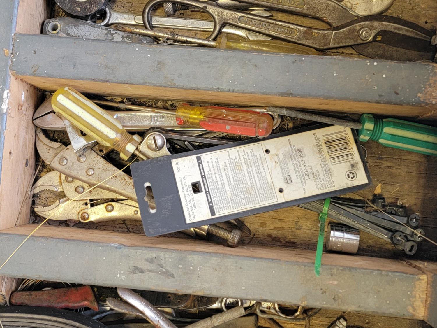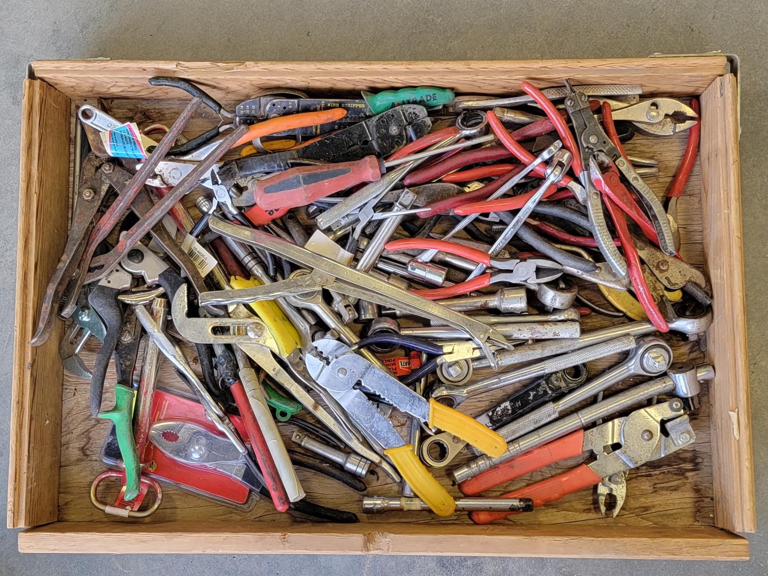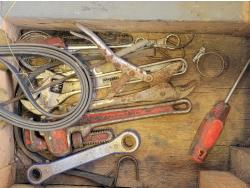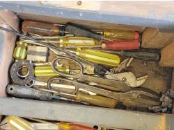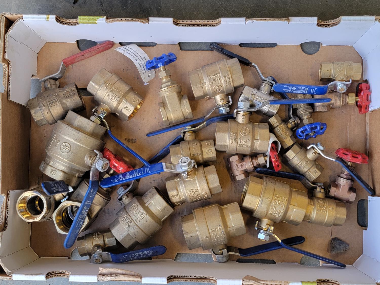 socket wrench set, screwdrivers, assortment of hand tools, assortment of brass valves
