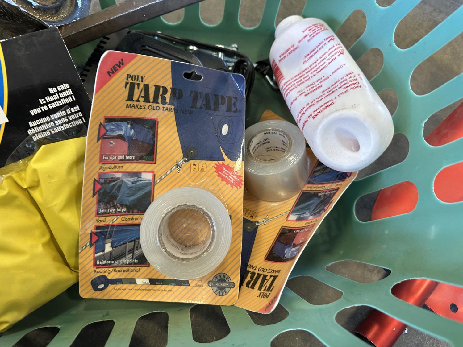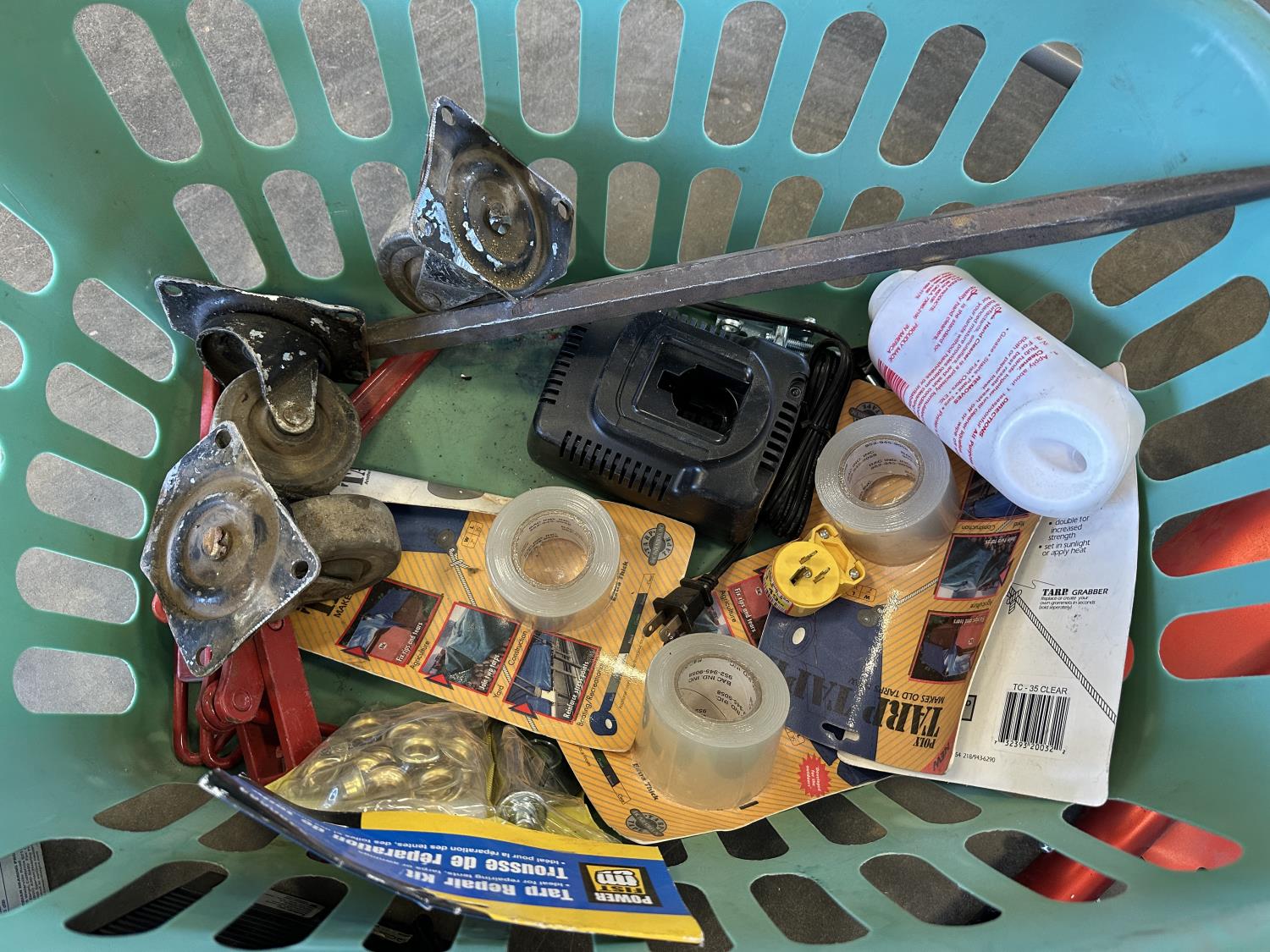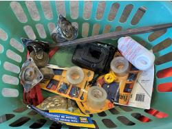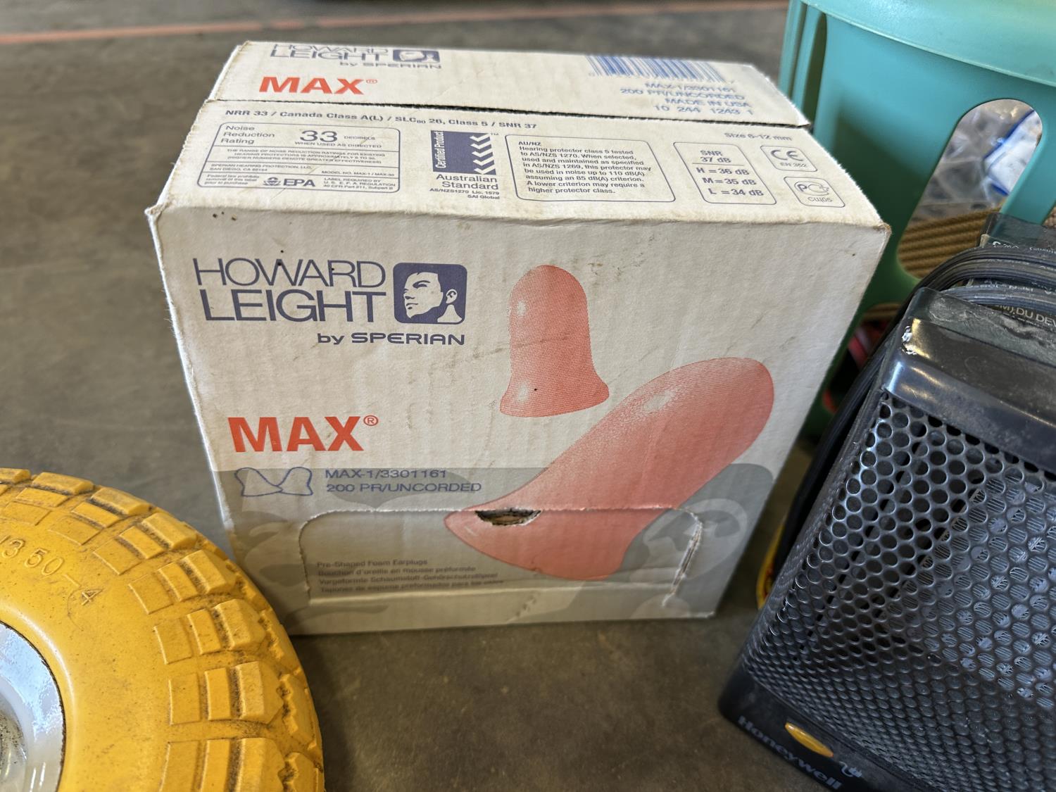 5/8 inch bore never flat hand truck tires, space heater, 3 inch Record vise, castor wheels, 35 inch shop broom, ear plugs