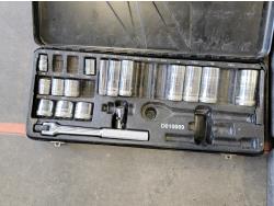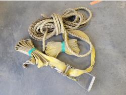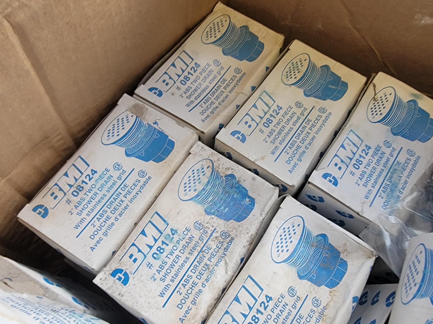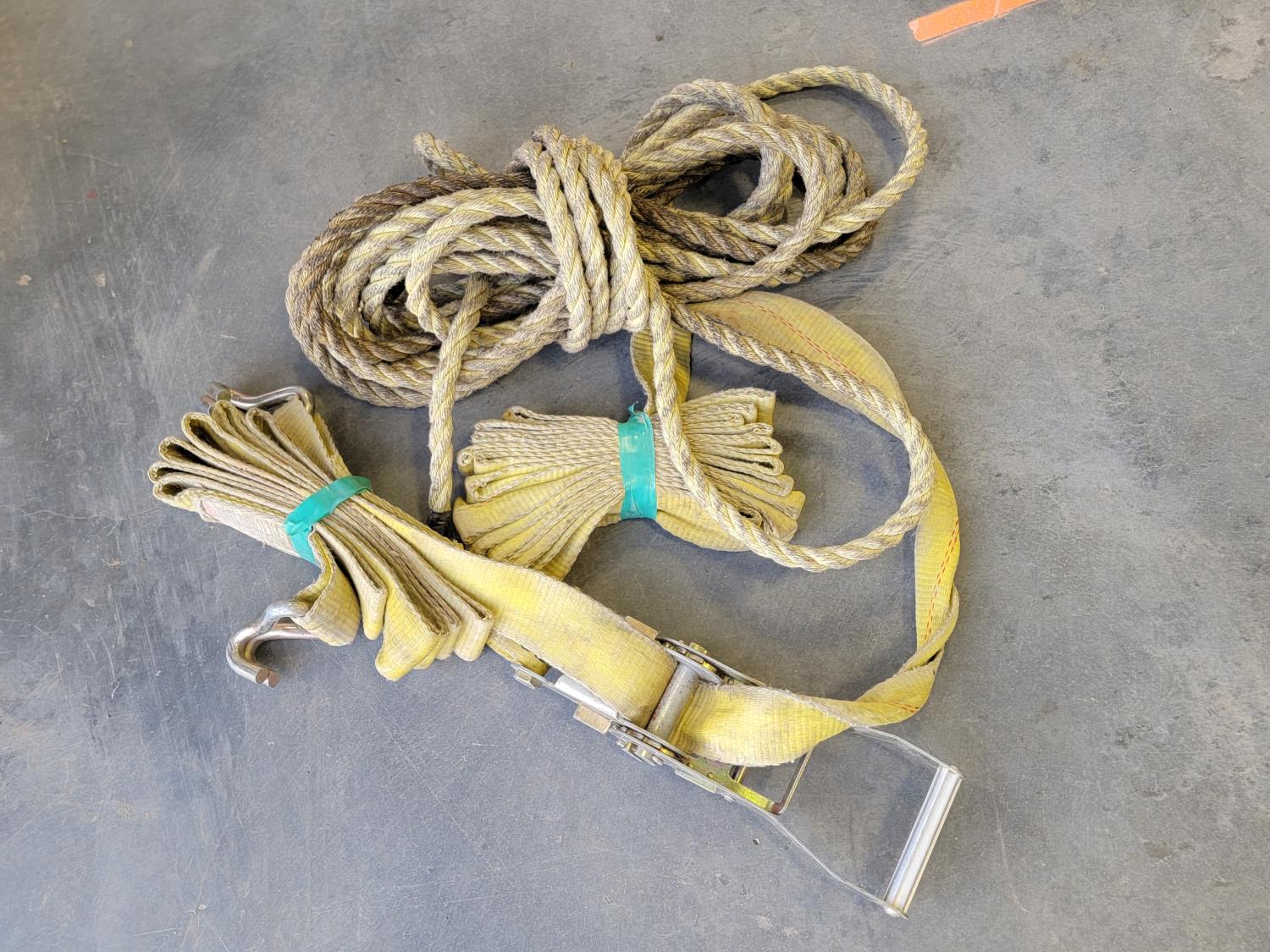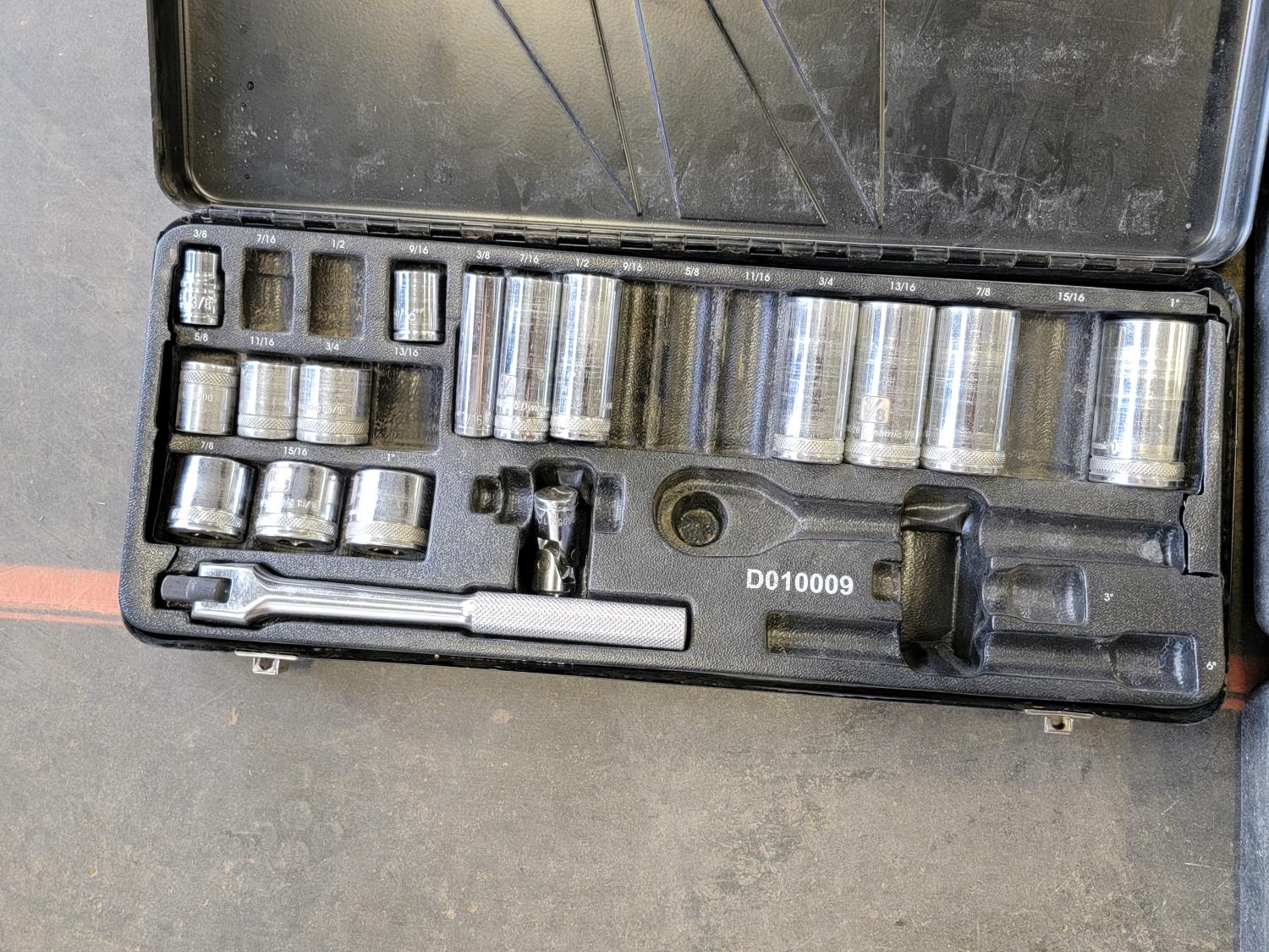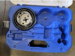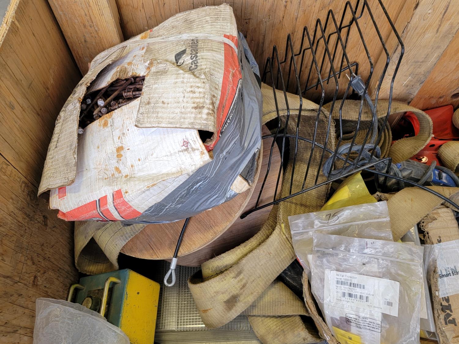 hammer chisel, socket wrench, atf adapter kit, hole saw, cement trowels, tie down ratchets, rope, propane heater, qty of 2 inch two piece shower drain, qty of cables, nails