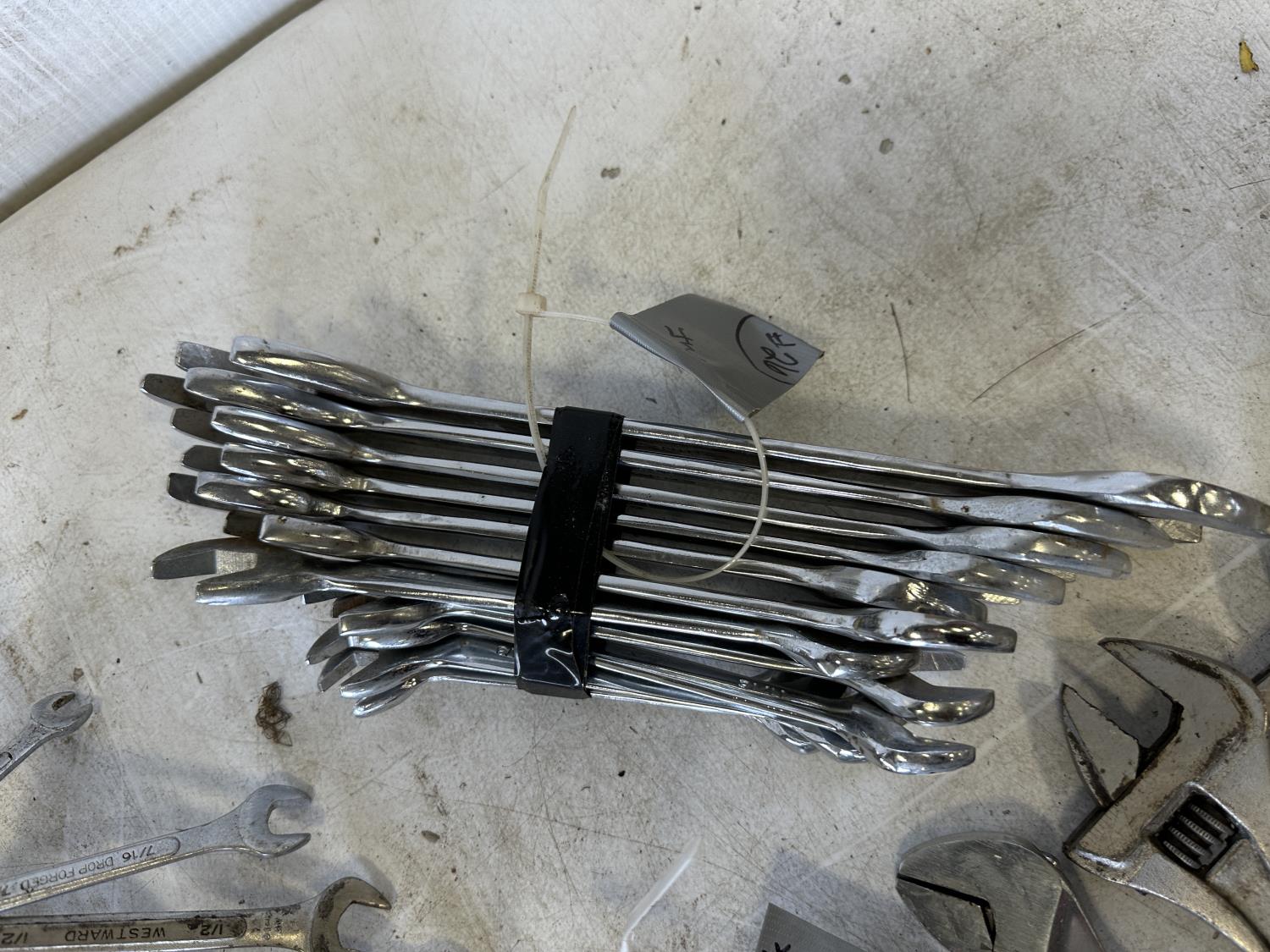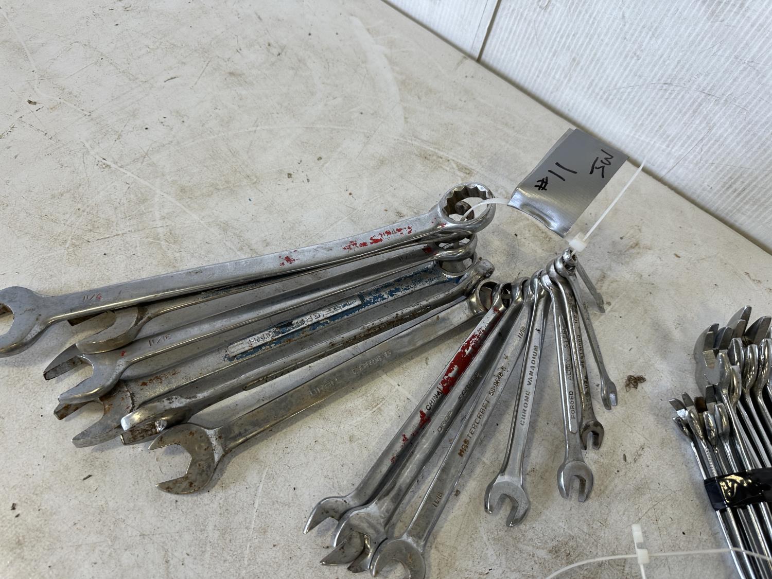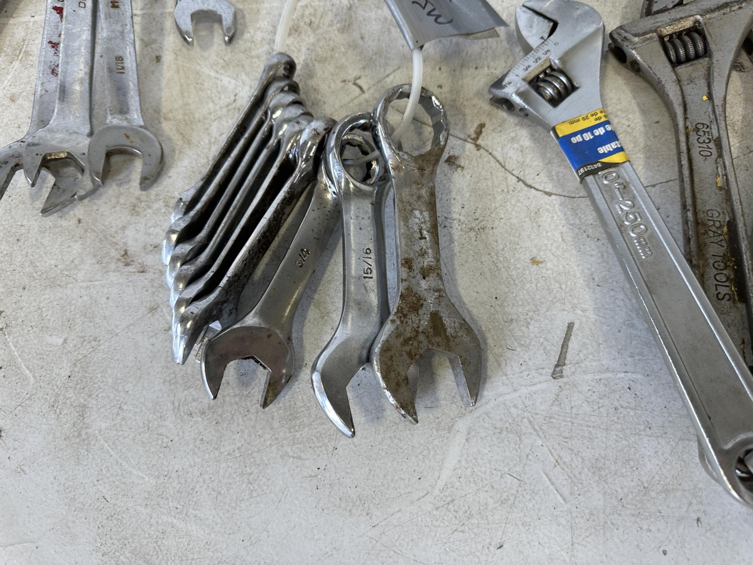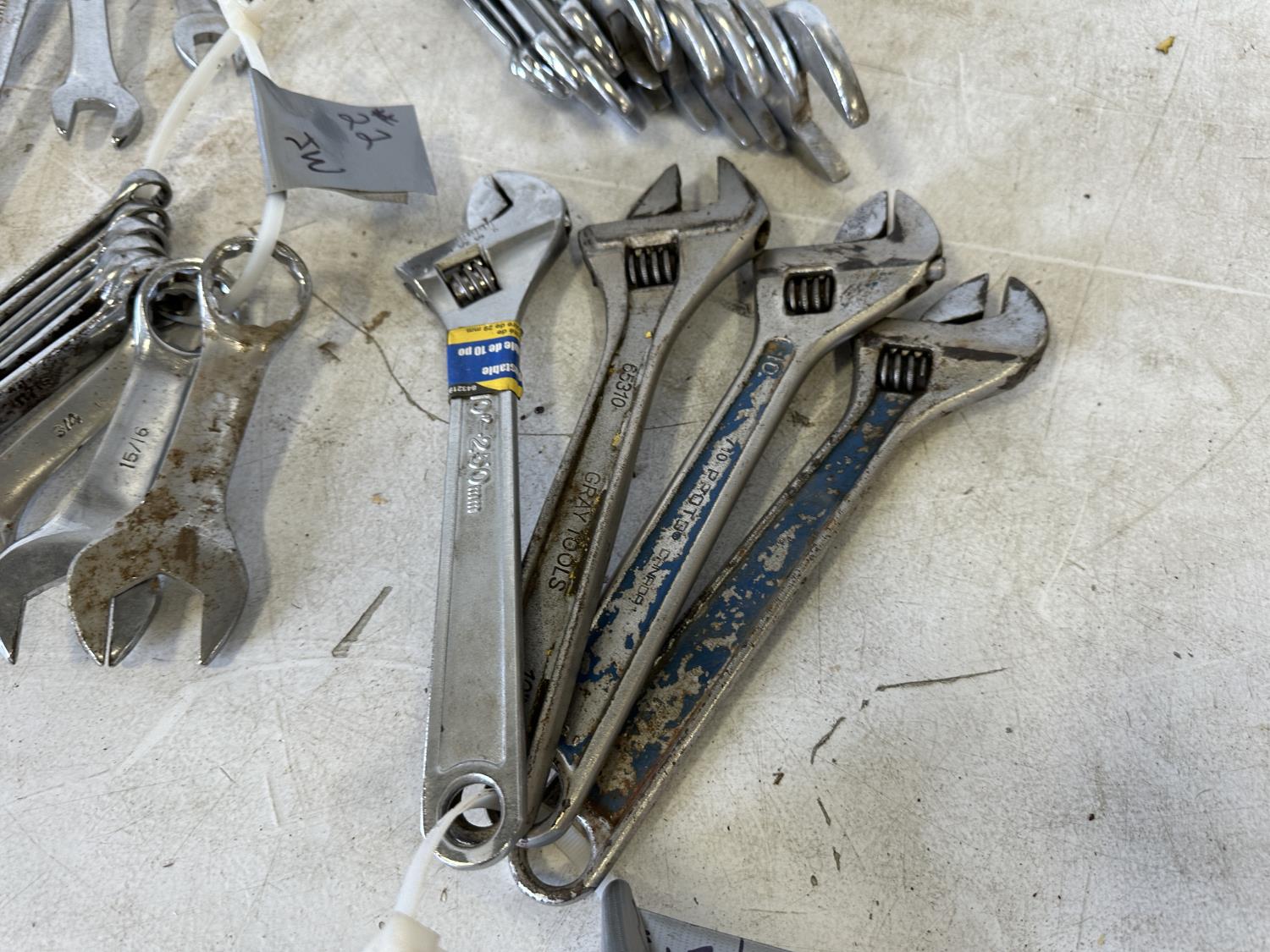 (4) 10 inch crescent wrenches, combination wrenches 3/8 inch to 1-1/4 inch, stubby wrenches 7/16 inch to 1 inch, angle wrenches 9/16 inch to 1-1/4 inch