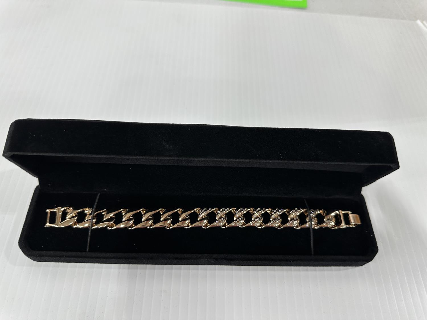 5025 Smartlife 18K Gold Plated 14.0 mm Iced Out Cuban Link Bracelet (Unused)