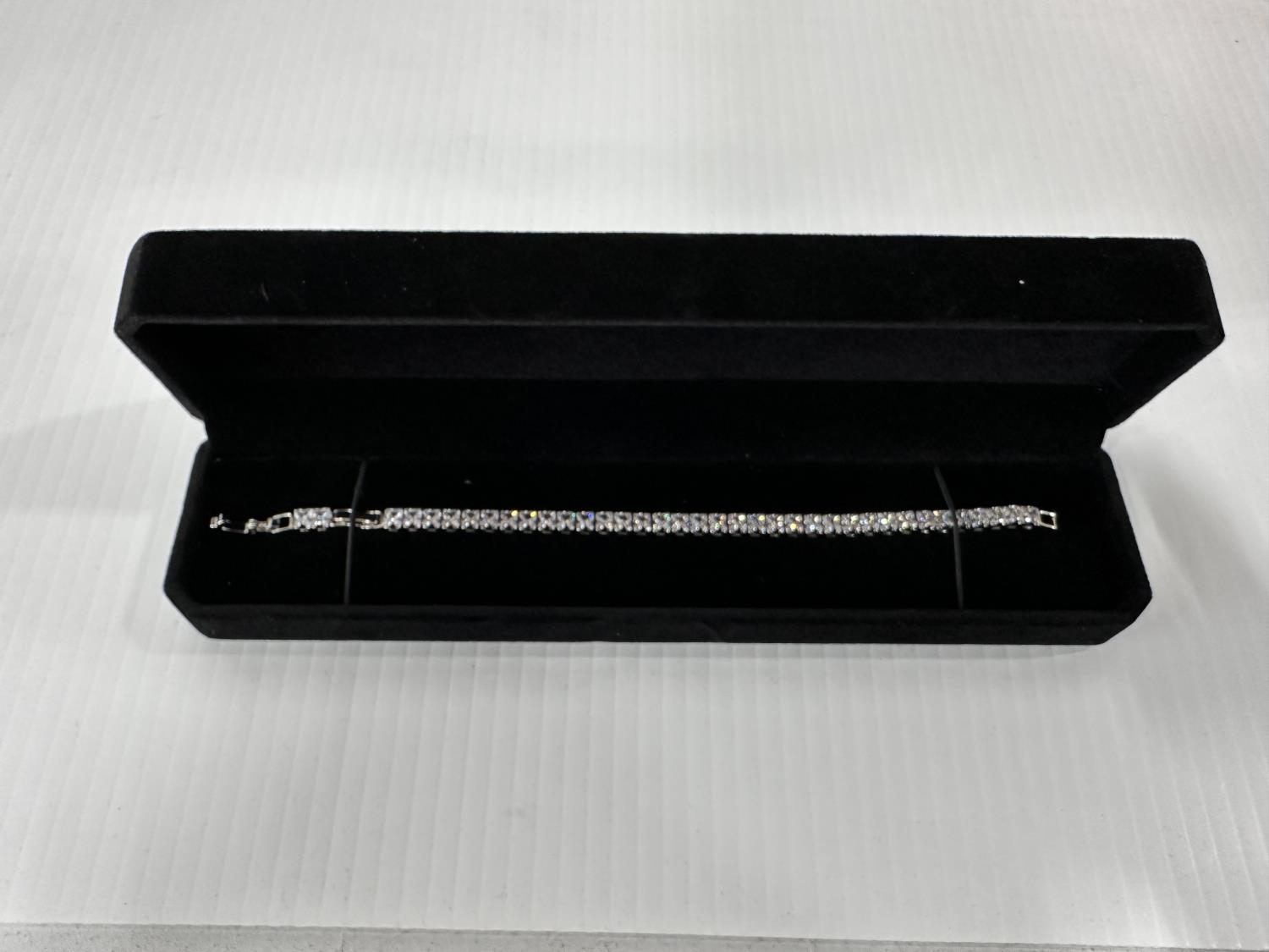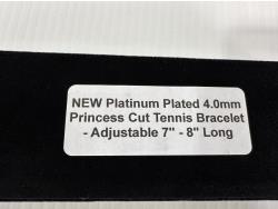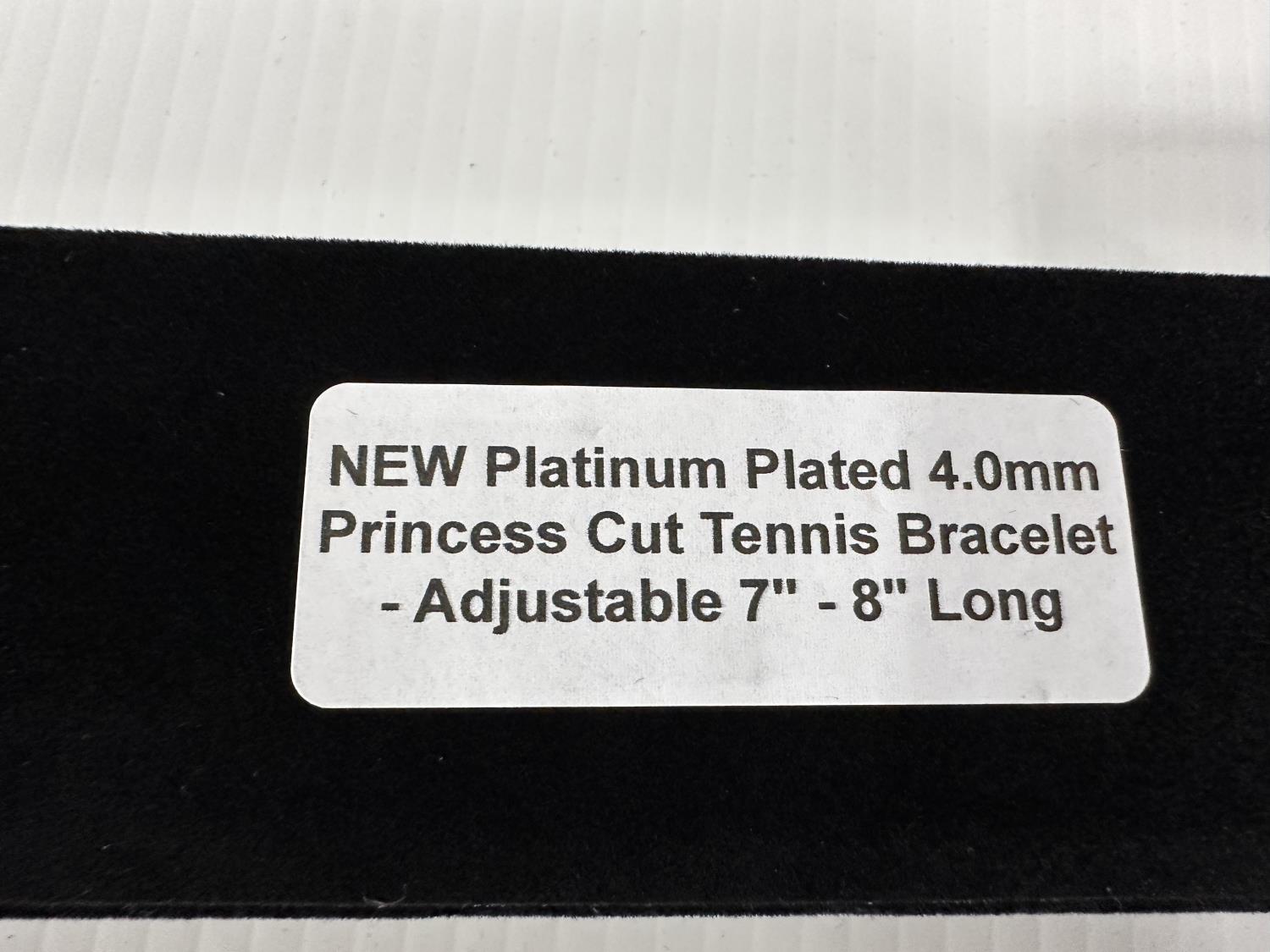 5024 Smartlife Platinum Plated 4.0 mm Princess Cut Tennis Bracelet (Unused)