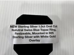 5010 Smartlife Sterling Silver 1.0 Ct Oval Cut Natural Swiss Blue Topaz Ring (Unused)