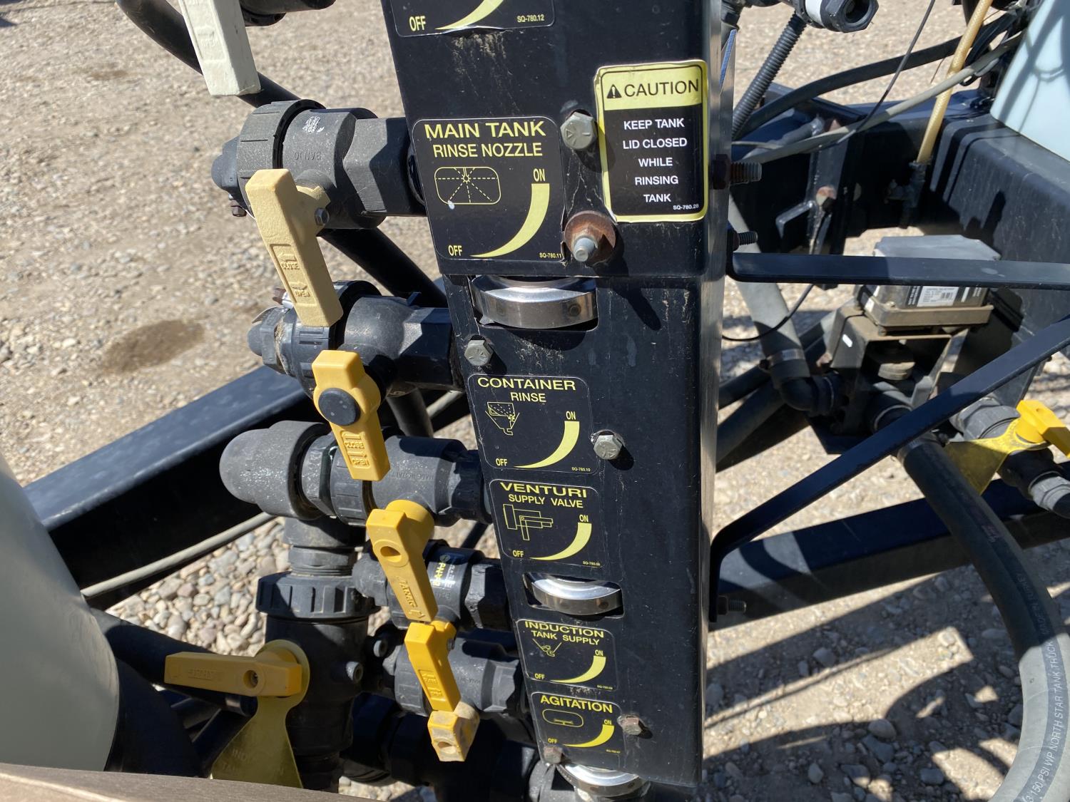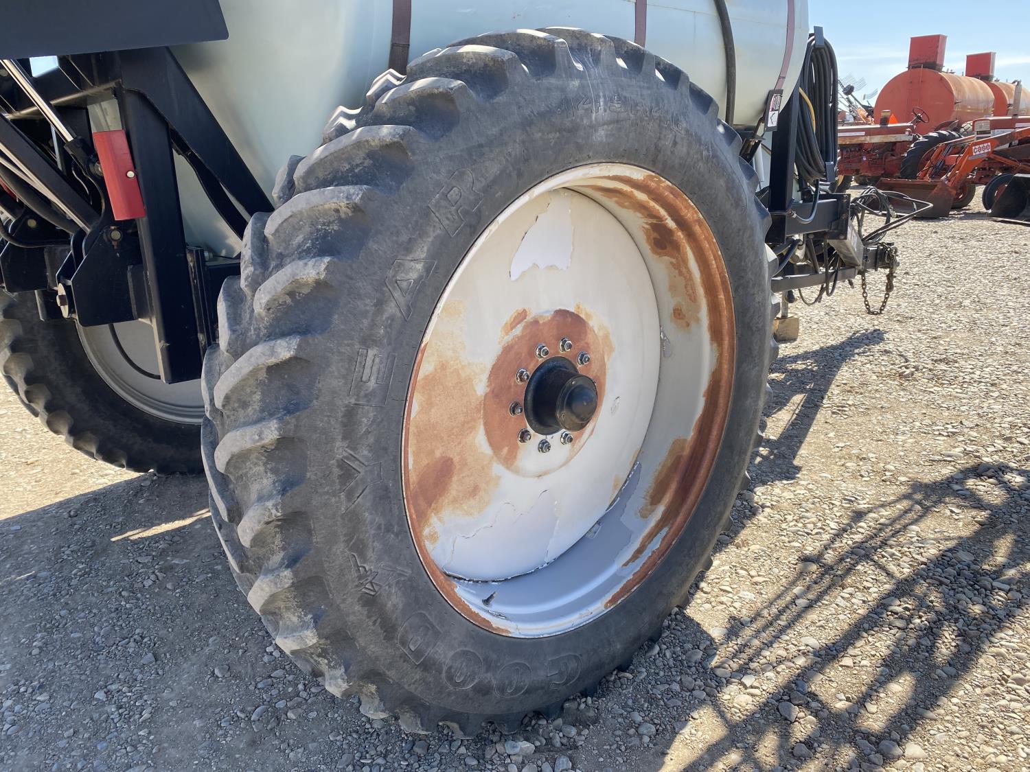 1500 US gallon poly tank, 3 nozzle bodies, 2 sectional controls, hydraulic drive, Flexicoil monitor, chemical mix tank, rinse tank, 14.9R46 tires