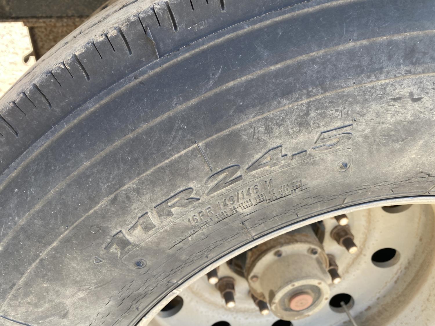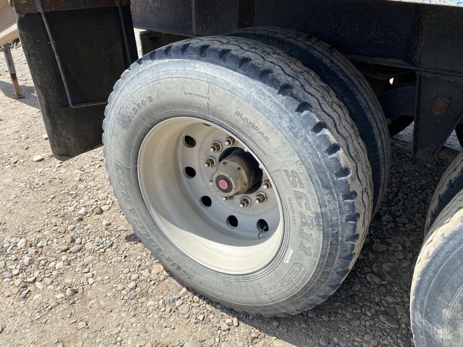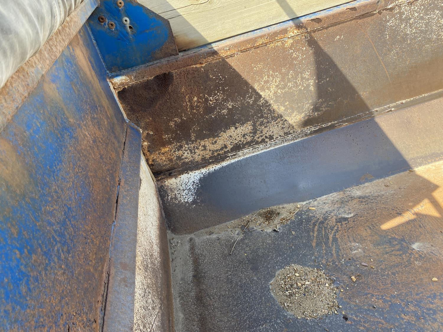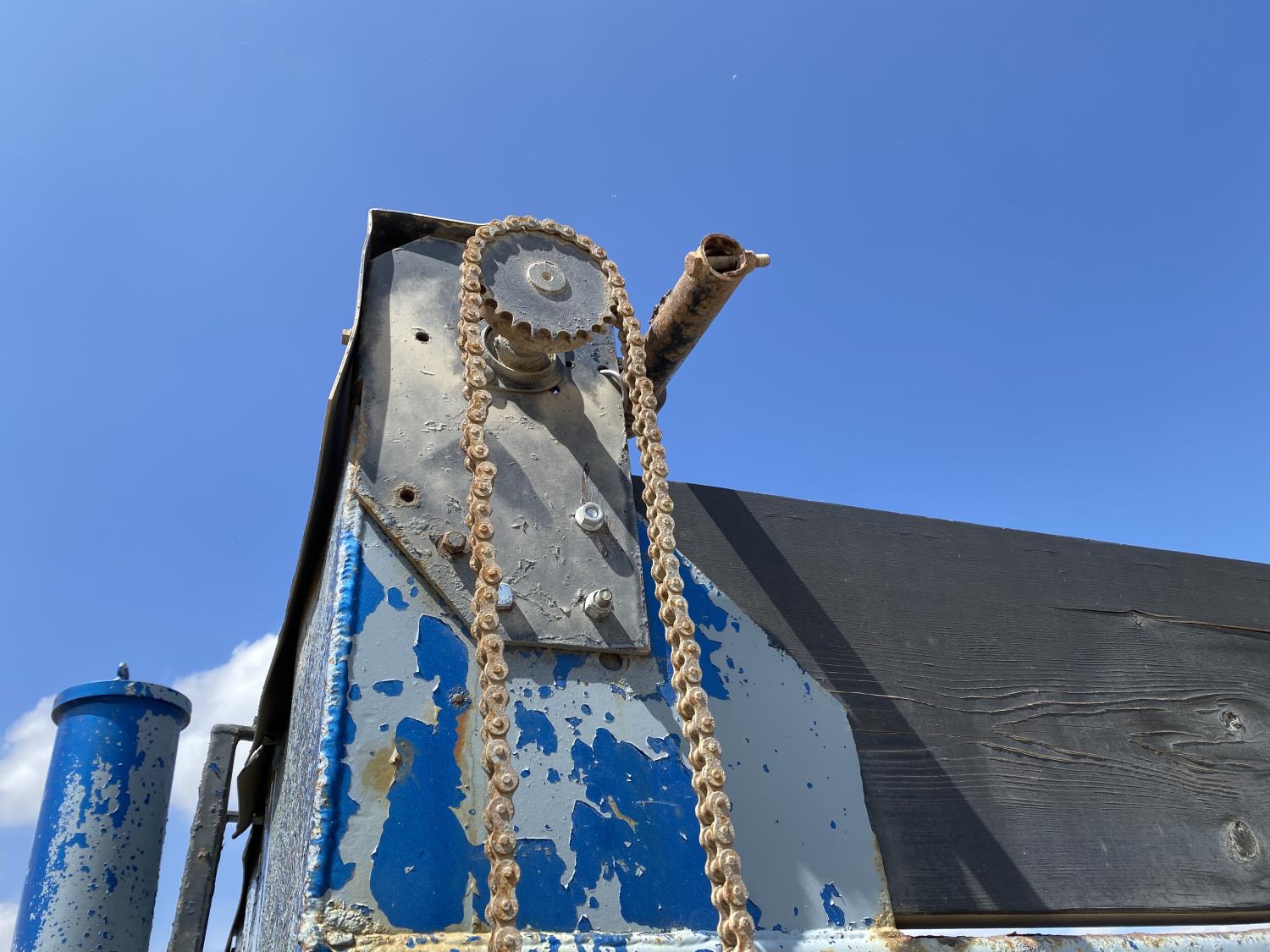 Pintle hitch, 7 ft 6 inch box width, 42 inch side wall height, roll tarp, spreader chains, air tail gate, air brakes, spring suspension, all aluminum wheels, 11R24.5 tires