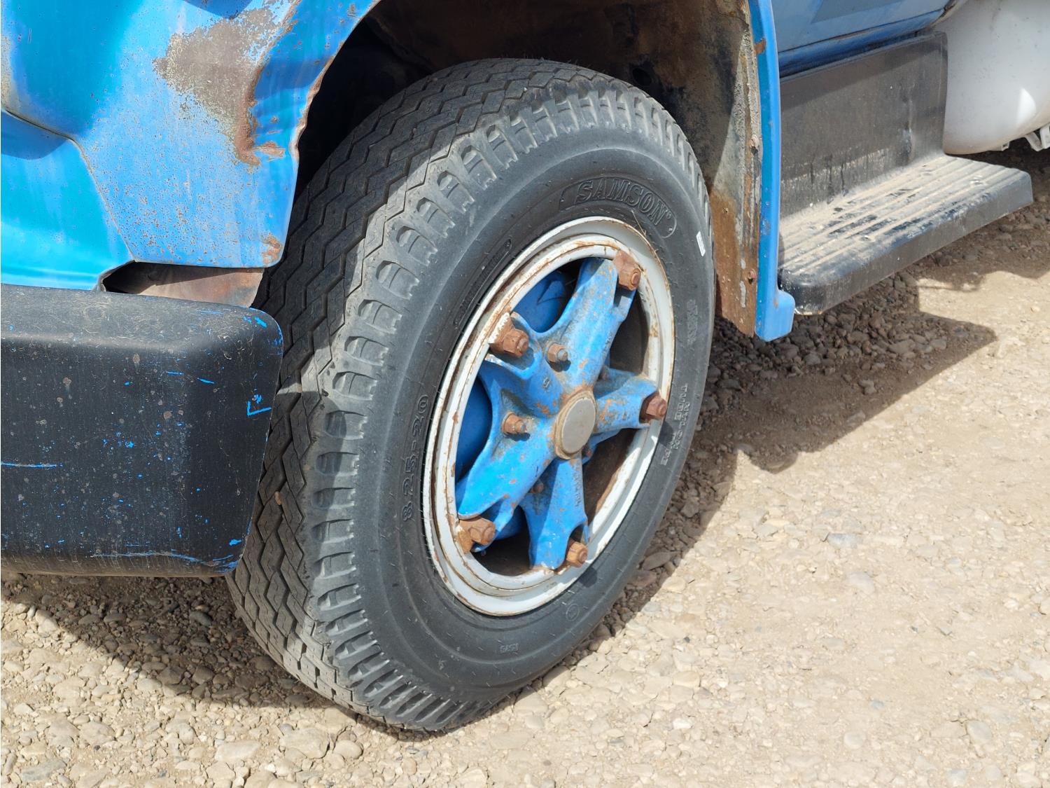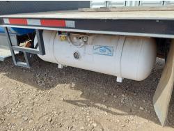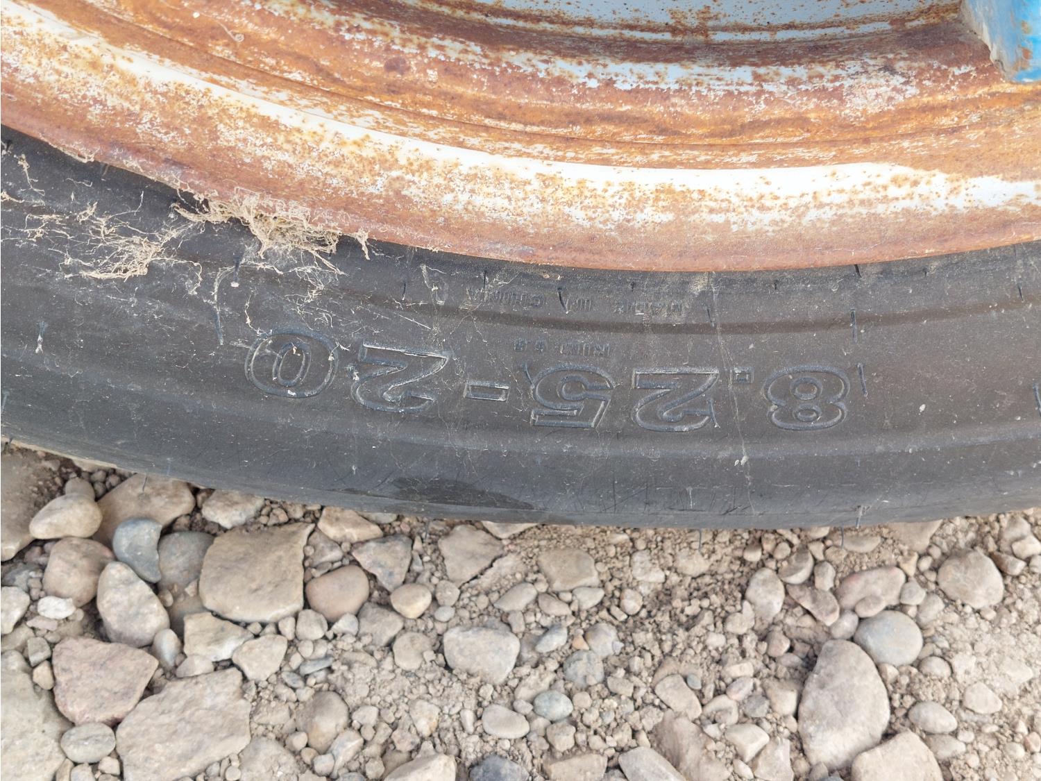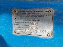 366 cu in V8 propane engine, 5 speed manual transmission, radio, steel headache rack, steel tool boxes, 8 ft x 11 ft 10 inch deck, spring suspension, 7,000 lb front axle, 15,000 lb rear axles, 166 inch WB, after market trailer brake, 8.25-20 tires