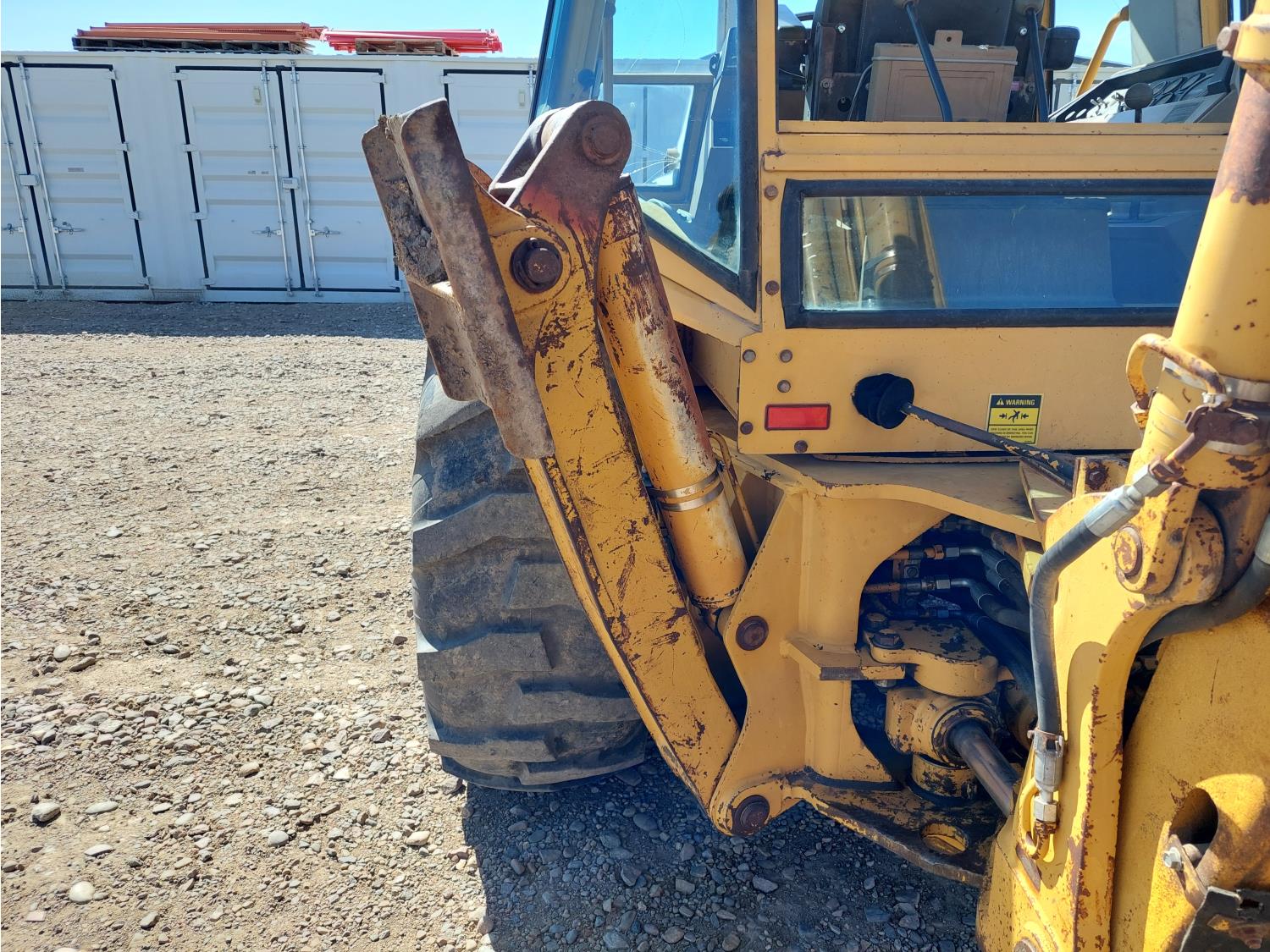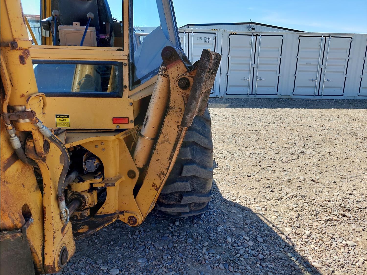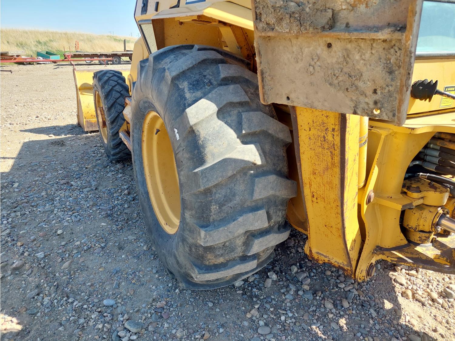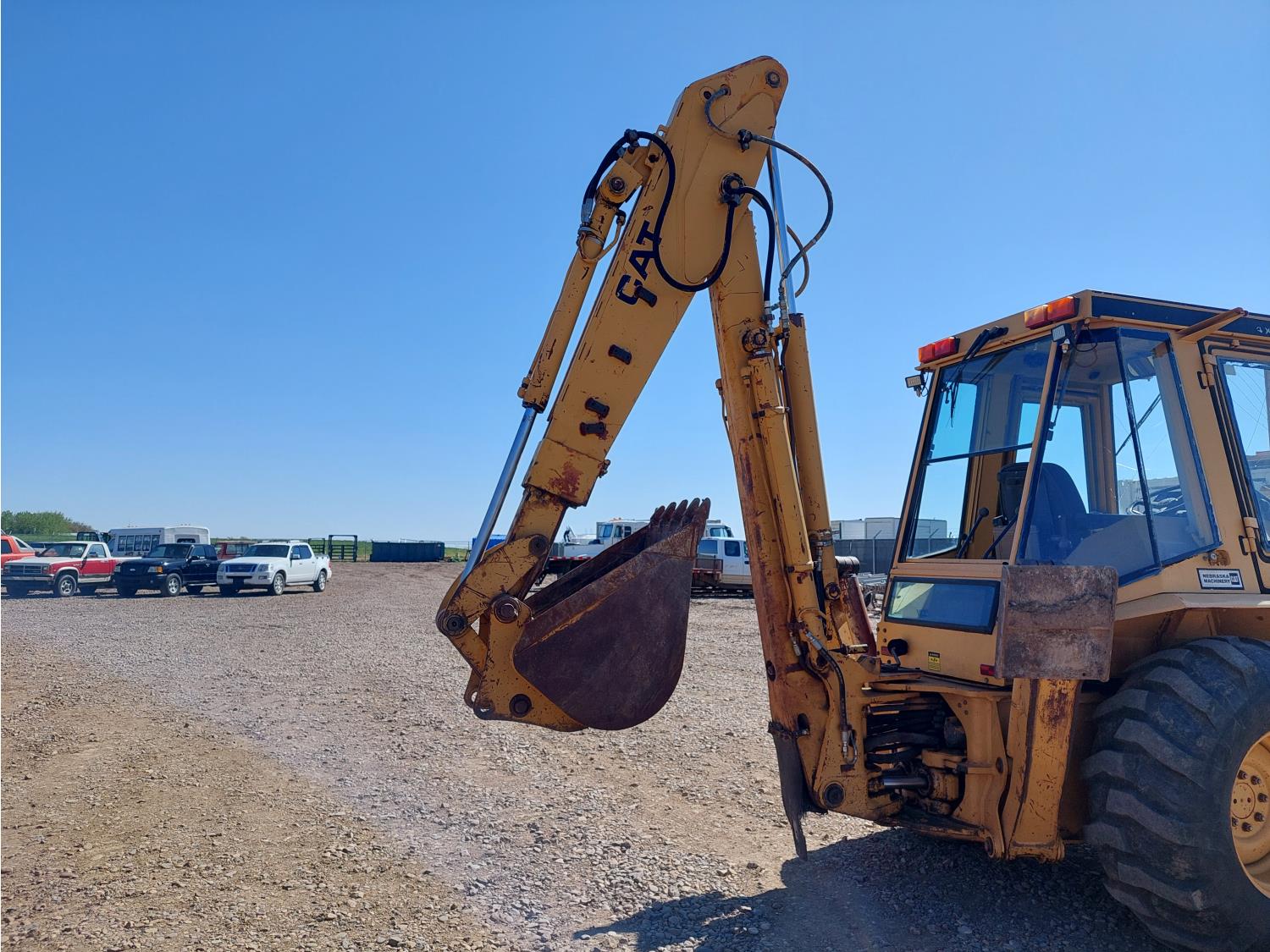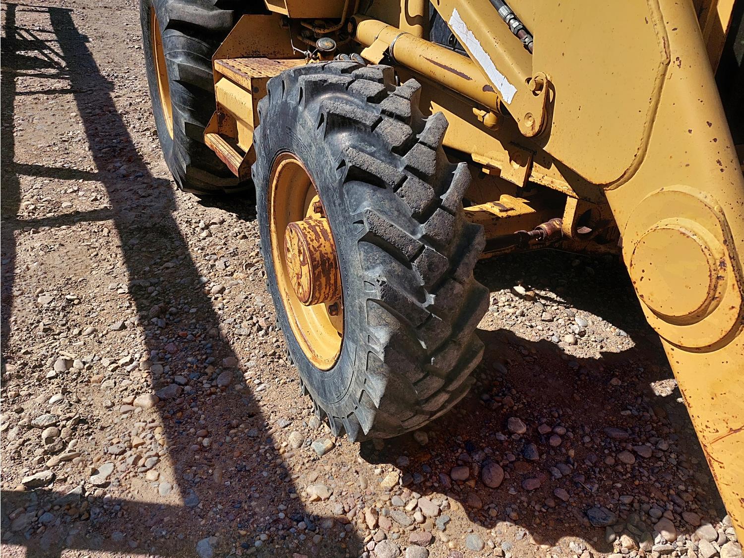 Enclosed cab, air ride seat, 87 inch smooth loader bucket, 23 inch dig backhoe bucket, outriggers, extendable stick, 10.5-20 front tires, 19.5L-24 rear tires