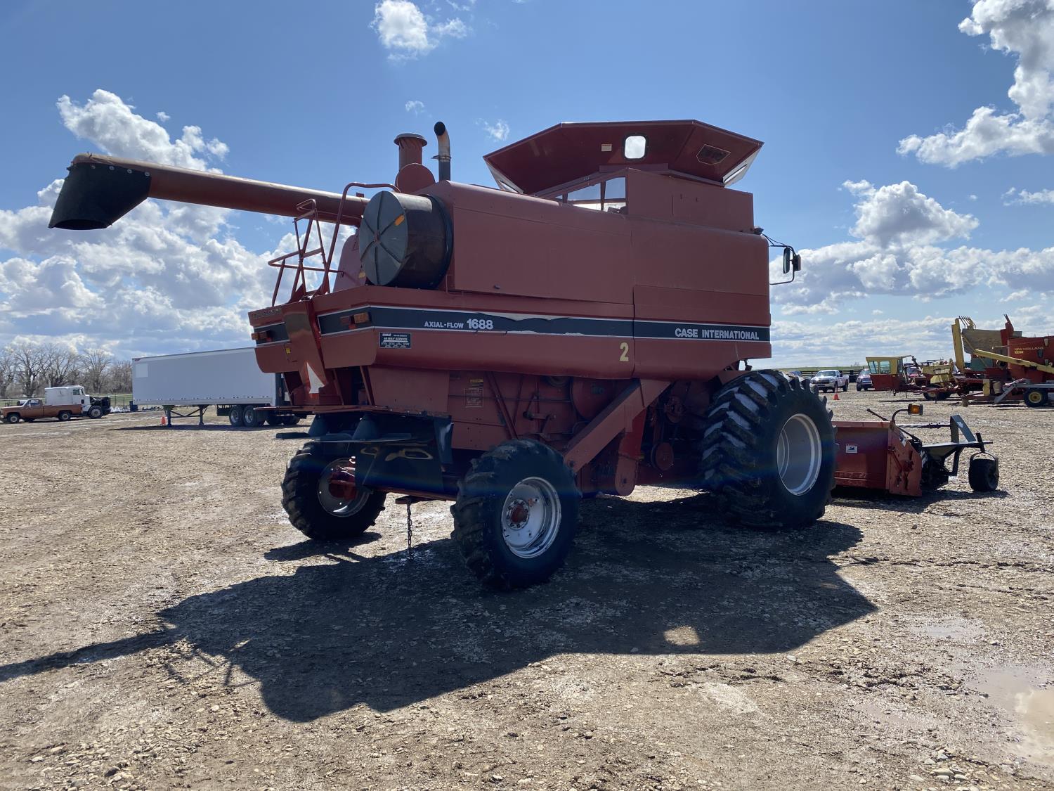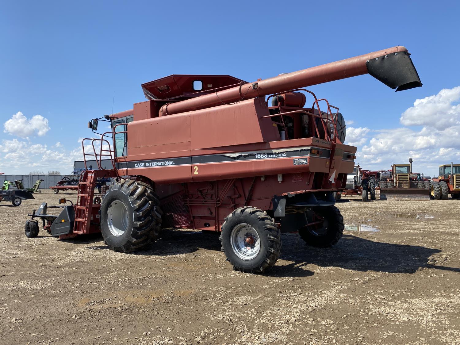 1998 Case 1015 pick-up header, Victory Super8 pickup, variable speed reel, rock trap, chaff spreader, chopper, grain tank extensions, 17 ft auger, upgraded stereo, buddy seat, 30.5L-32 front tires, 14.9-24 rear tires