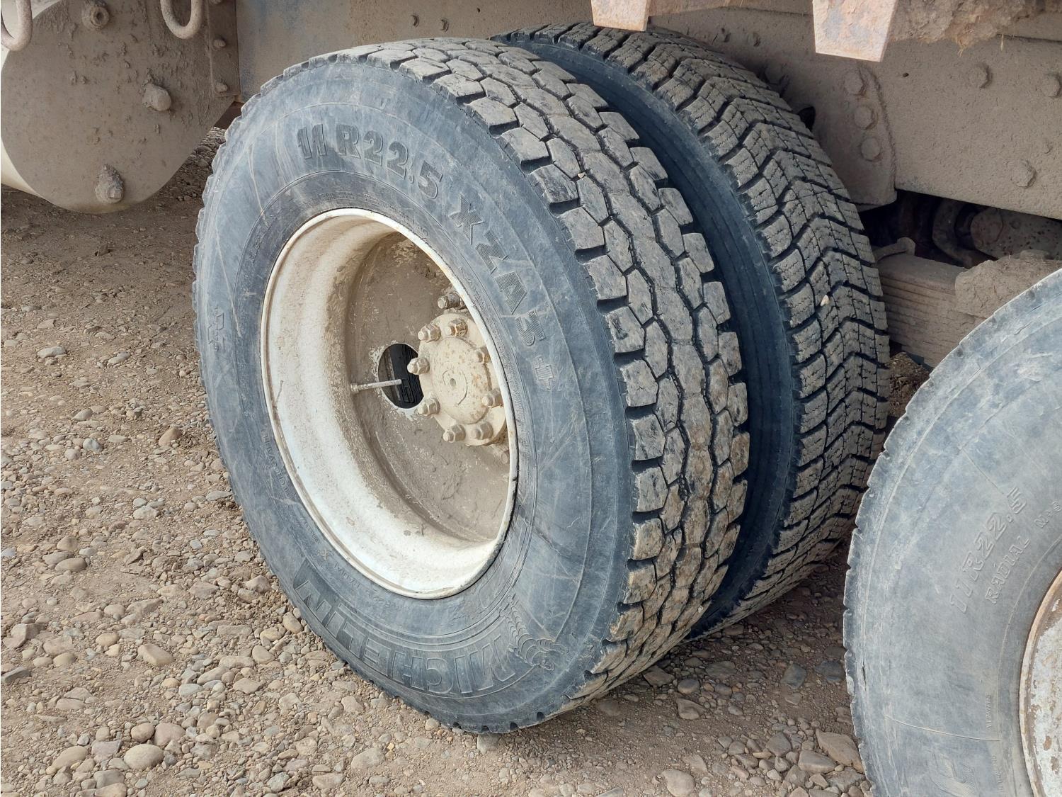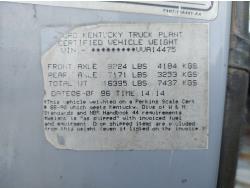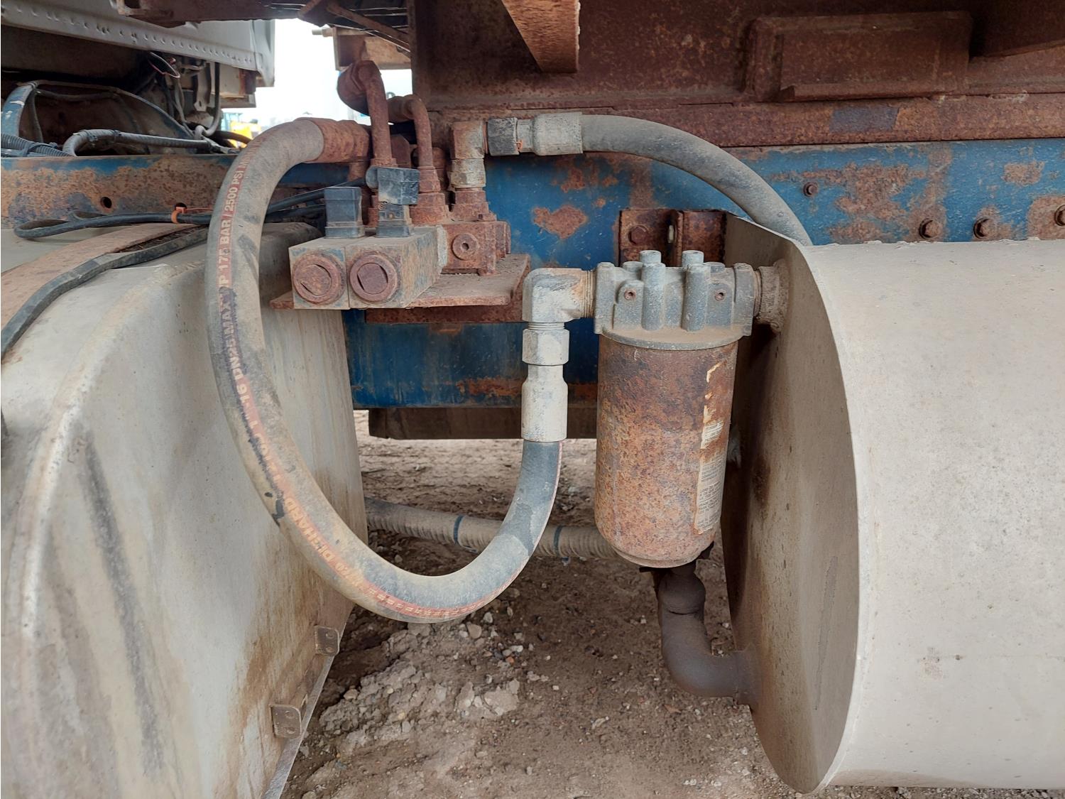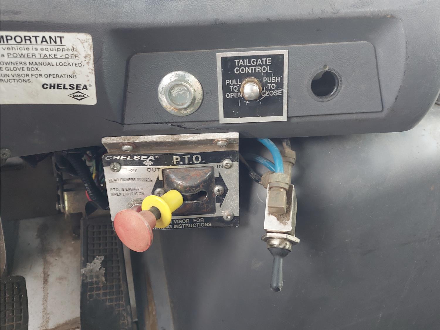 Cummins M11 10.8 L 6 cylinder diesel engine, engine brake, engine block heater, Eaton Fuller 10 speed Roadranger transmission, A/C, cruise control, air ride seats, spring suspension, Chelsea PTO, differential lock, double chain rear delivery, 266 inch L x 99 inch W x 92 inch T box,16,000 lb front axle, 40,000 lb rear axles, 216 inch WB, 315/80R22.5 front tires, 11R22.5 rear tires