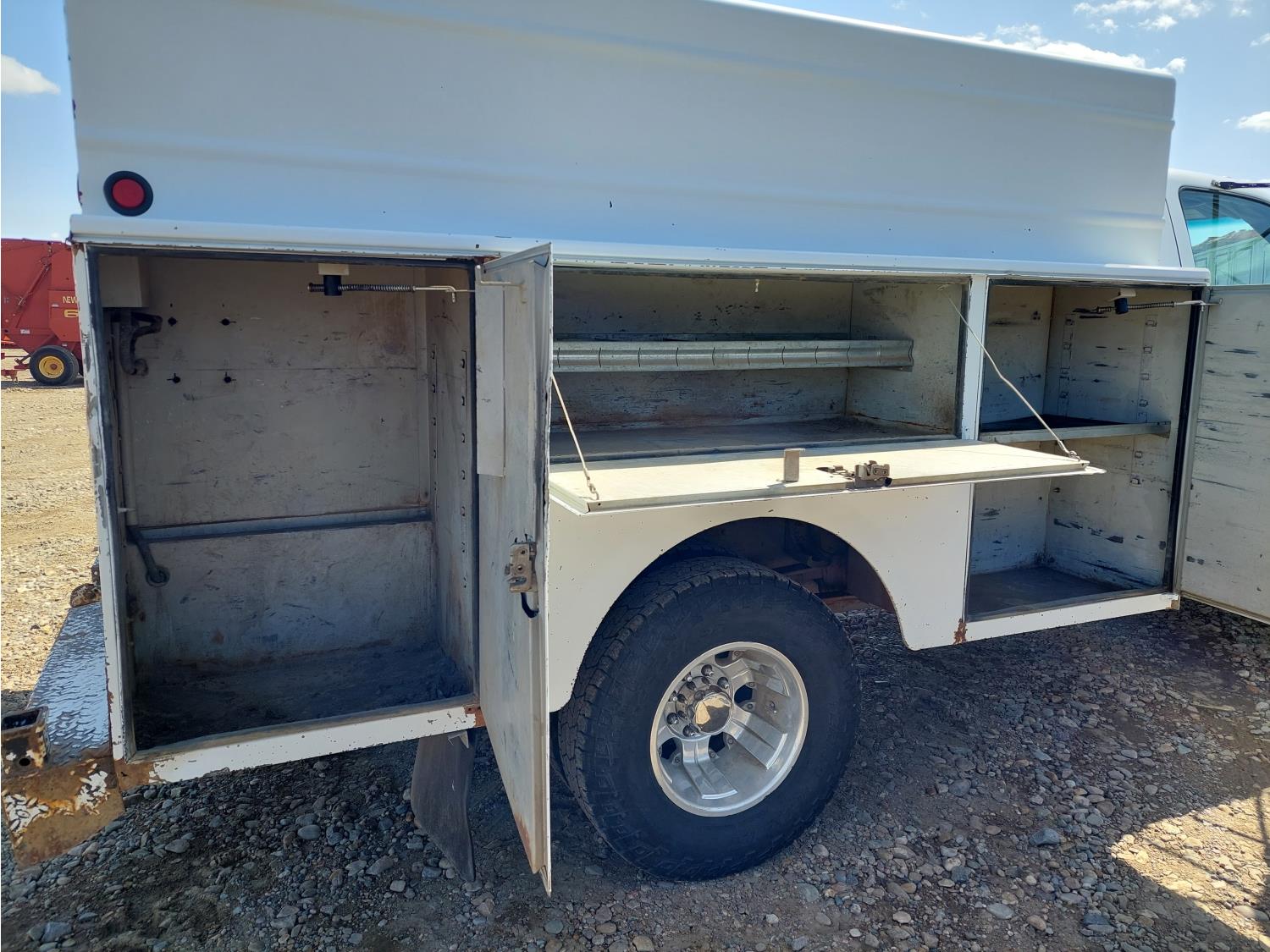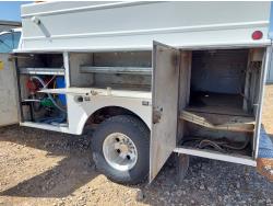 6.6 L, V8, automatic transmission, A/C, 108 inch L x 90 inch Stahl mechanics box, 80 gallon diesel tank, 15 GPM Fill-Rite fuel pump, Glitsch 25 gallon LP gas tank, pintle hitch, after market trailer brake, 235/85R16 tires