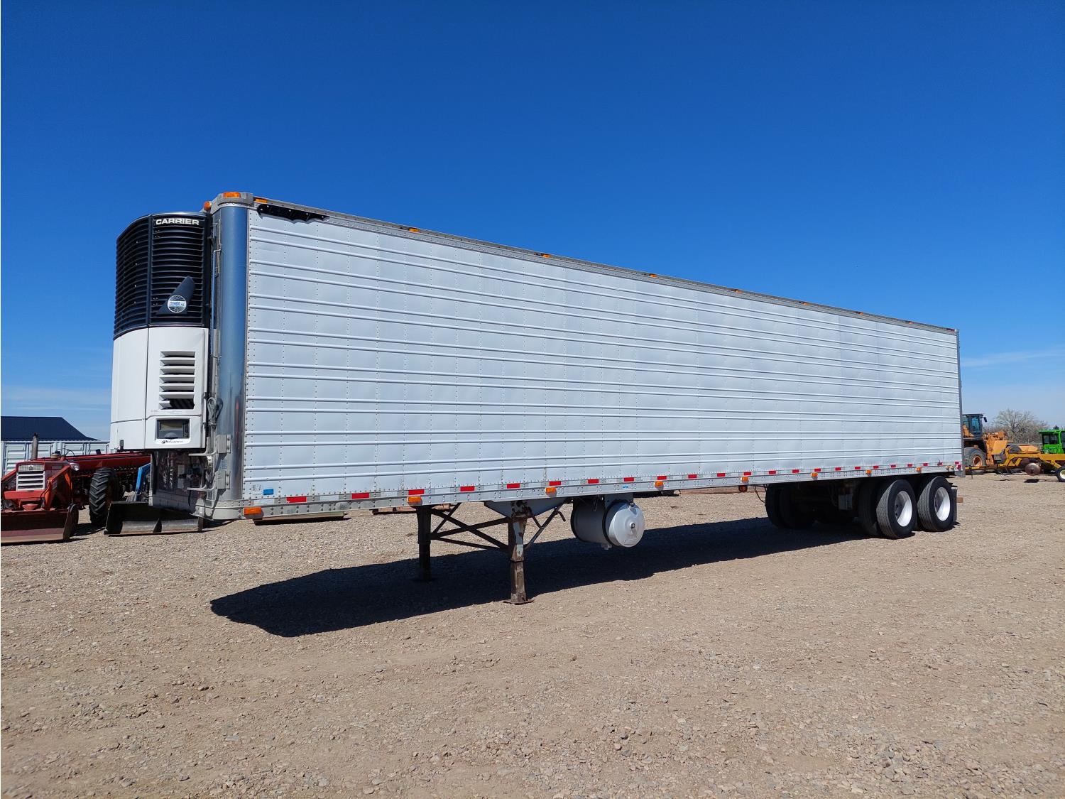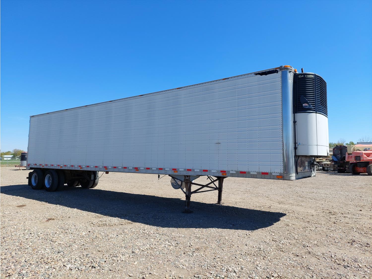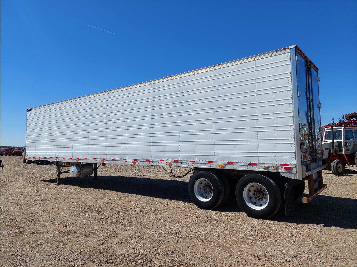 8 ft 6 inch van width, 112 inch height, Carrier reefer, rear swing doors, 2 speed landing gear, air scales, air brakes, air ride suspension, 20,000 lb axles, all aluminum wheels, 11R24.5 tires
