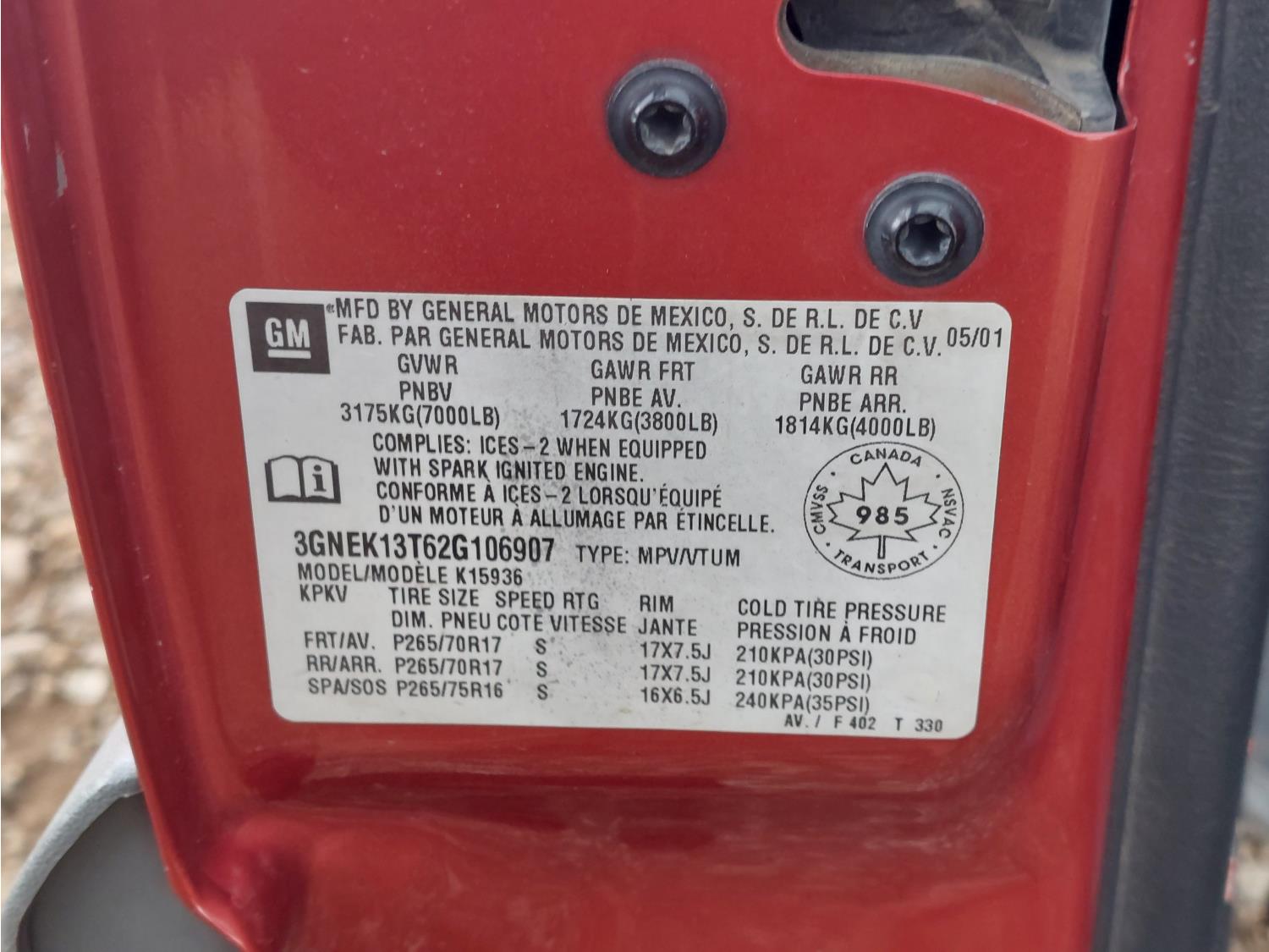 - 3GNEK13T62G106907