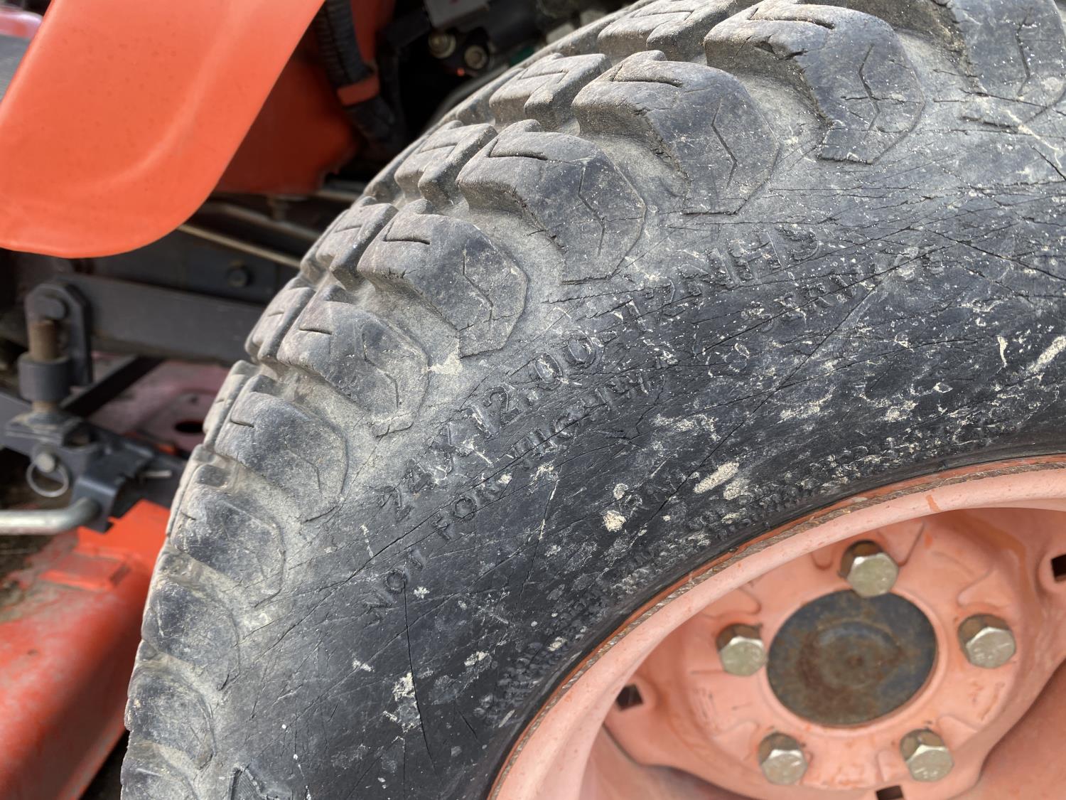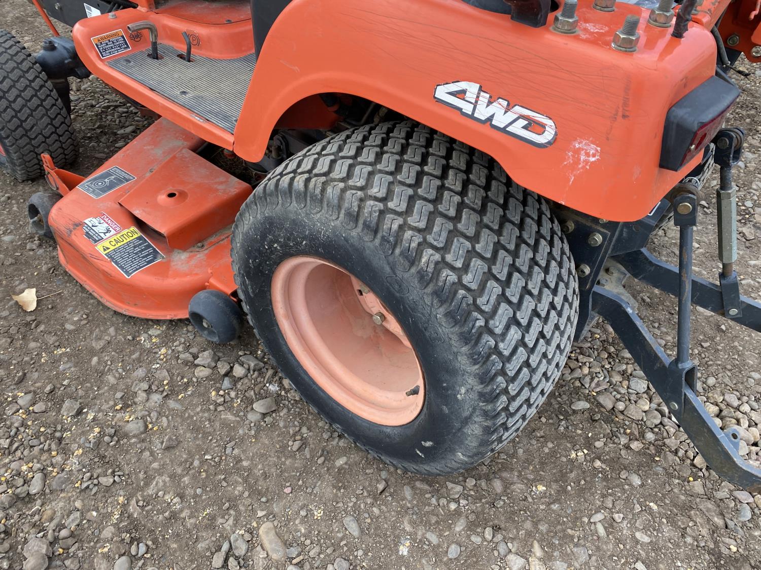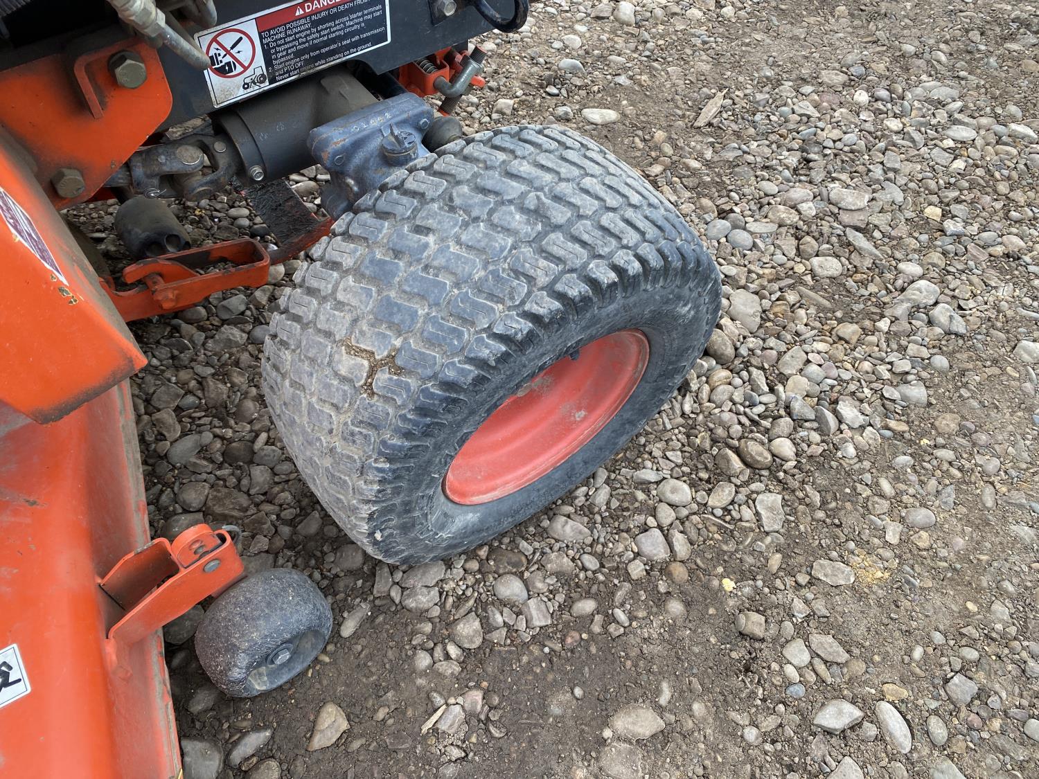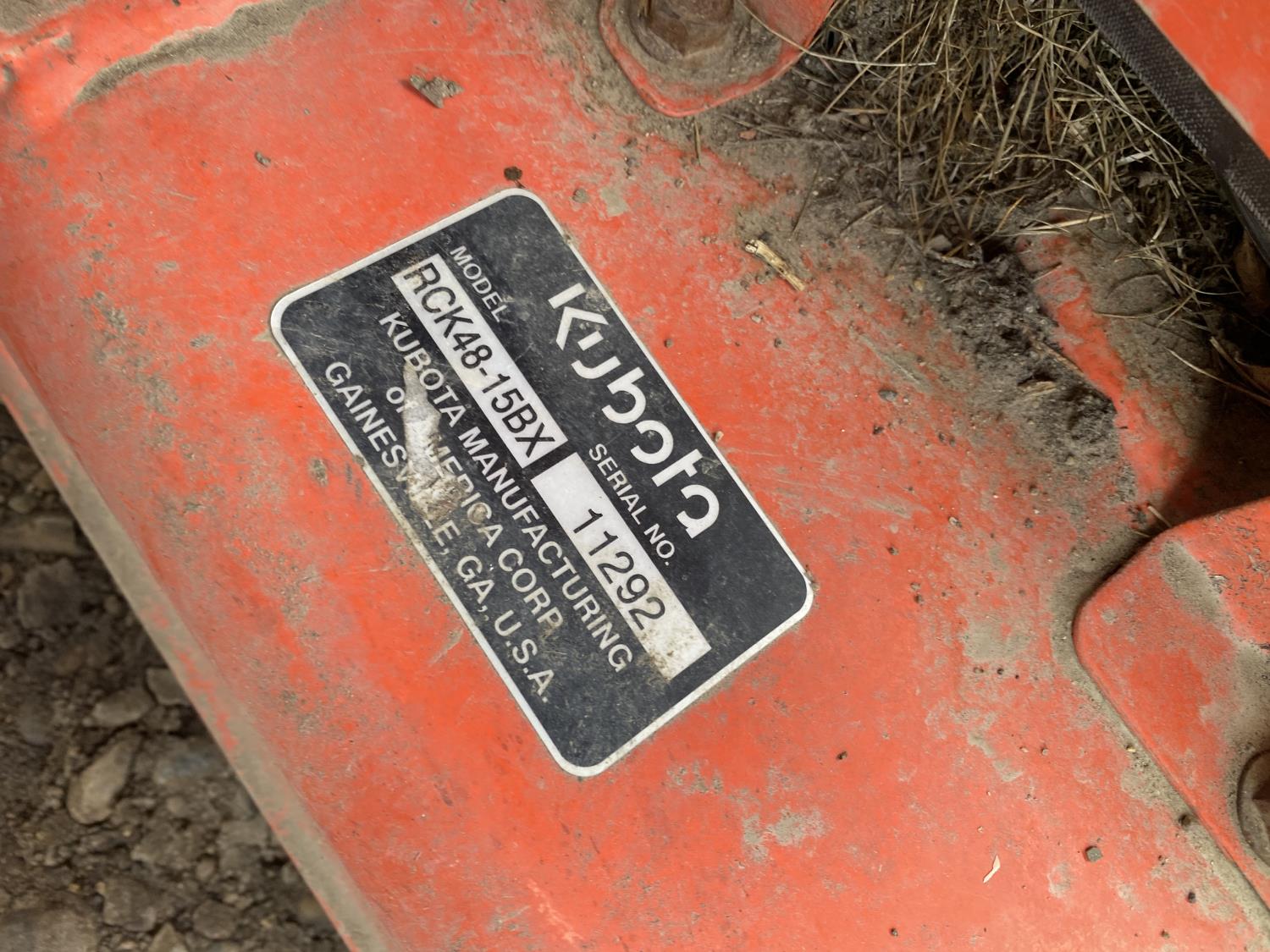 Kubota 0.6L 2-cylinder diesel engine, RCK48-15BX mower, 3 PT hitch, 540 PTO, 6 front weights, front loader hydraulics, 16x7.50-8 front tires, 24x12-12 rear tires