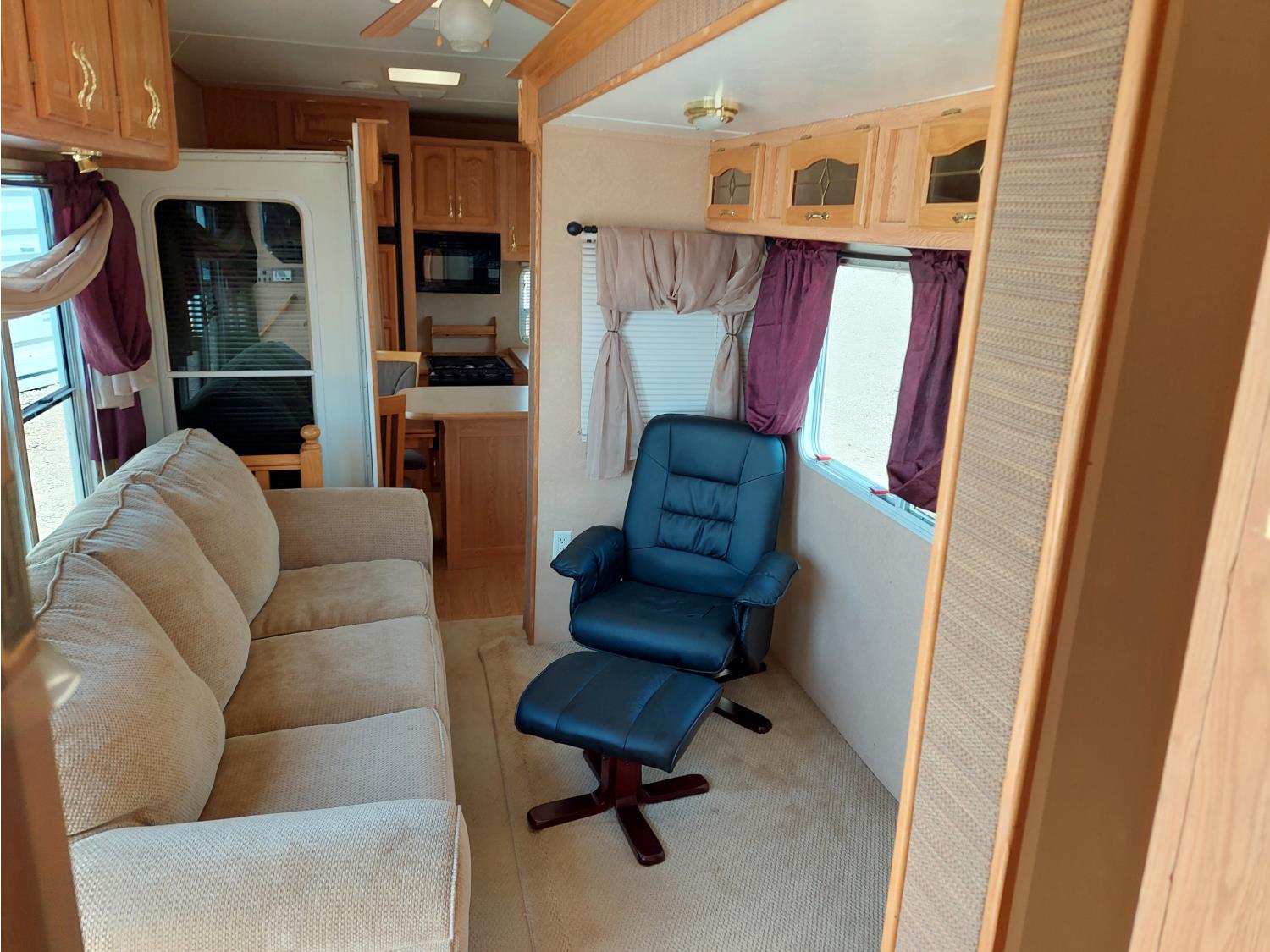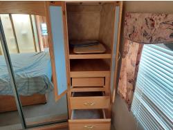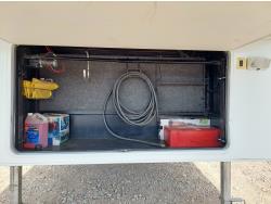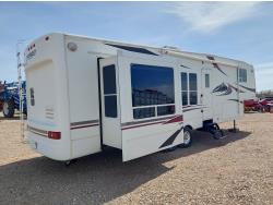 Sleeps 4, stove, fridge, microwave, master bedroom, A/C, outdoor shower, 3 slides, manual awning, power levelling jacks, spring suspension, electric brakes, 235/80R18 tires