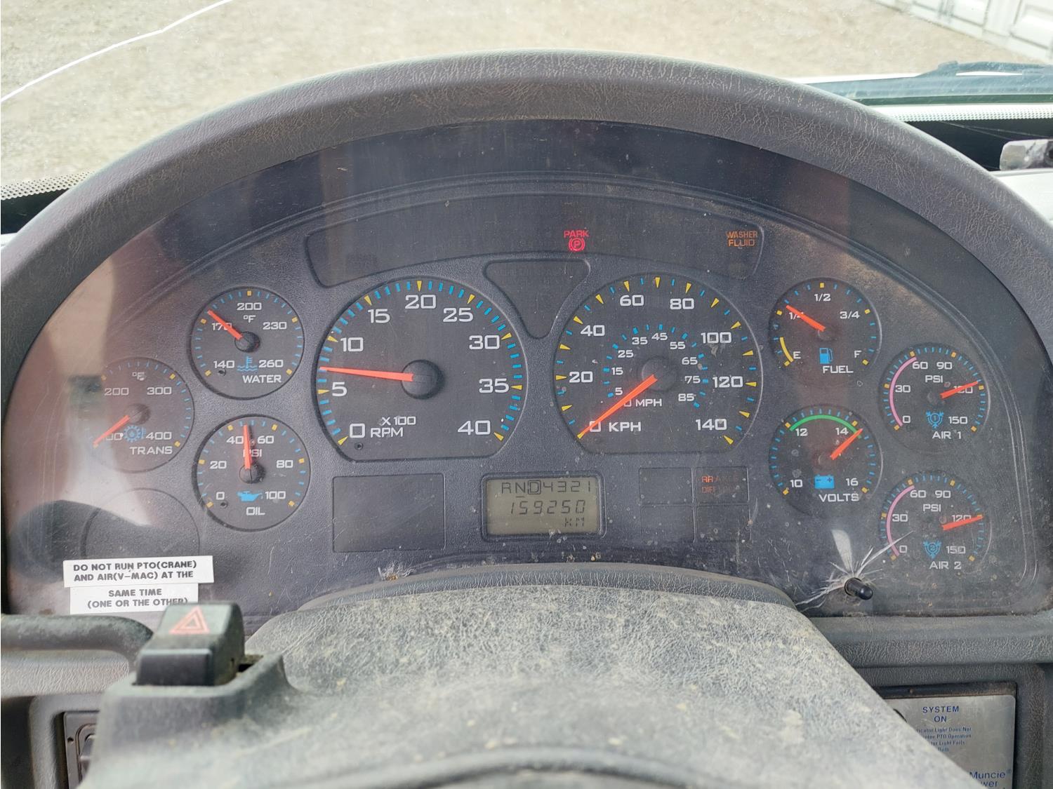 Navistar DT466 7.6 L 6 cylinder engine, engine block heater, Allison automatic transmission, cruise control, air ride driver seat, air ride suspension, 12,000 lb front axle, 27,000 lb rear axles, diff lock, 228 inch WB, 211 inch frame from back of cab to rear end, 11R22.5 tires
