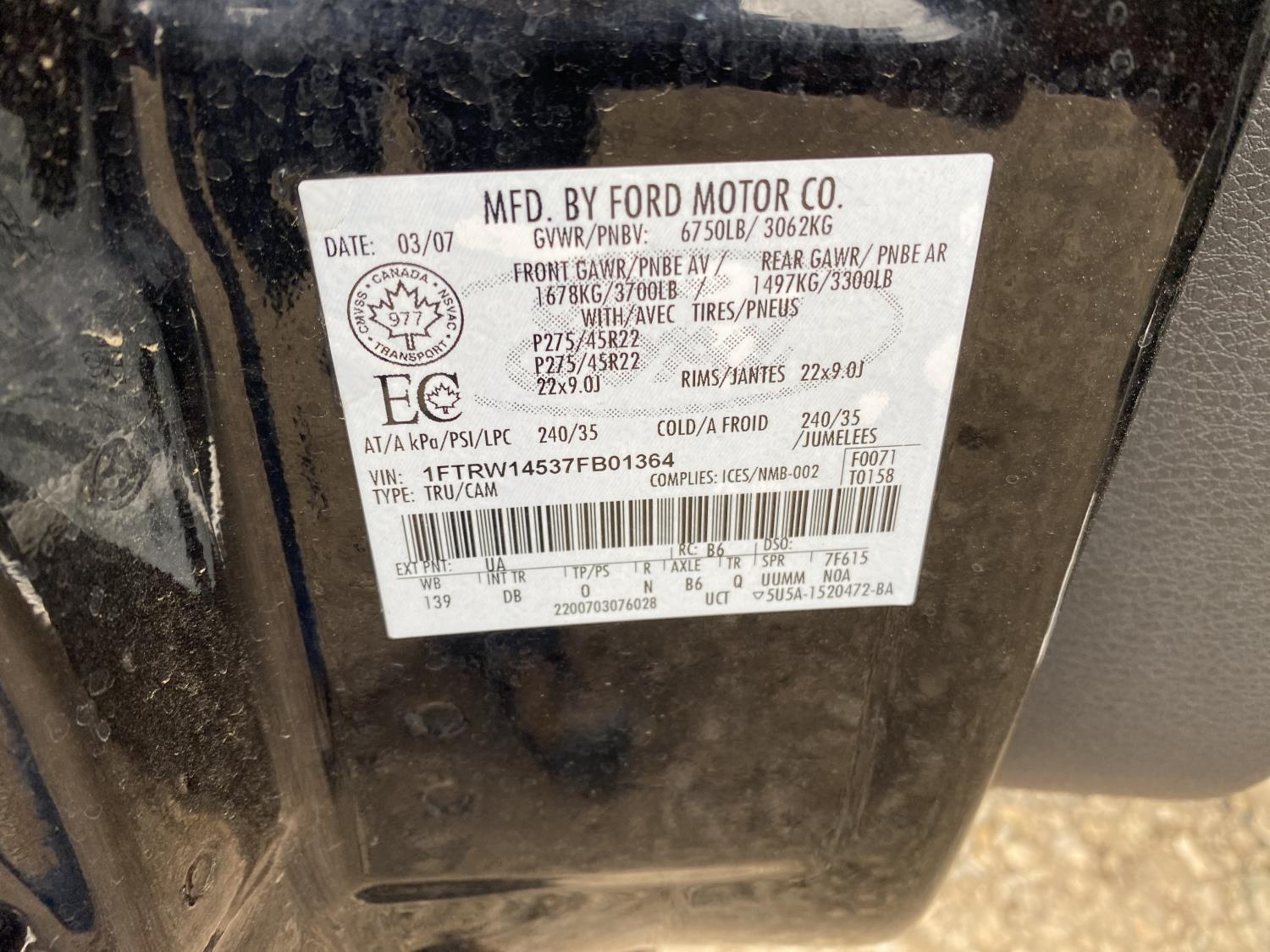 - 1FTRW14537FB01364