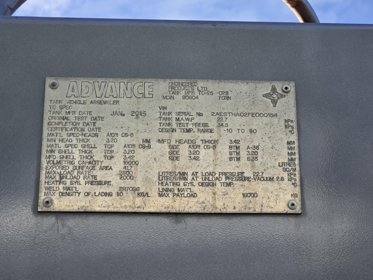 Mercedes 12.8 6 cylinder 380 HP engine, Allison automatic transmission, A/C, cruise control, air ride driver seat, radio, PTO pump, Advance 16000 liter steel tank, rear spray bar, Airliner air ride suspension, 3 way diff locks, 220 inch WB, 385/65R22.5 front tires, 11R22.5 rear tires