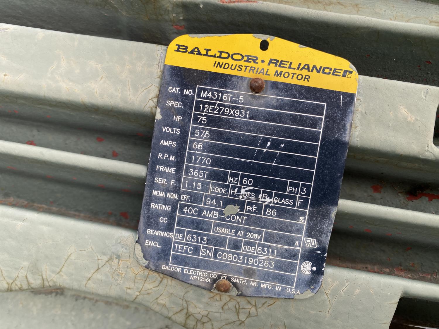 Baldor M4316T-5 75 HP, 575 V, 3 PH electric motor