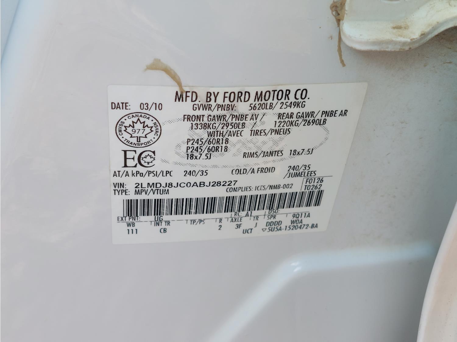 157 2010 Lincoln MKX AWD Sport Utility Vehicle