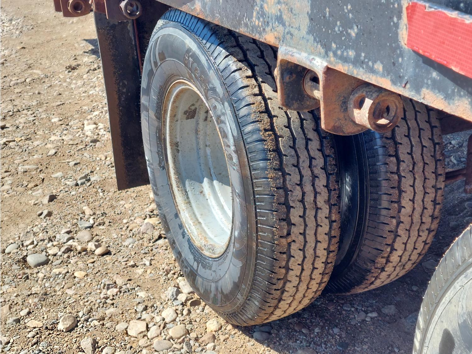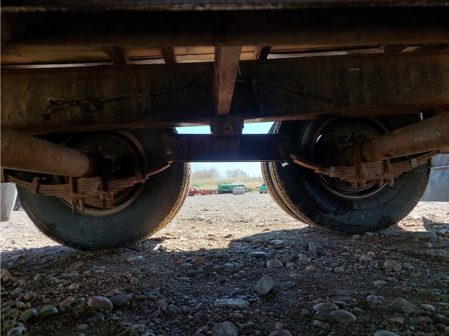 101 inch wide deck, 72 inch beaver tails, wood deck, flip over ramps, electric brakes, spring suspension, rub rails, stake pockets, steel tool box, pintle hitch, 10000 lb axles, 235/85R16 tires