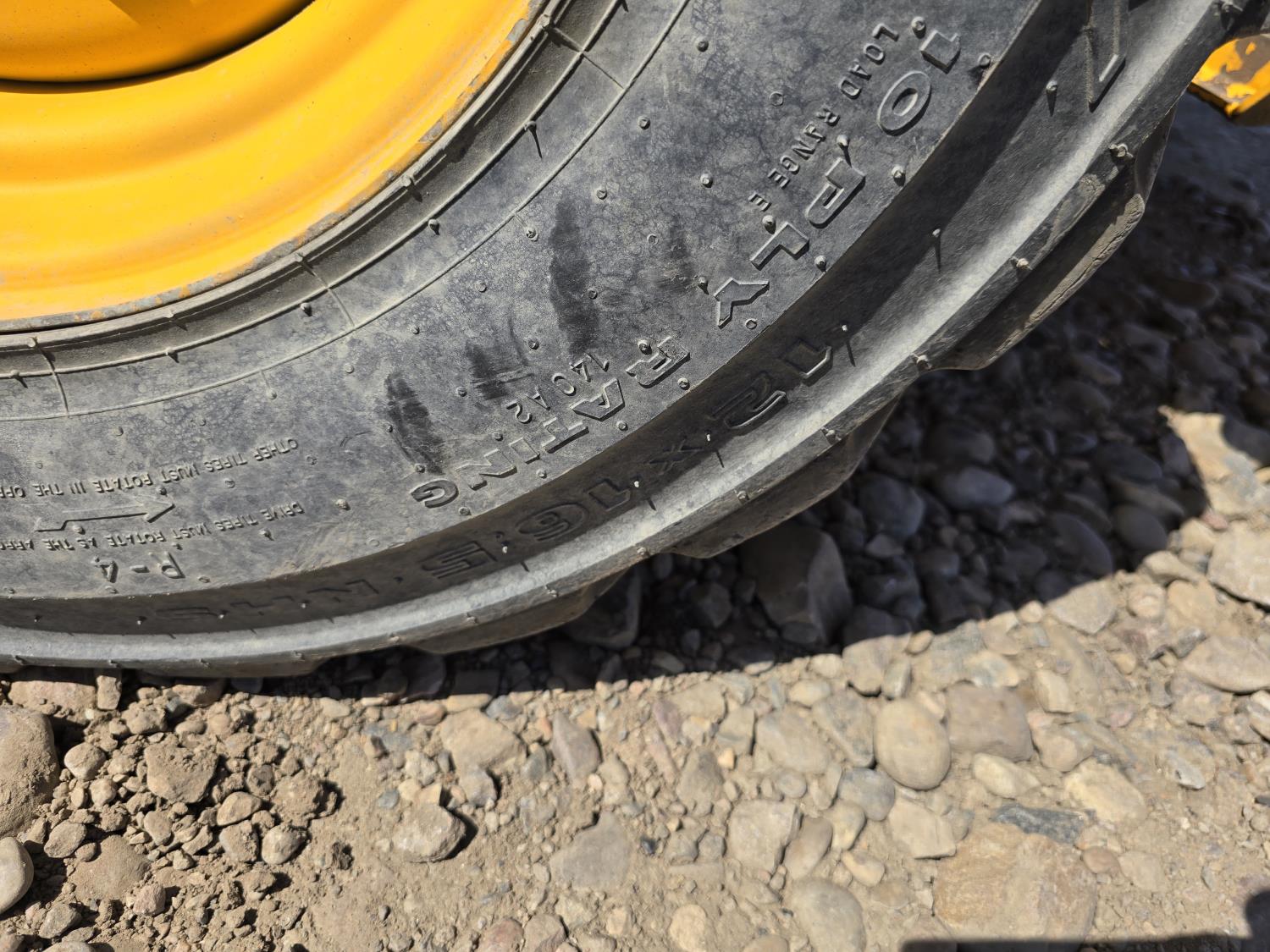 Enclosed cab, A/C, control pattern change, pilot controls, diesel engine, electric circulating block heater, 2 speed transmission, hydraulic Q/C coupler, 1 auxiliary hydraulics, 12X16.5 tires