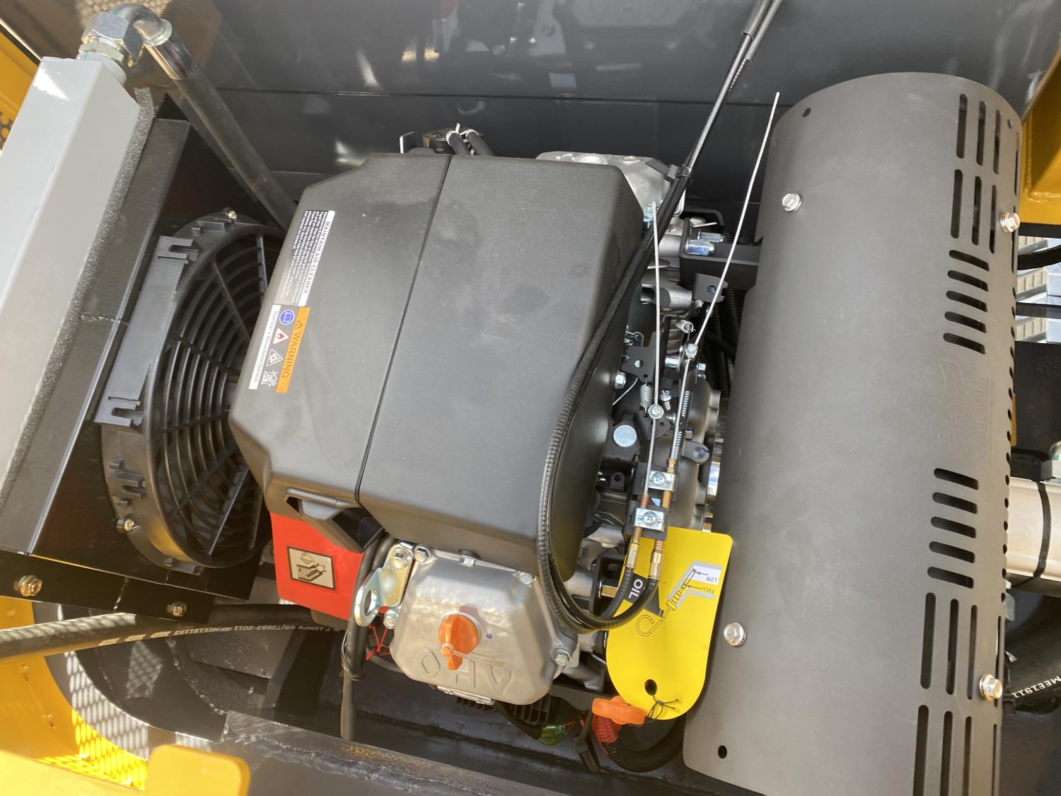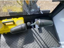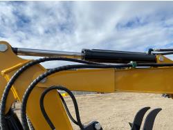 Enclosed cab, 29 HP gas engine, 17 inch dig bucket, manual coupler, hydraulic thumb, 2 Ft 9 inch stick, swing boom, 51 inch backfill blade, 9 inch rubber tracks