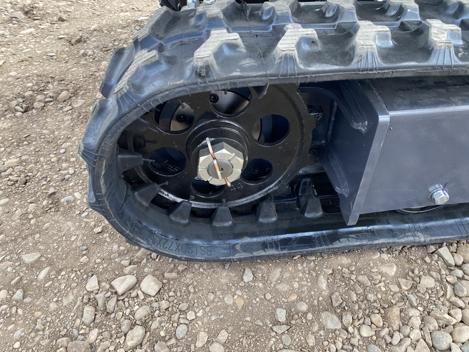 Open station, 23 HP gas engine, 17 inch dig bucket, manual coupler, hydraulic thumb, 2 Ft 4 inch stick, 43 inch backfill blade, 7 inch rubber tracks