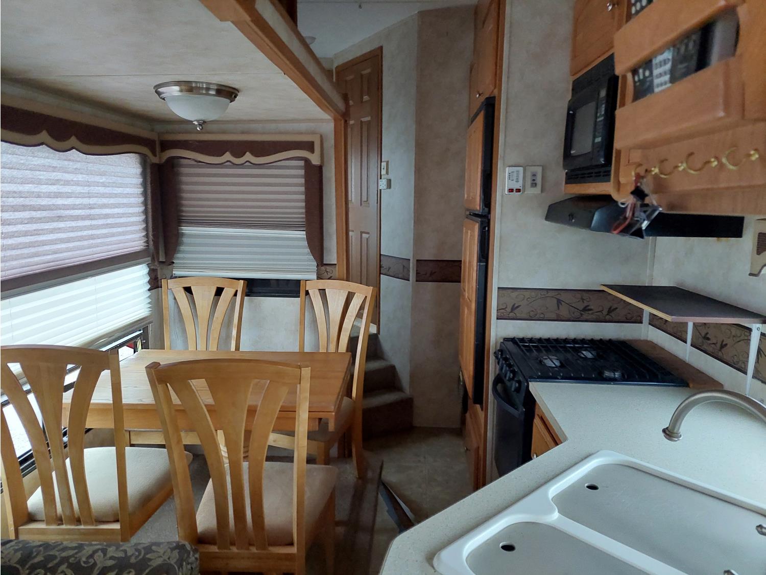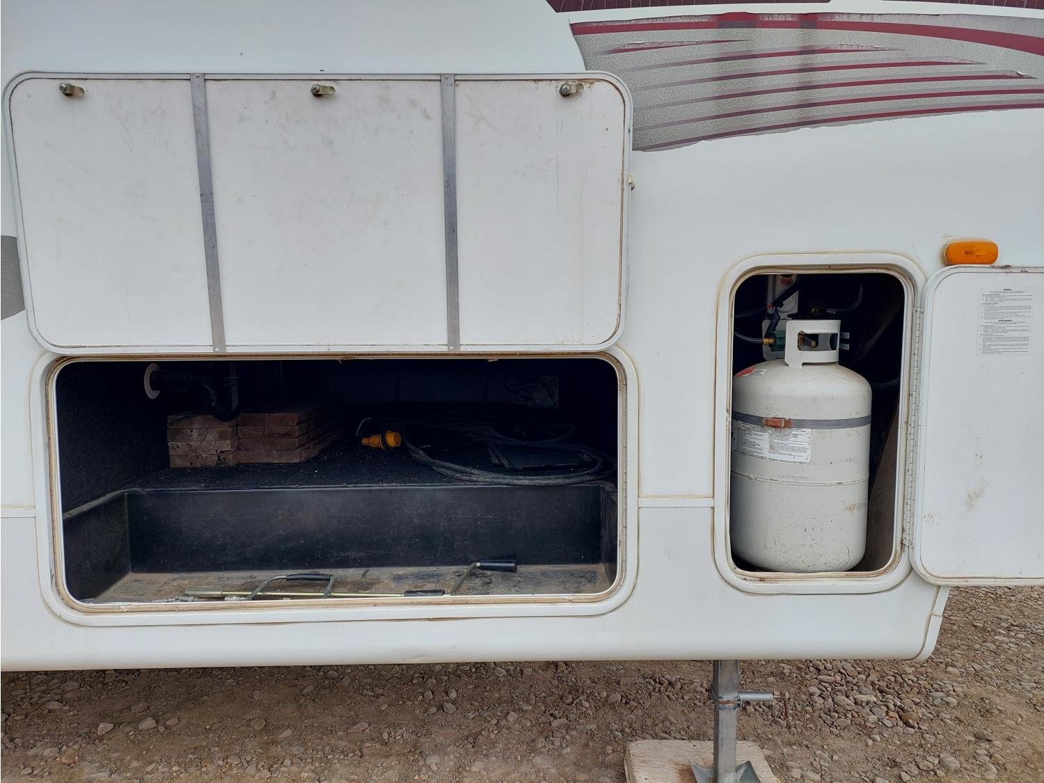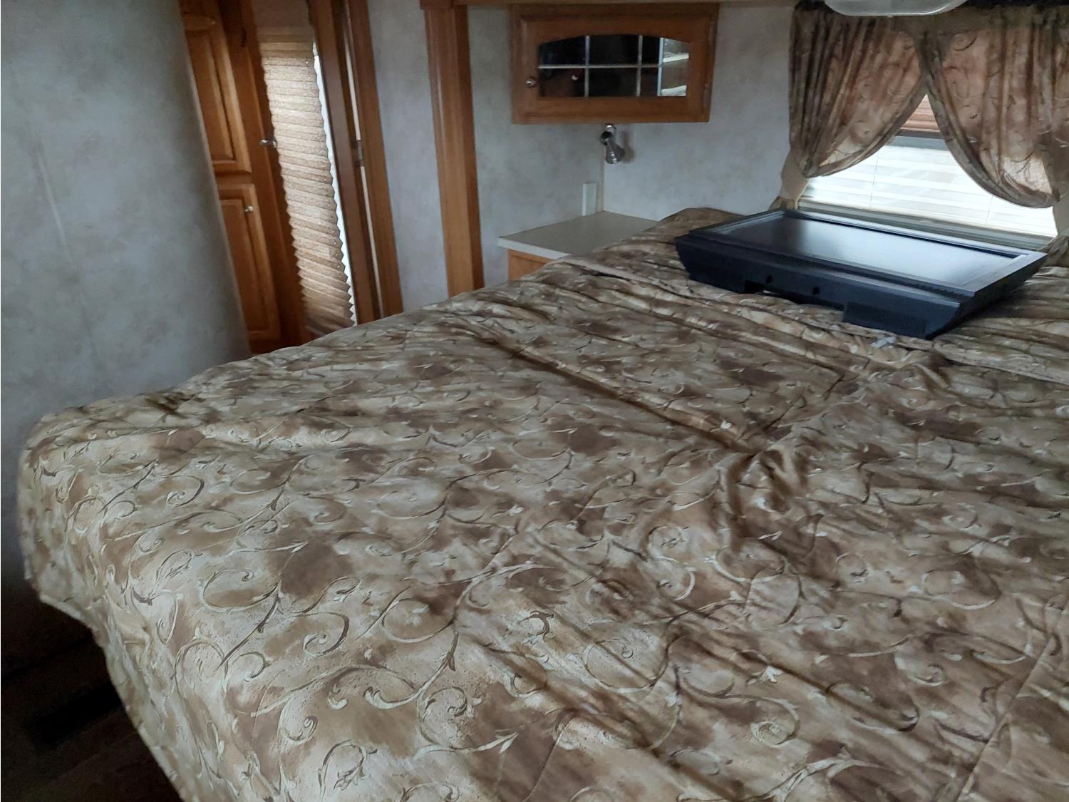 Sleeps 4, stove, fridge, microwave, master bedroom, A/C, outdoor shower, 2 slides, spring suspension, electric brakes, 225/75R15 tires