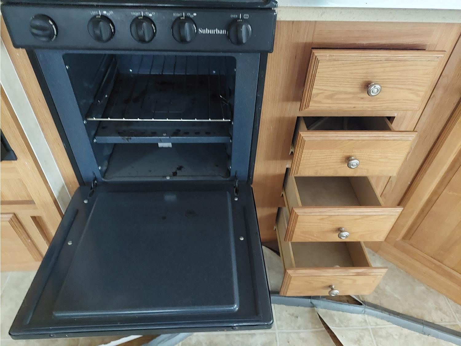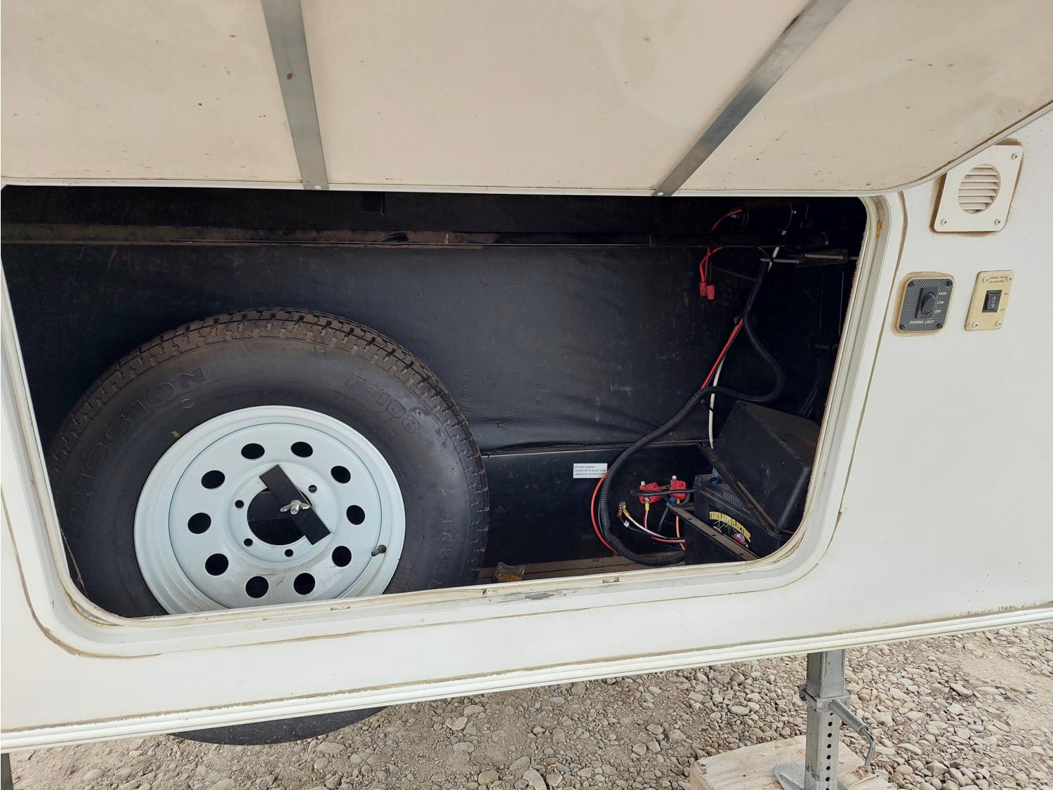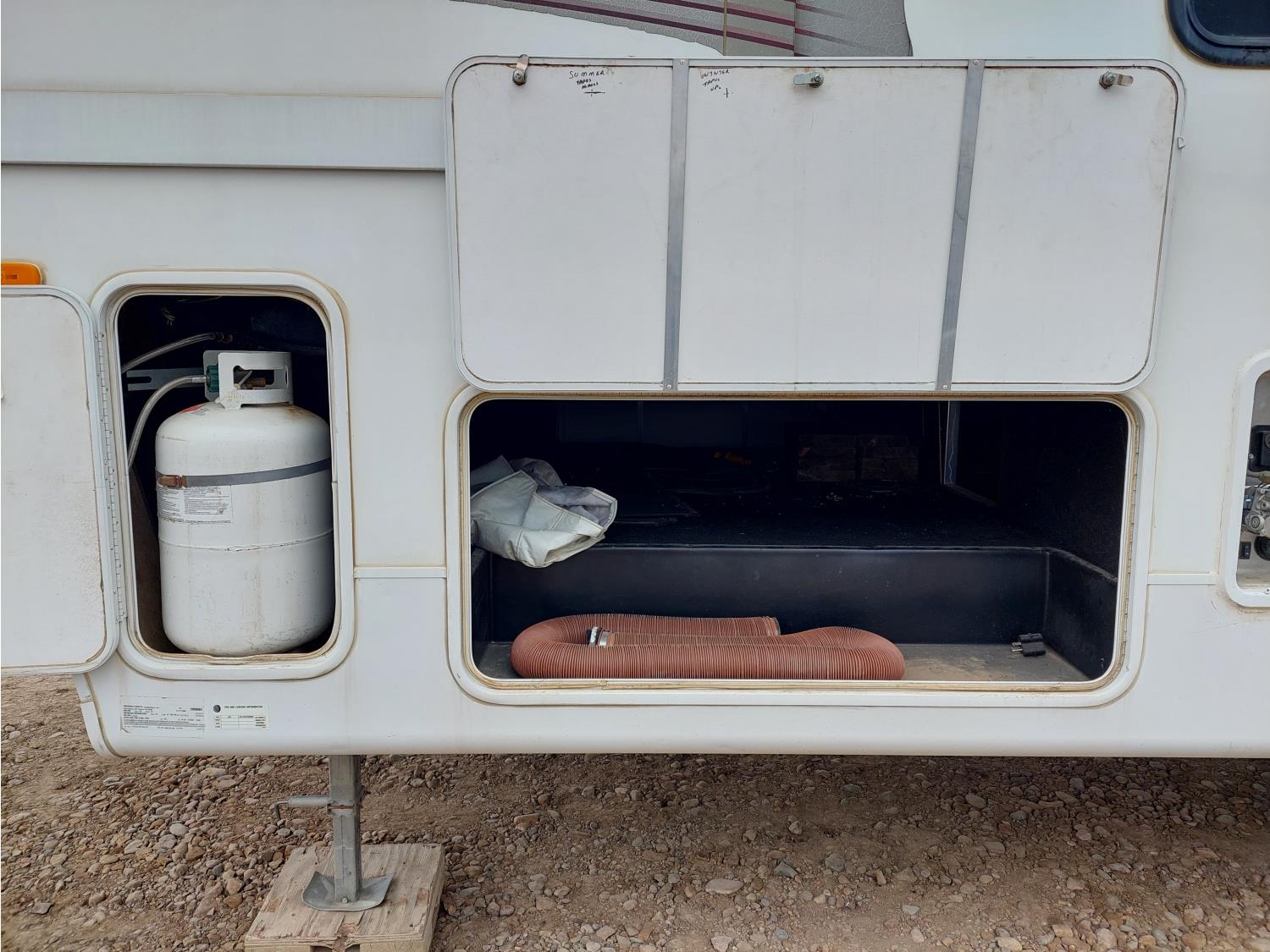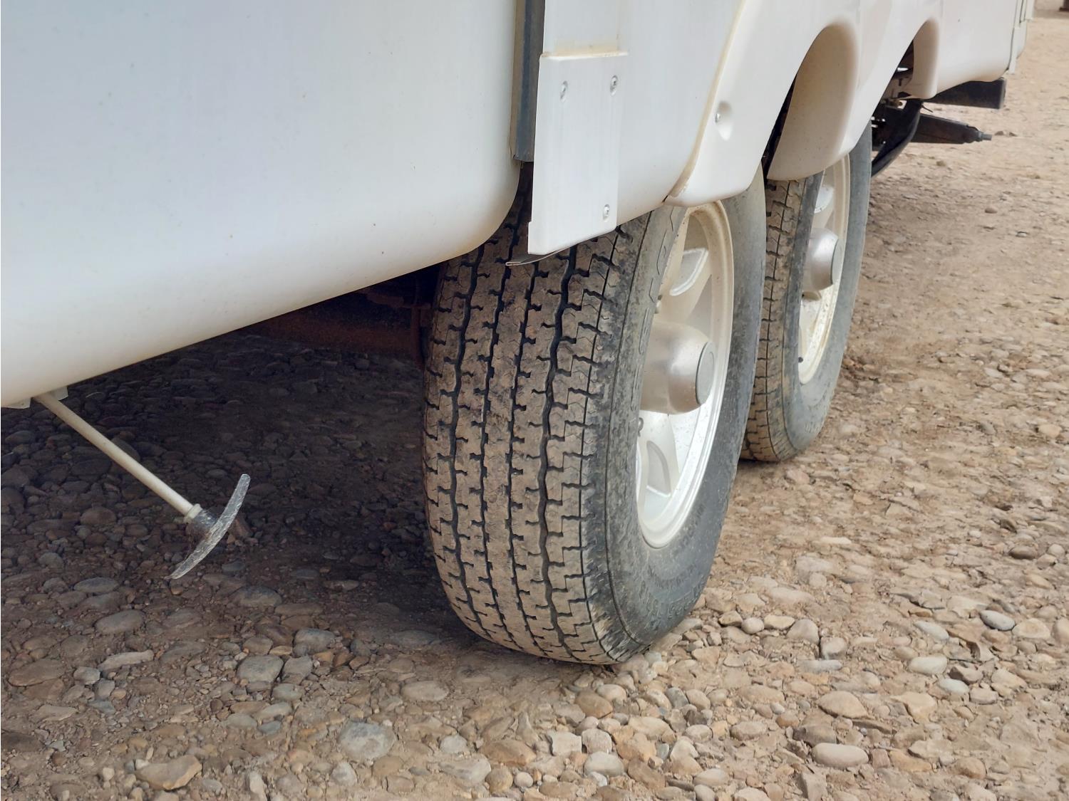 Sleeps 4, stove, fridge, microwave, master bedroom, A/C, outdoor shower, 2 slides, spring suspension, electric brakes, 225/75R15 tires