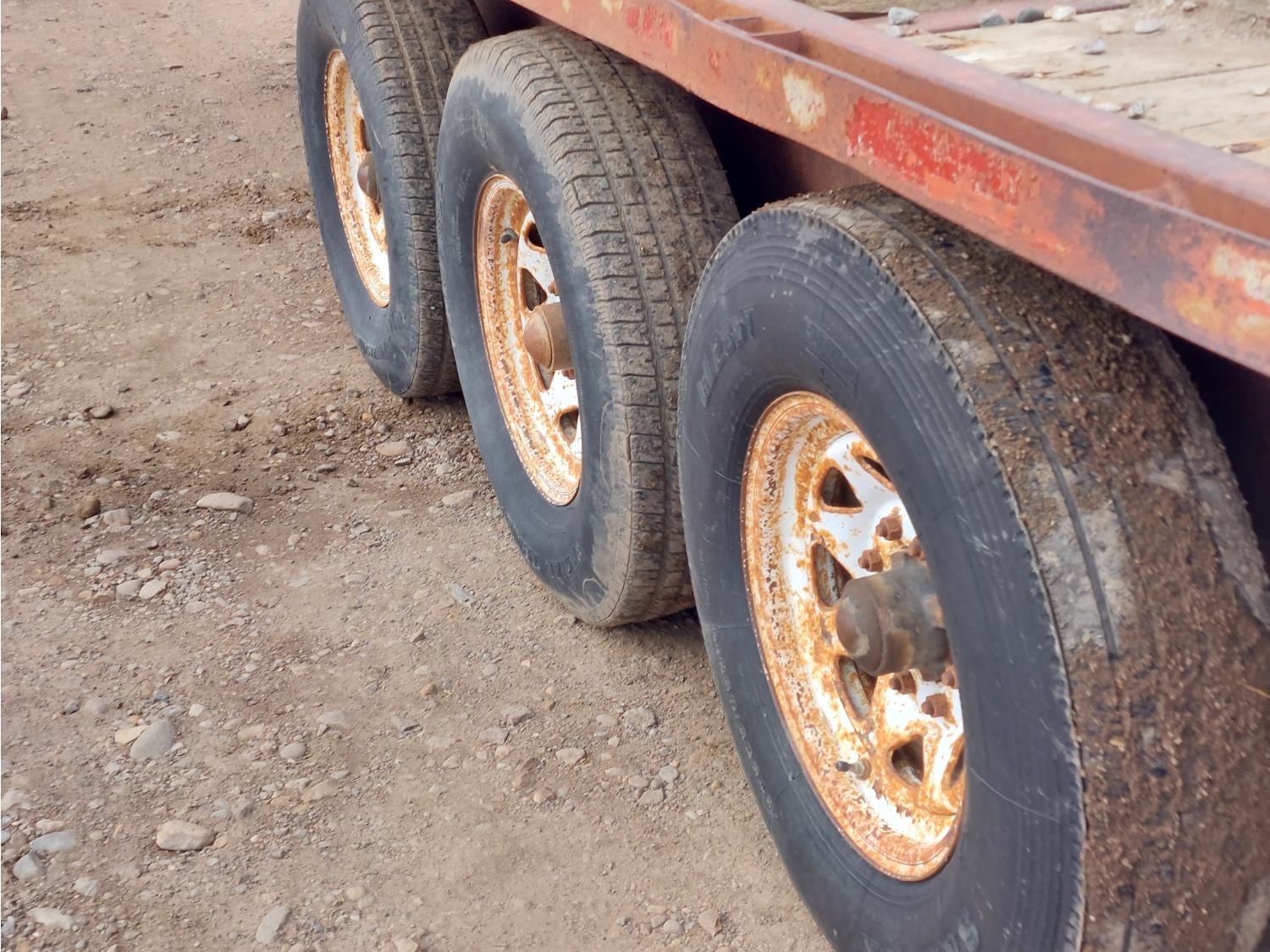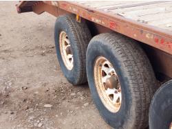 100 inch wide deck, 60 inch beaver tails, wood deck, flip over ramps, electric brakes, torsion suspension, ball hitch, rub rails, stake pockets, 235/85R16 tires