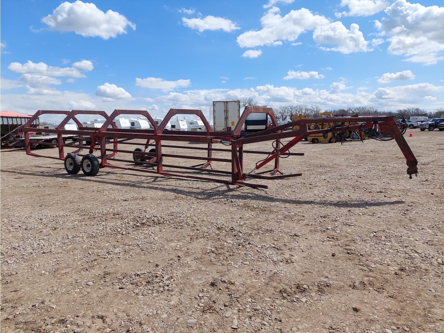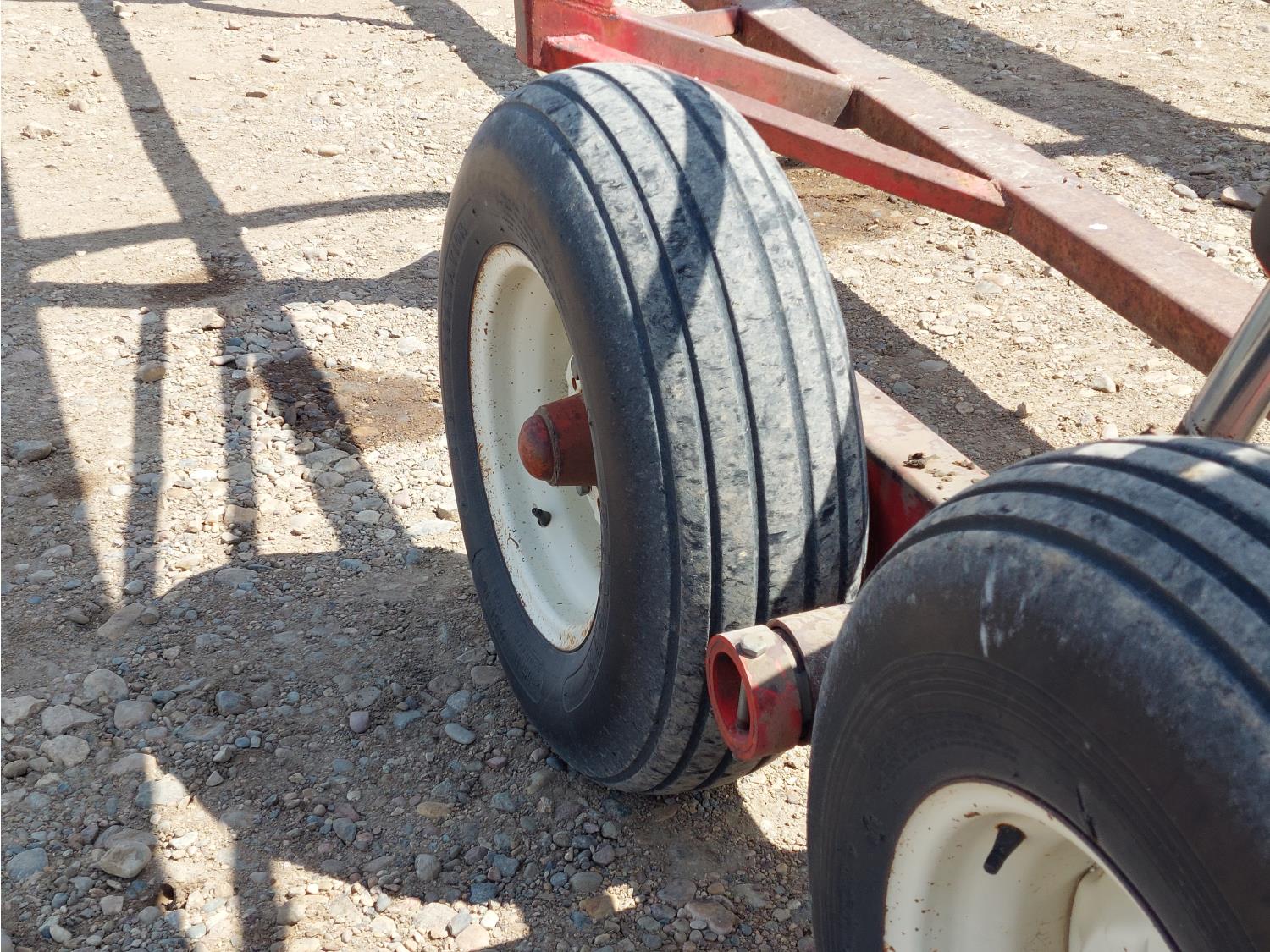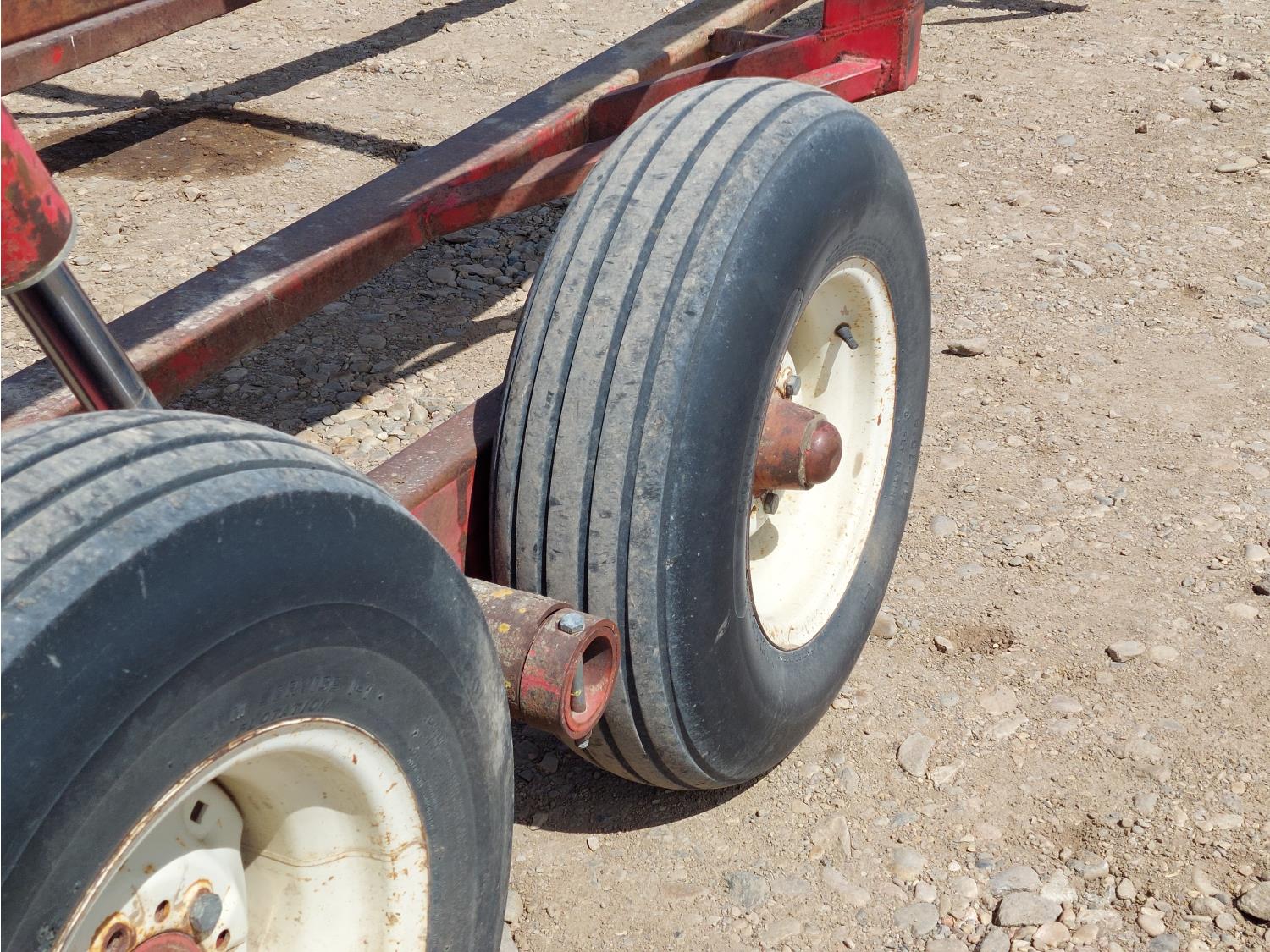 102 inch W x 81 inch T bale cage, torsion suspension, hydraulic lift, hydraulic tow arm pivot, 9.5-15 tires