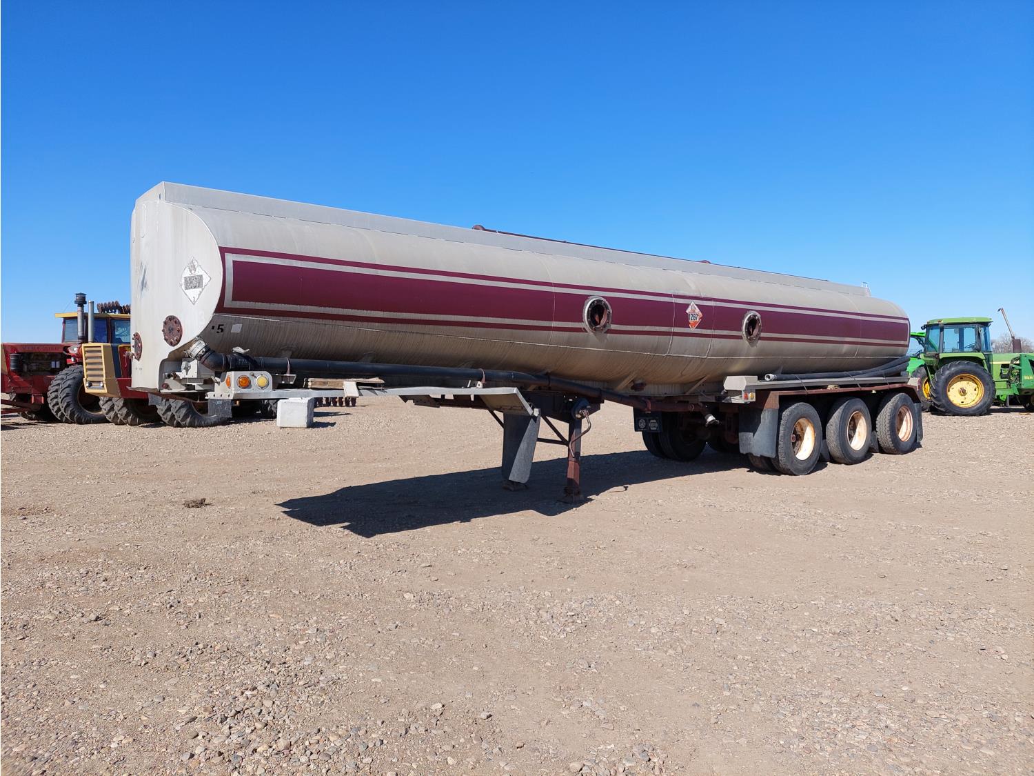 2 baffled compartments, 40,000 Liter total capacity, 4 inch inlet, 3 inch outlets, (4) 3 inch D hoses, spring suspension, 11R22.5 tires
