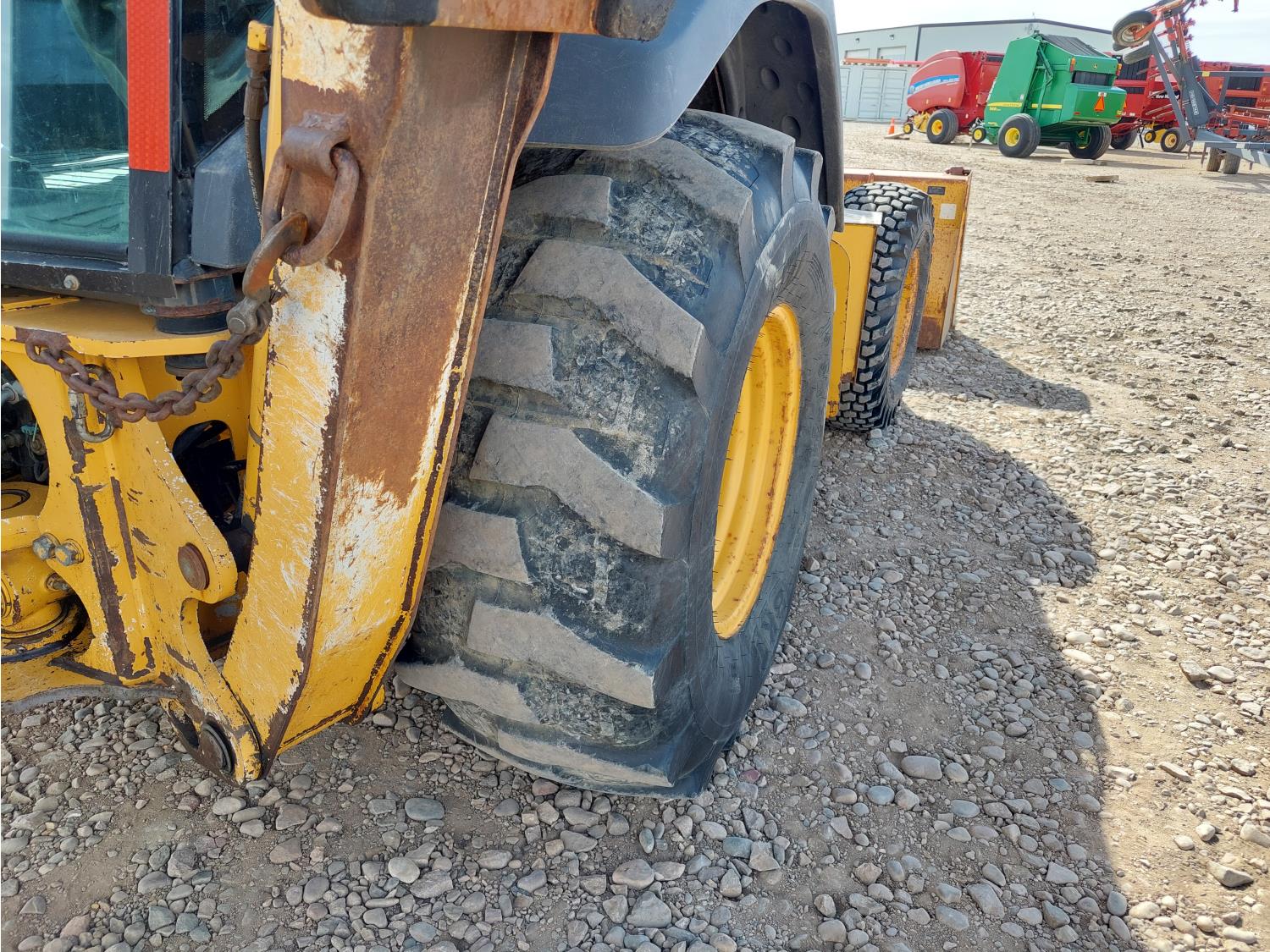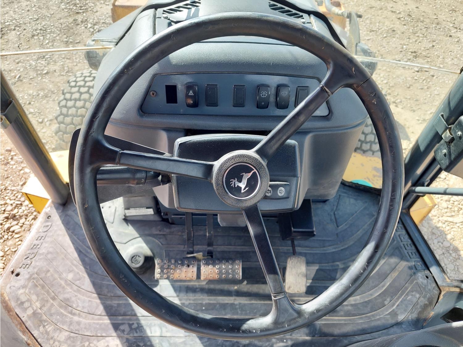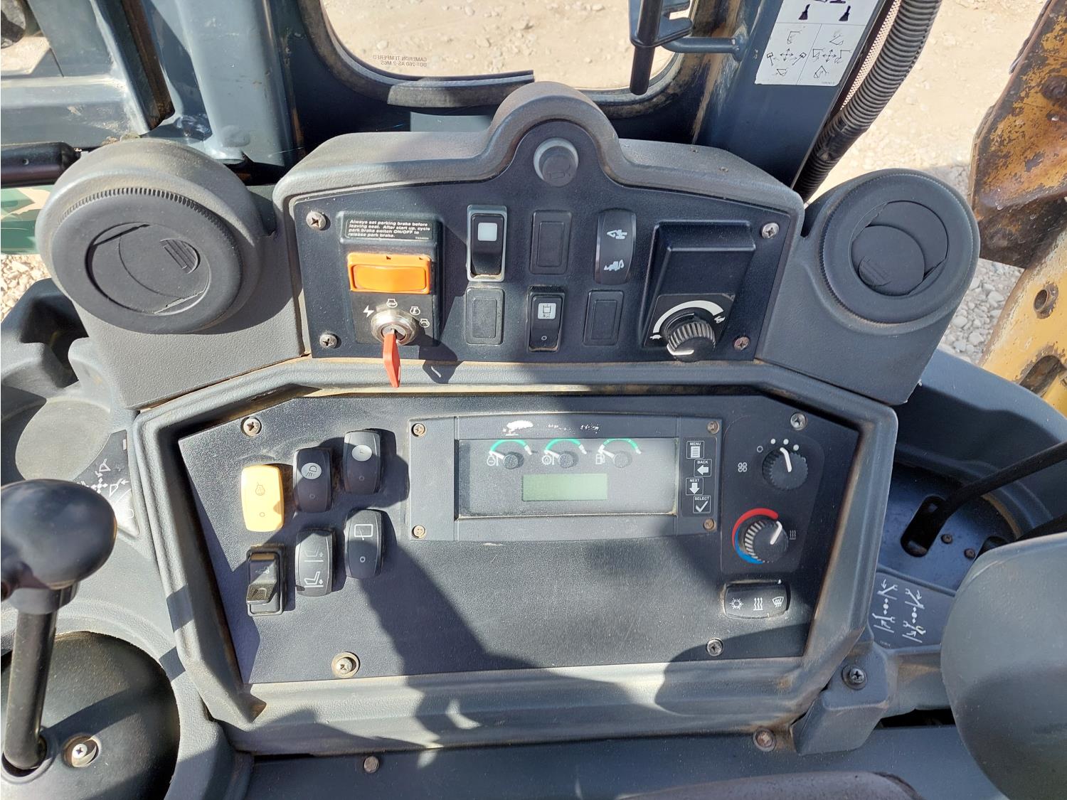 Enclosed cab, A/C, air ride seat, pilot controls, powershift transmission, electric circulating block heater, 93HP 4045H diesel engine , 91 inch smooth loader bucket, 24 inch dig backhoe bucket, 1 rear auxiliary hydraulics, extendable stick, outriggers,12.5/80 front tires, 19SL-24 rear tires