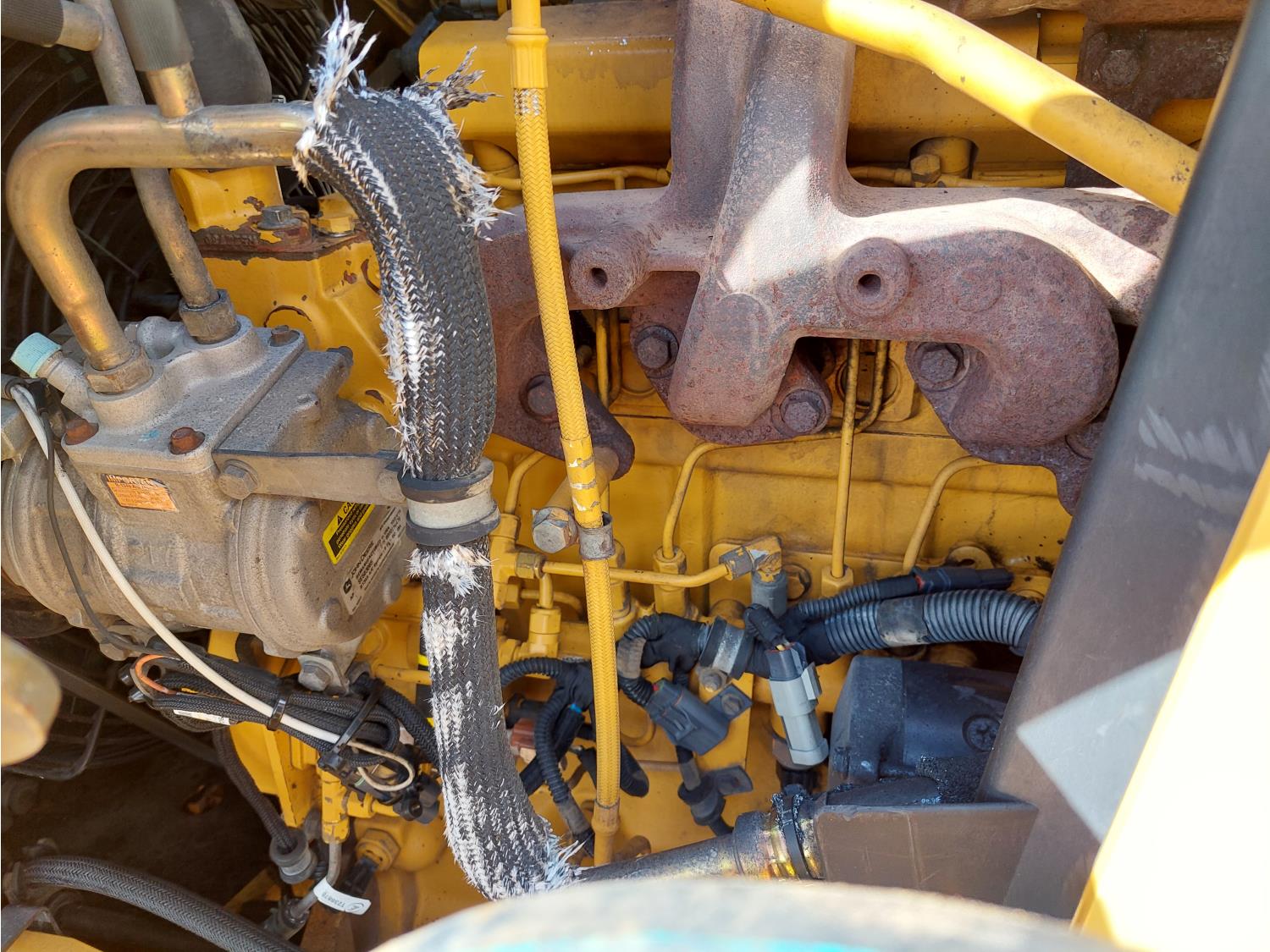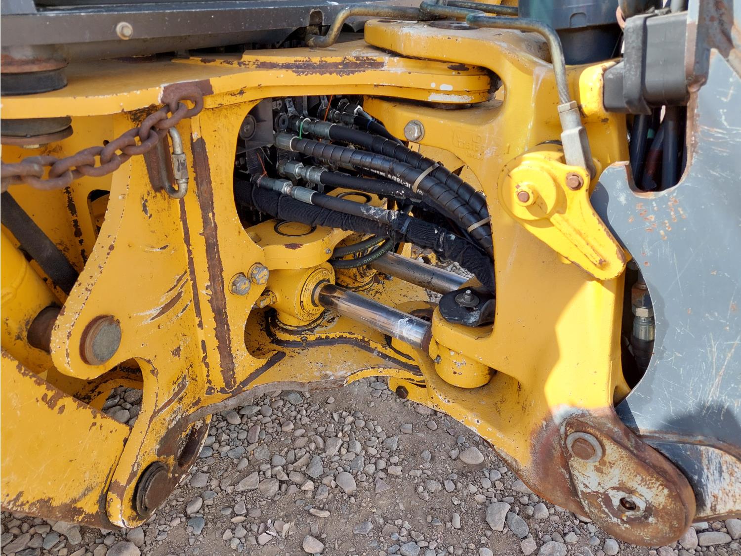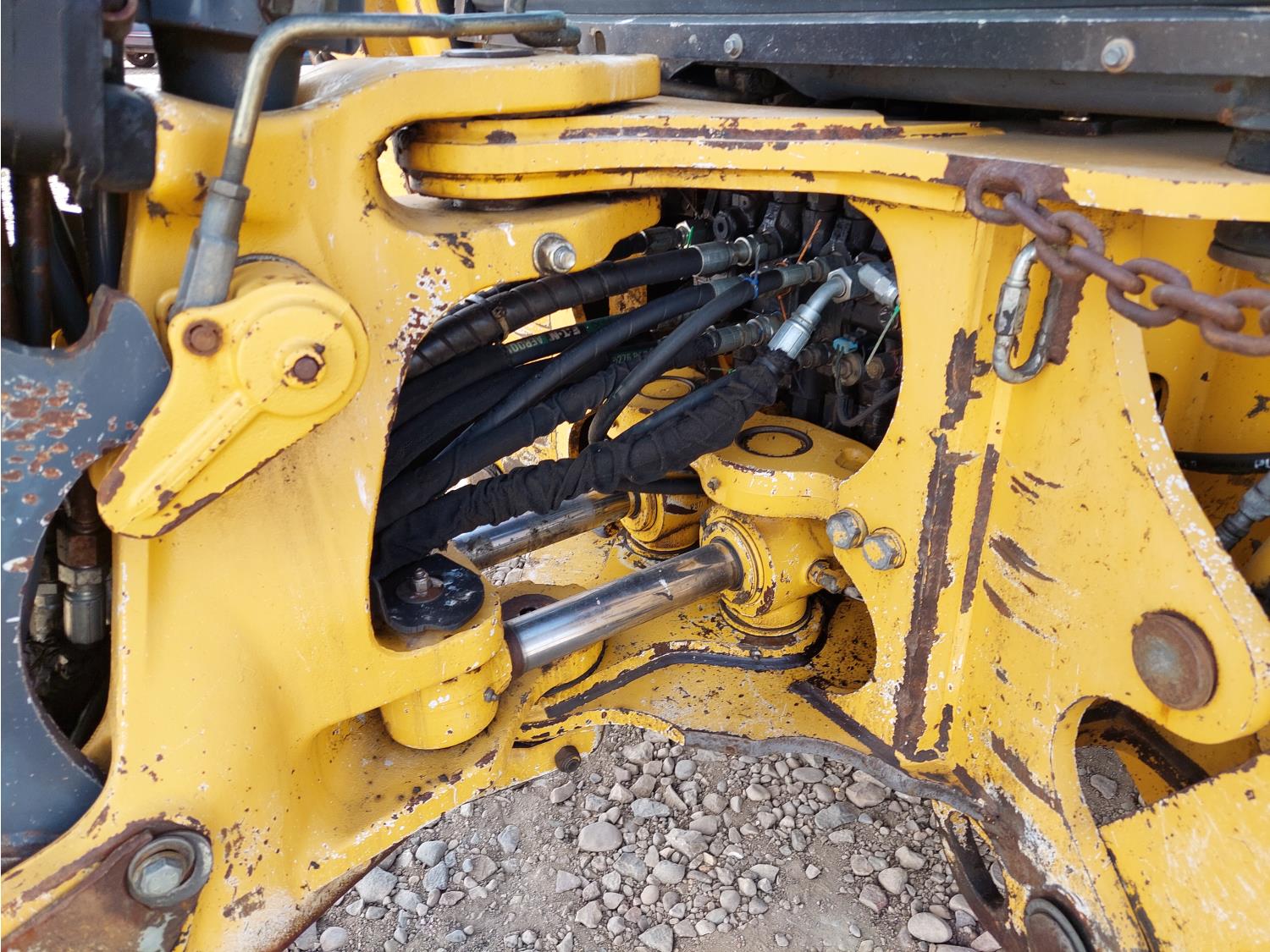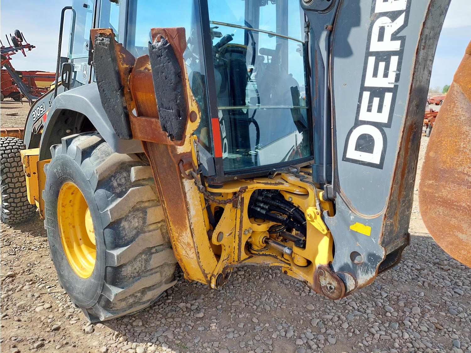 Enclosed cab, A/C, air ride seat, pilot controls, powershift transmission, electric circulating block heater, 93HP 4045H diesel engine , 91 inch smooth loader bucket, 24 inch dig backhoe bucket, 1 rear auxiliary hydraulics, extendable stick, outriggers,12.5/80 front tires, 19SL-24 rear tires