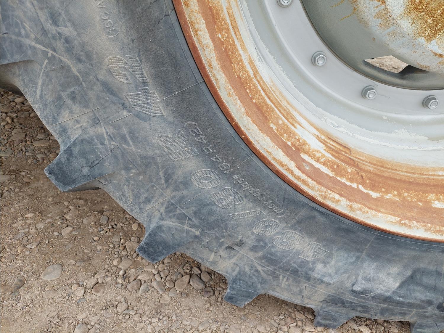 6.7 L 6 cylinder 150 HP, diesel engine, DEF required, 125 PTO HP, 18 speed power shift transmission, cab, left hand reverser, front and rear differential lock, joystick, A/C, radio, buddy seat, front 3 point hitch, loader mounts, mid mount hydraulic connection, 540/1000 PTO, 3 point hitch, 3 point hitch exterior control, 4 rear hydraulic outlets, 380/85R30 front tires, 480/80R42 rear tires